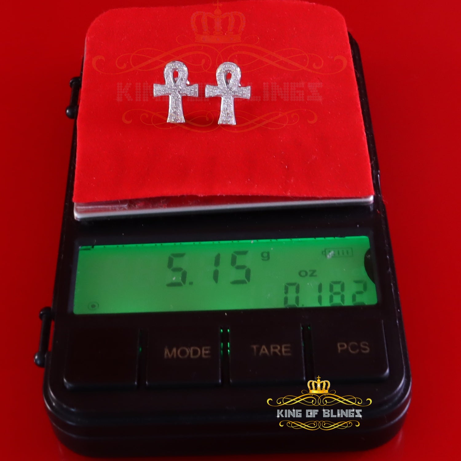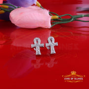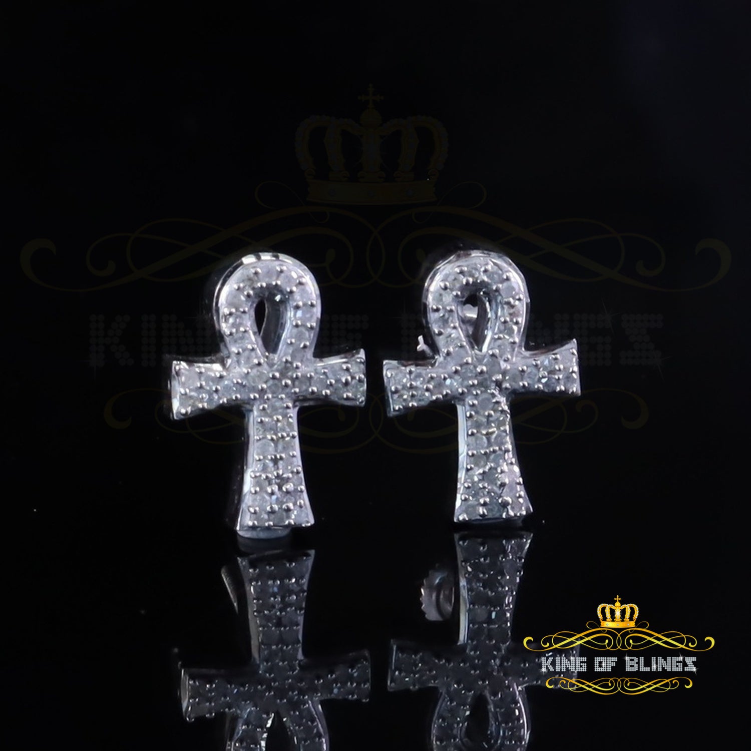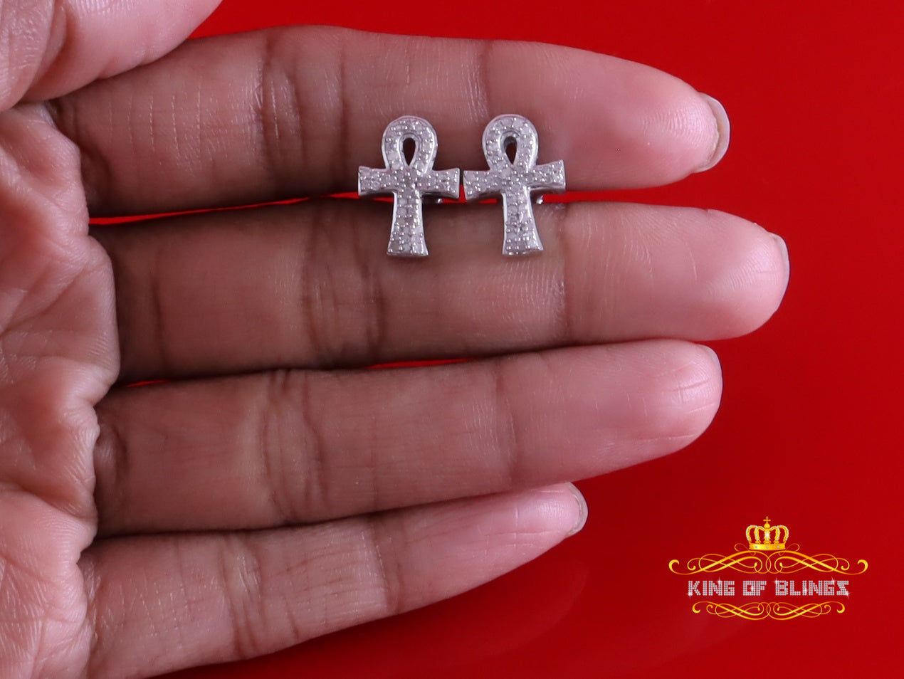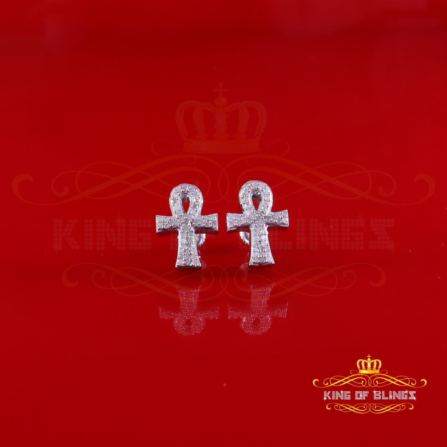 King Of Bling's New 0.40ct Diamond 925 Sterling Silver White for Men's & Women Stud ANKH Earring