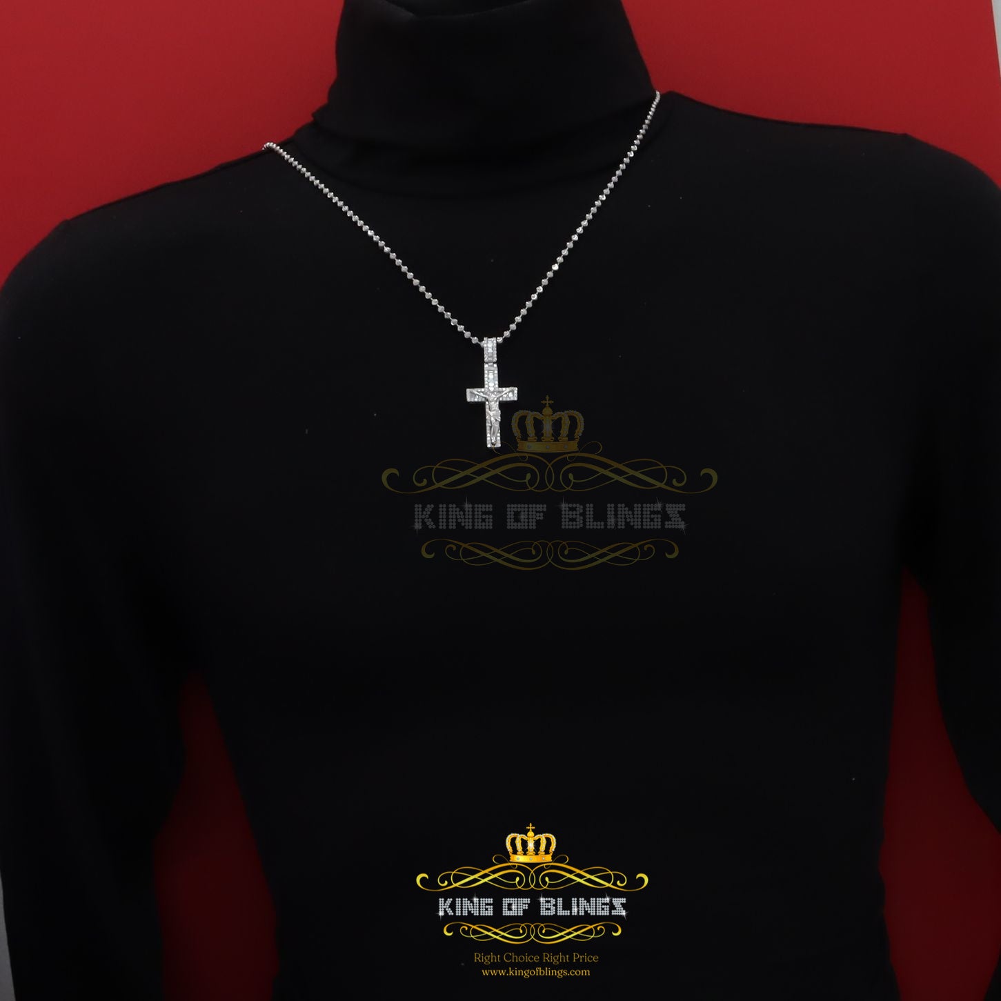King Of Bling's New Mens 2.25ct VVS D Clr. Moissanite Baguette Jesus Cross Pendant White Silver