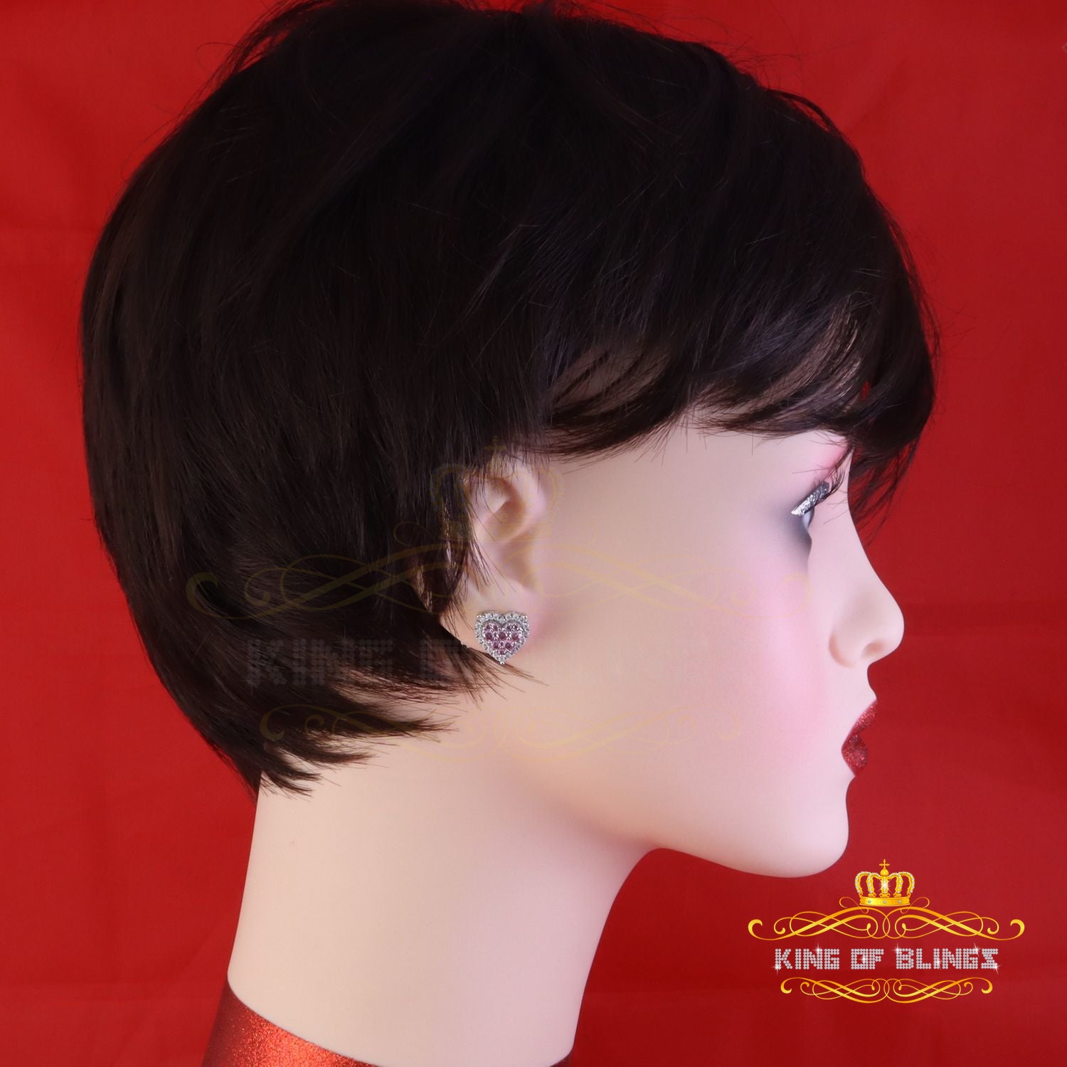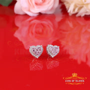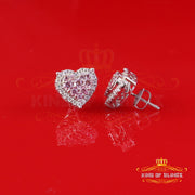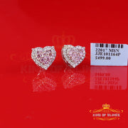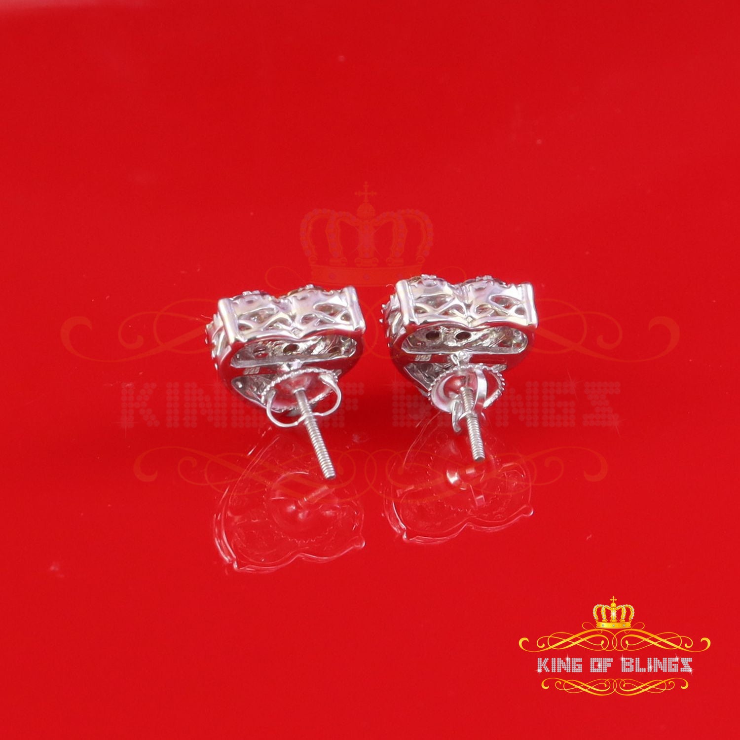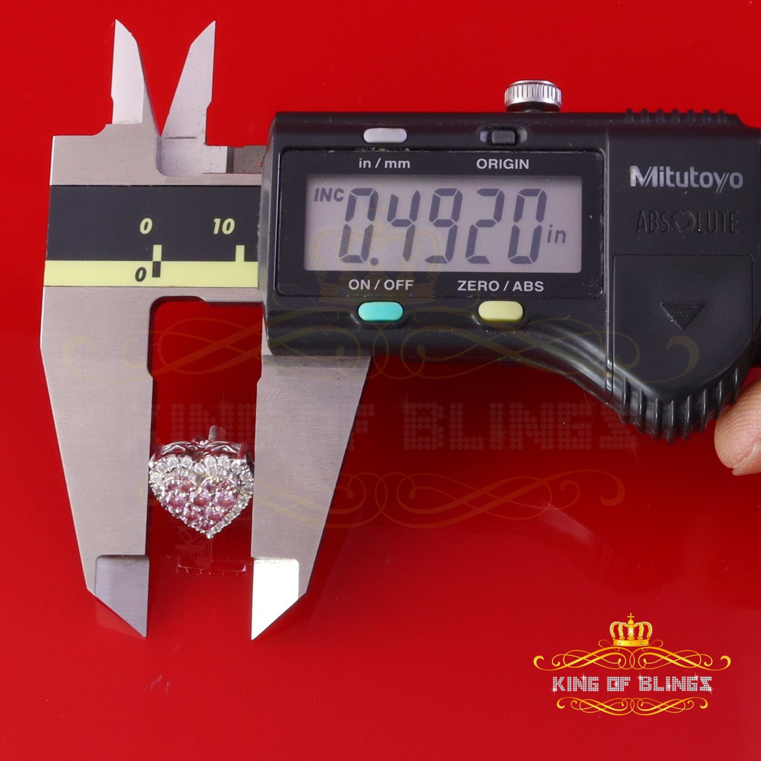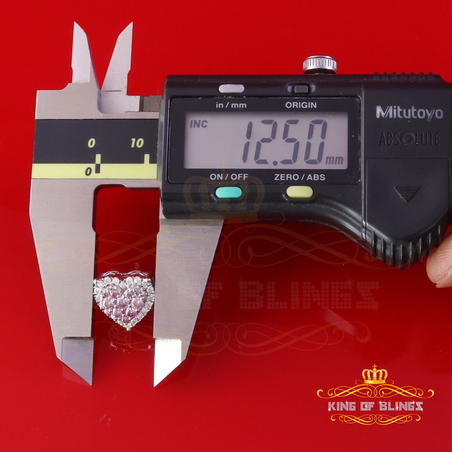 King of Bling's New Men's/Women's 1.66 ct VVS D Pink Moissanite 925 Silver White Heart Earrings