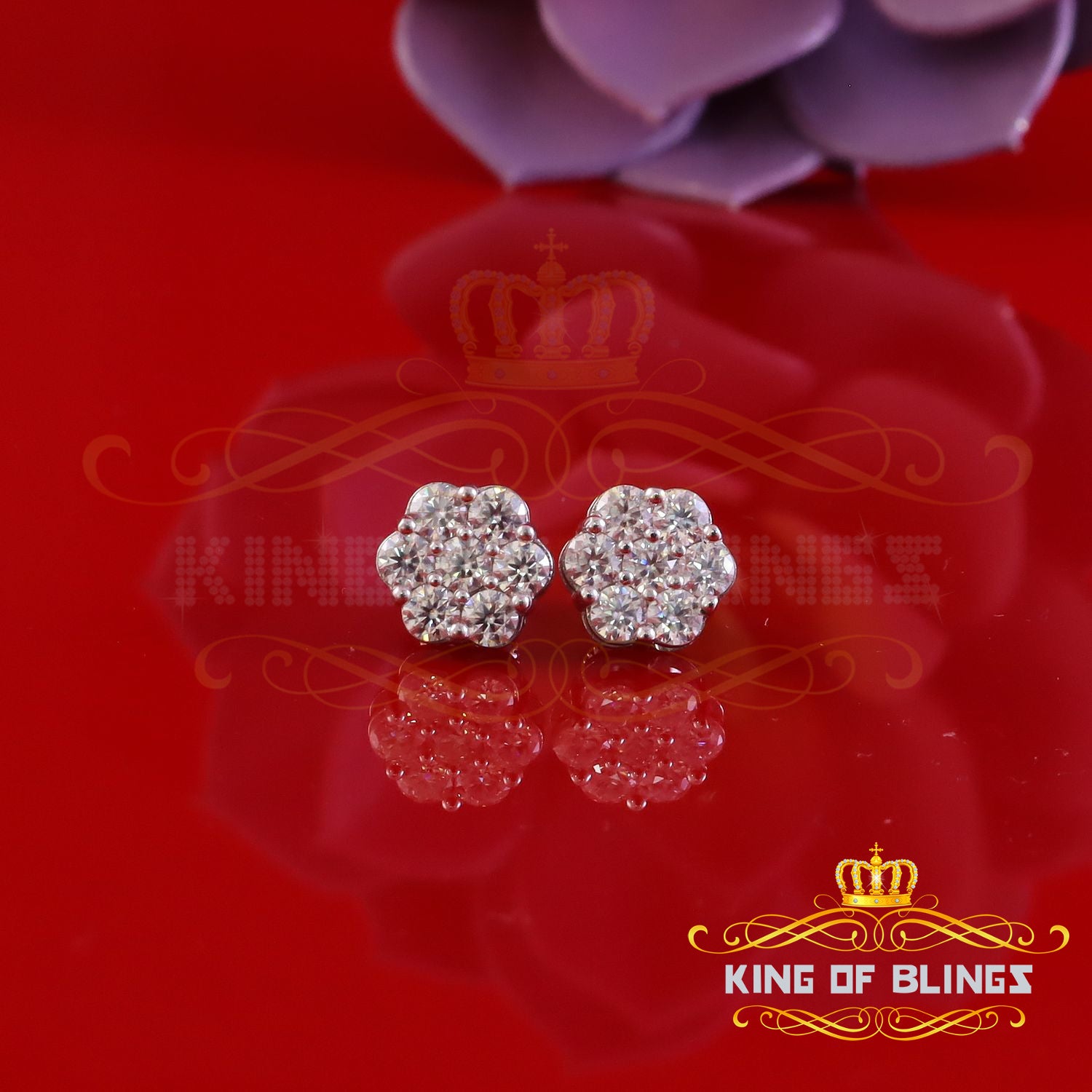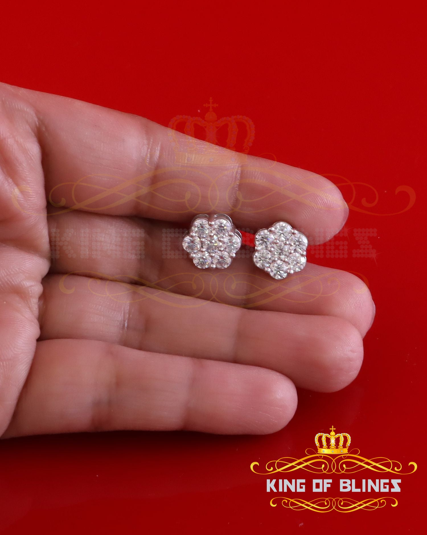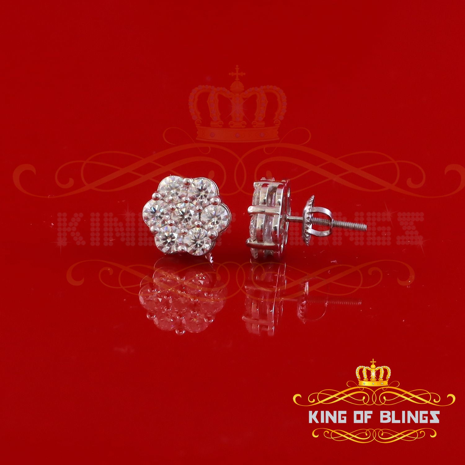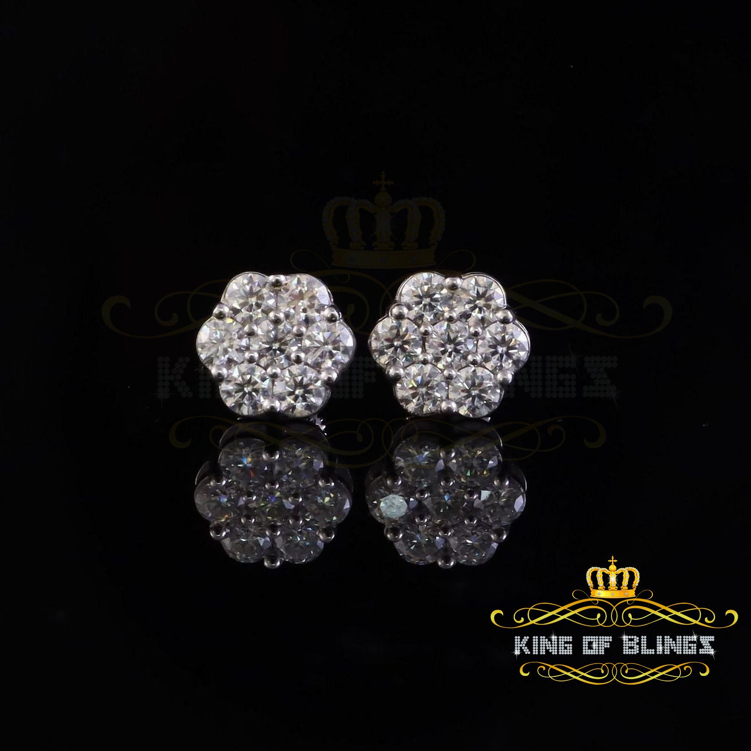King of Bling's New Men's/Womens 925 Silver White 2.25ct VVS 'D' Moissanite flower Stud Earrings