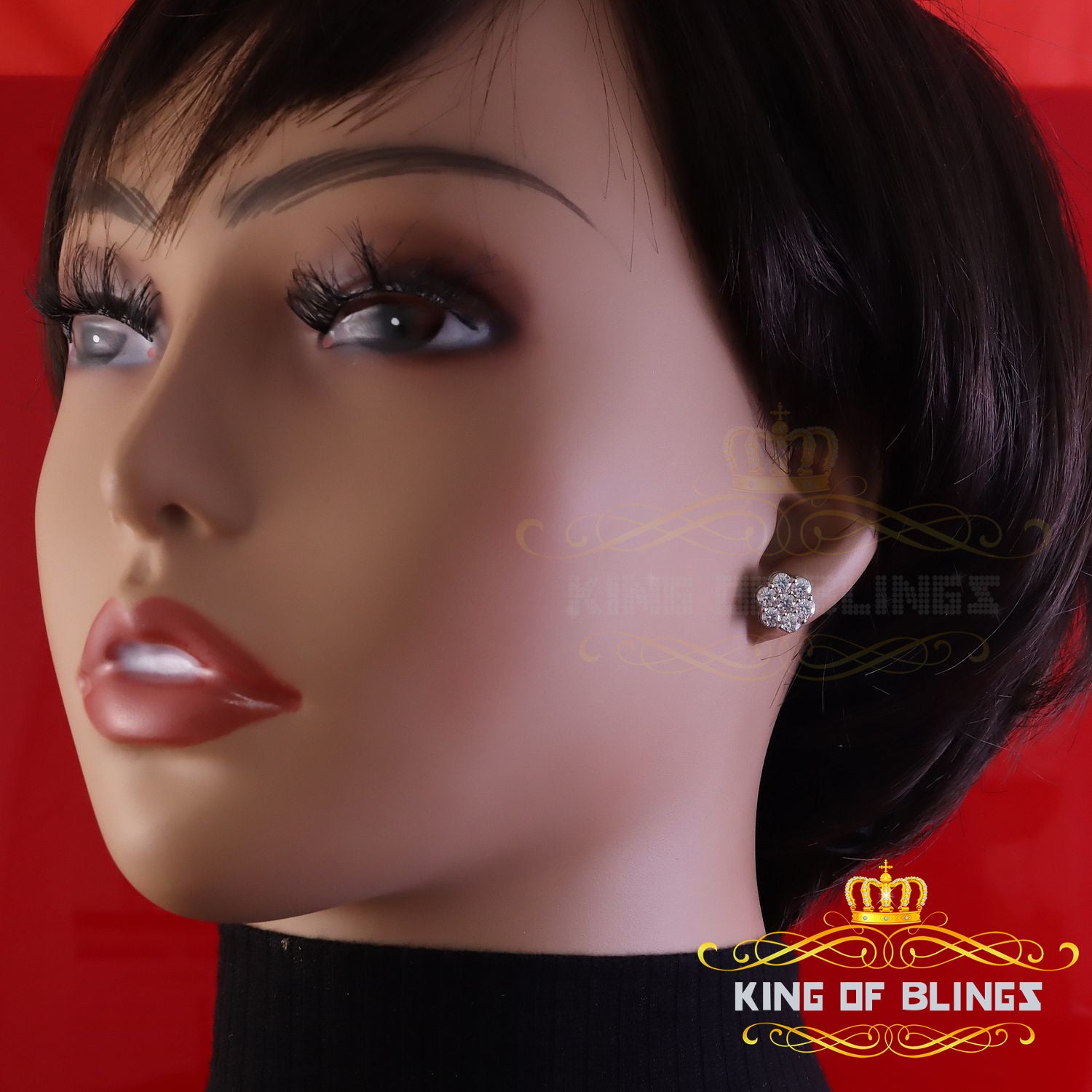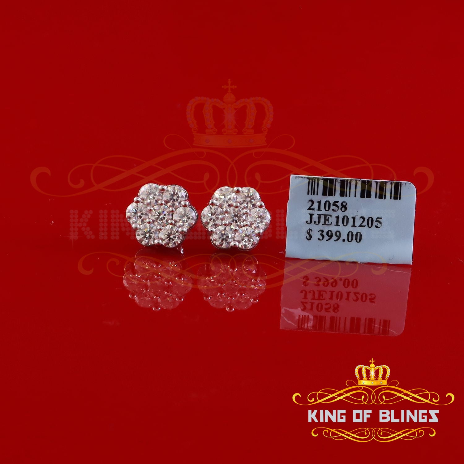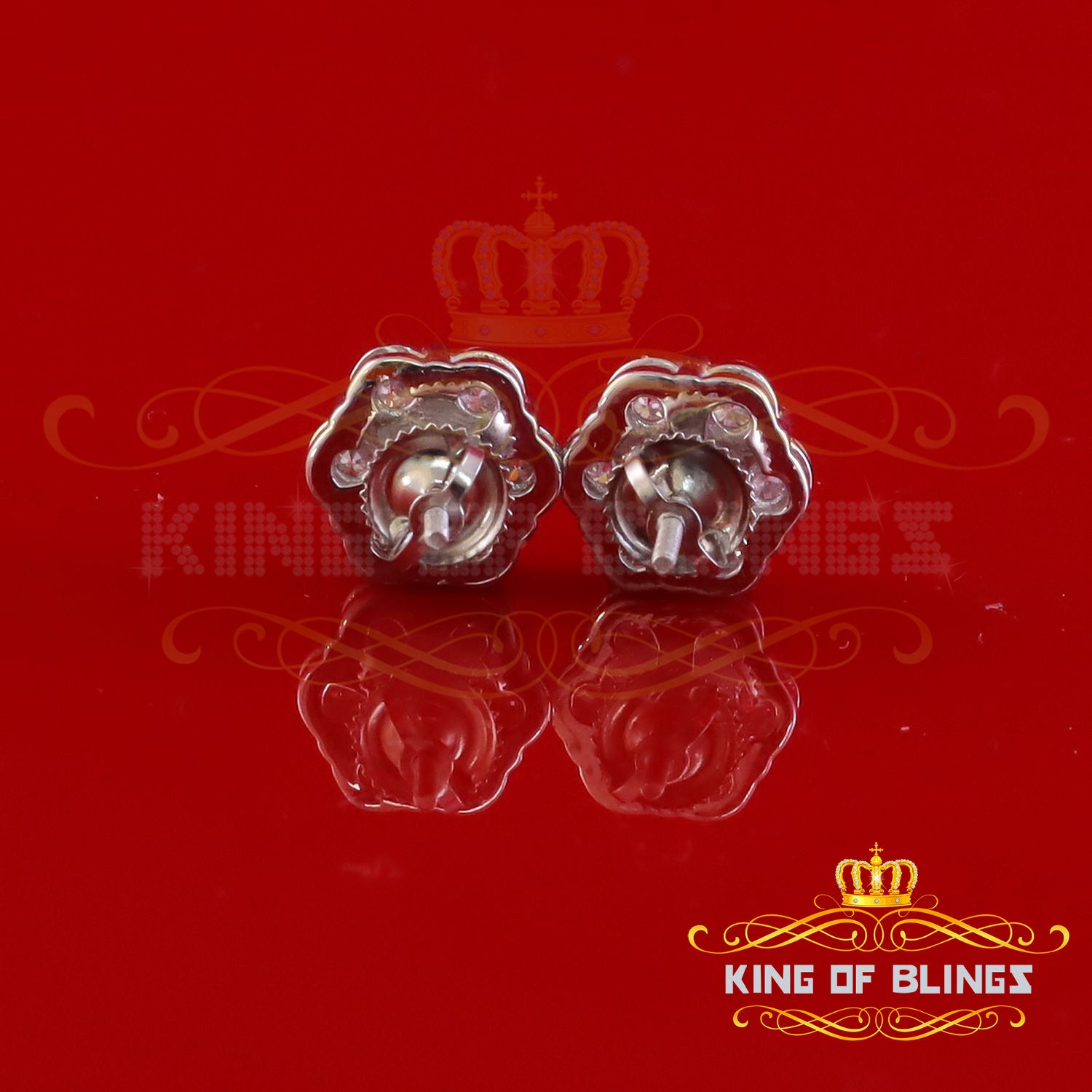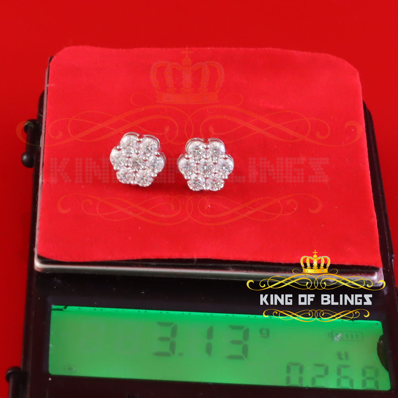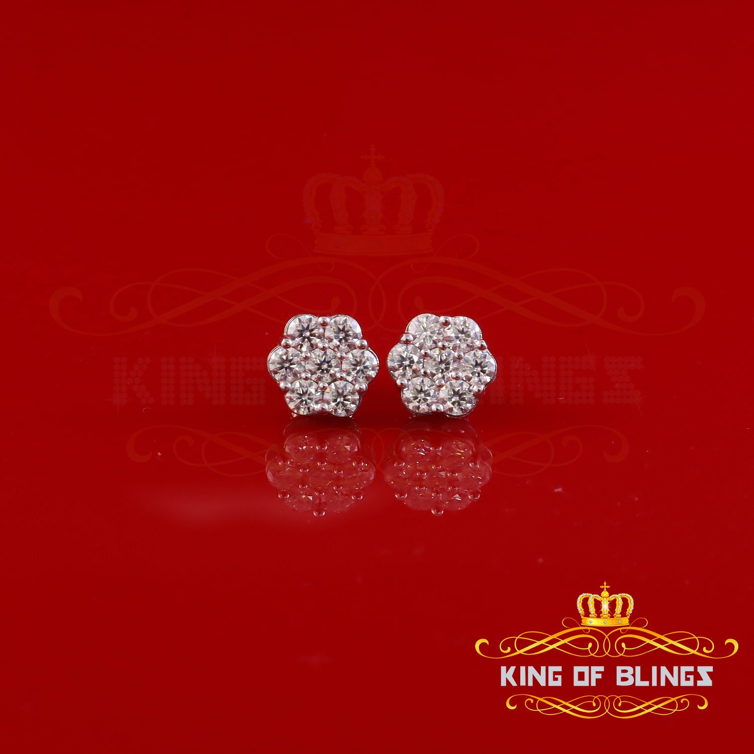 King of Bling's New Men's/Womens 925 Silver White 2.25ct VVS 'D' Moissanite flower Stud Earrings