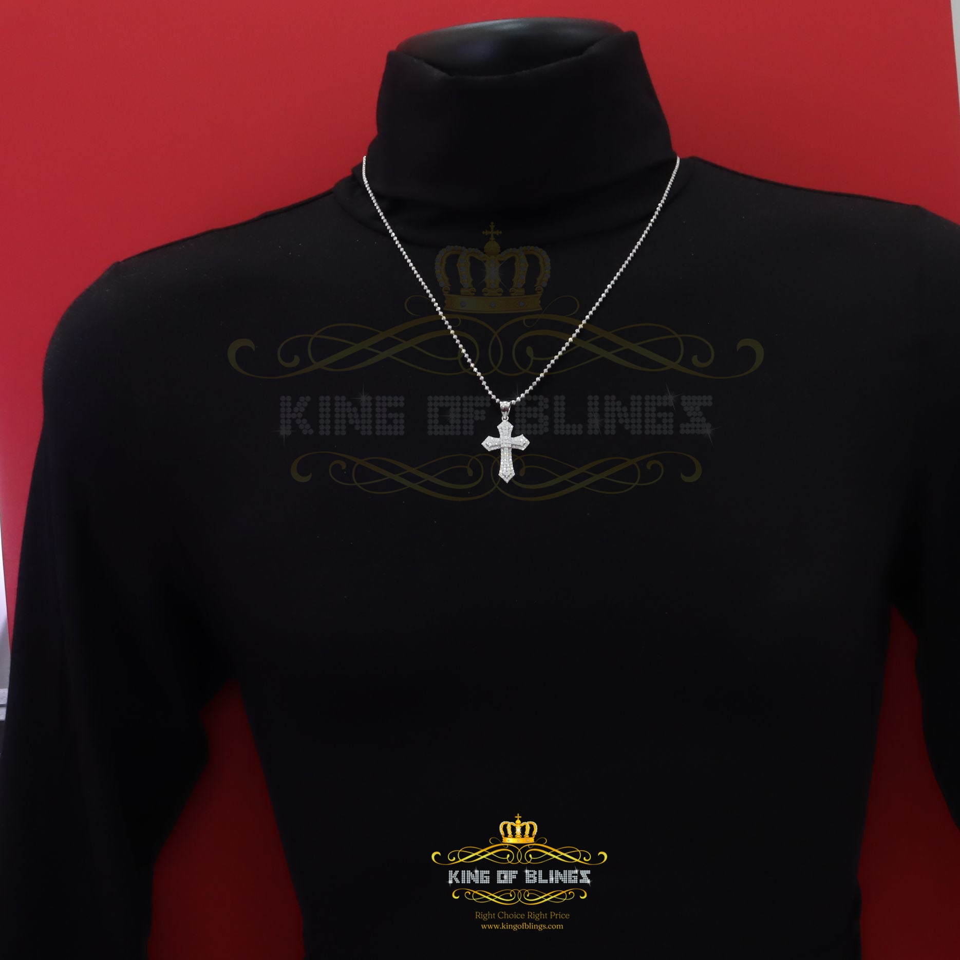 King Of Bling's New Pantone 925 White Sterling Silver 1.00ct VVS D Clr. Moissanite Cross Pendant