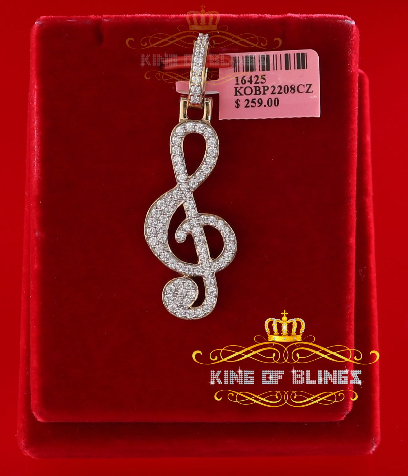 King Of Bling's Promise 925 Yellow Sterling Silver MUSIC SIGN Pendant with 2.34ct Cubic Zirconia