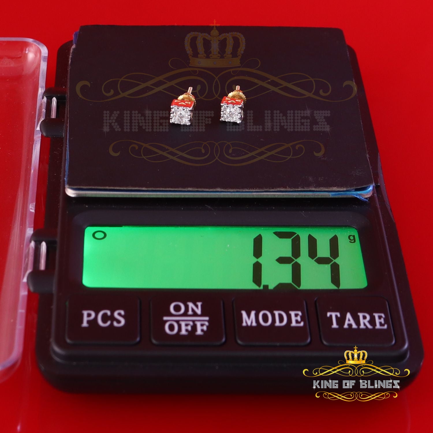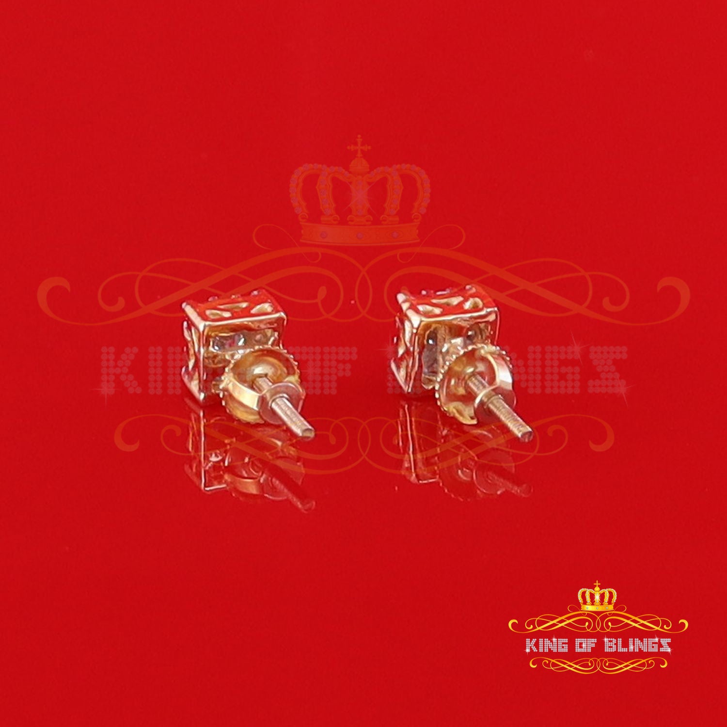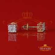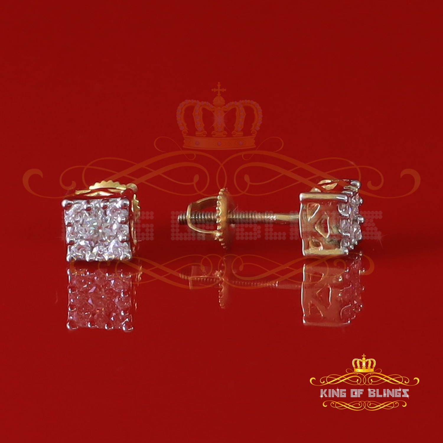 King Of Bling's Real Moissanite Stud Square Earrings 10k Real Yellow Gold 0.33ct Vvs 'D' Color