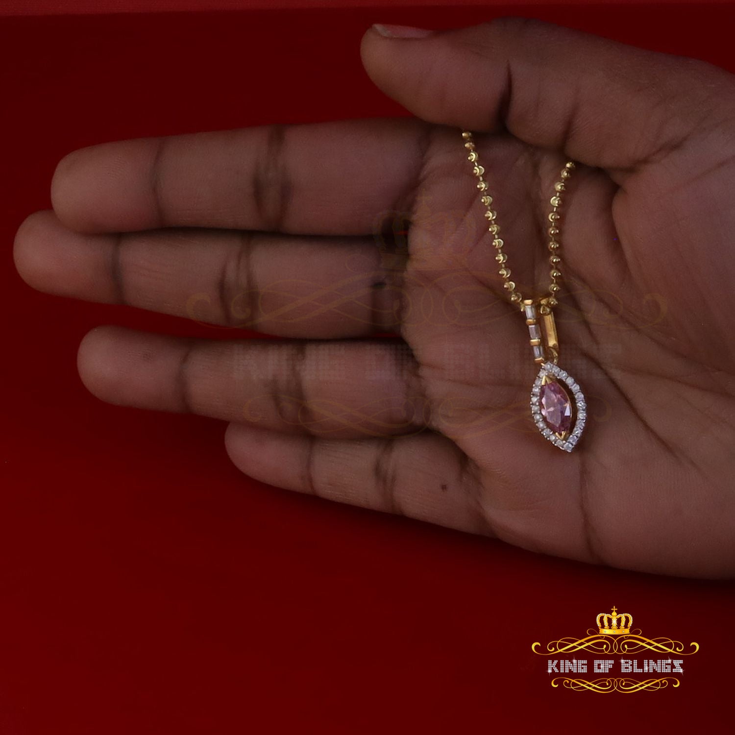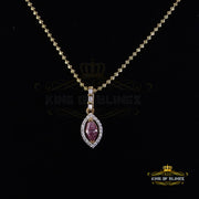 King Of Bling's Simple Women's 925 Silver Yellow 1.25 ct VVS 'D' Pink Marquis Moissanite Pendant