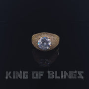 King Of Bling's Sterling Yellow Silver Big One 14.00ct Cubic Zirconia Fashion Round Ring Size 15