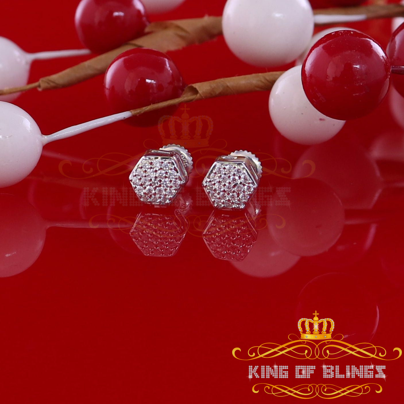 King of Bling's White 925 Silver 0.38ct Cubic Zirconia Women's & Men's Hip Hop Hexagon Earrings
