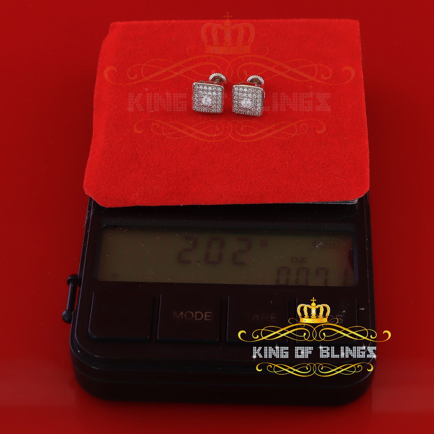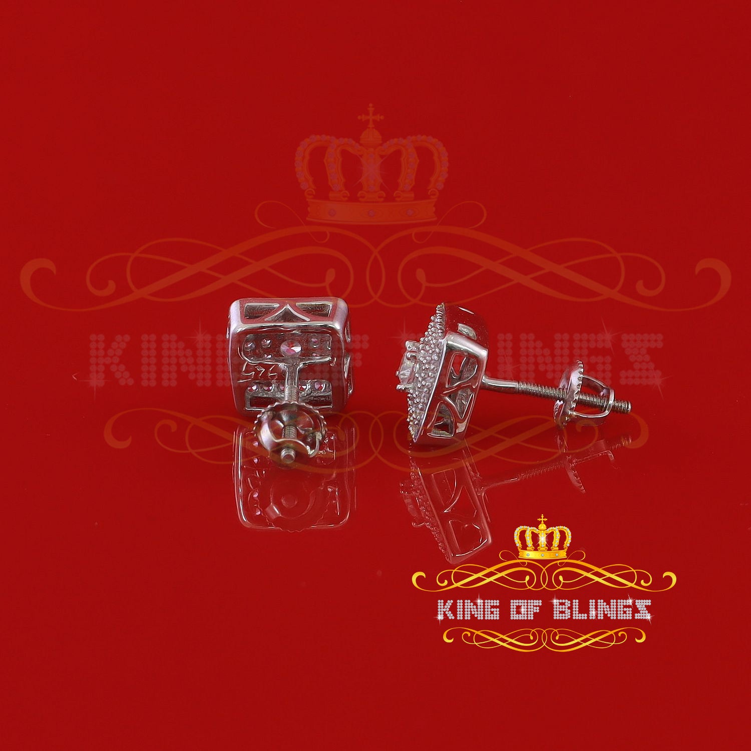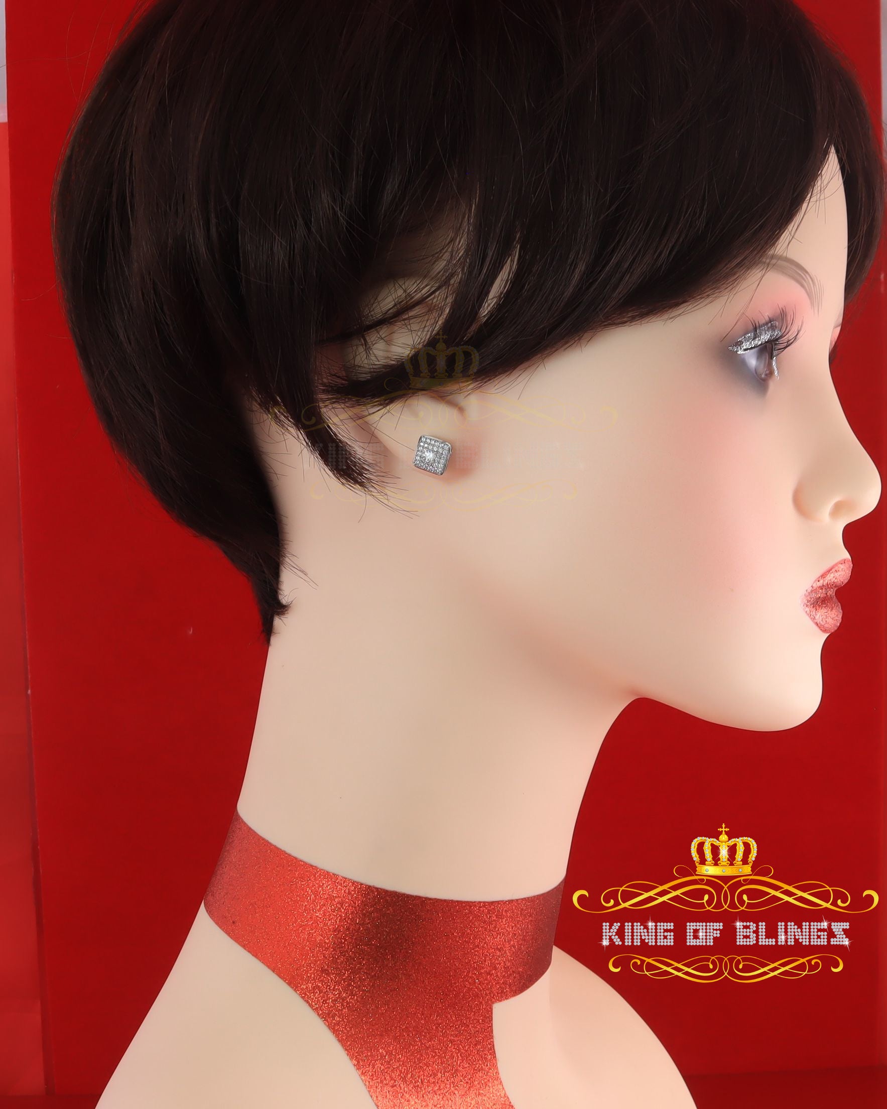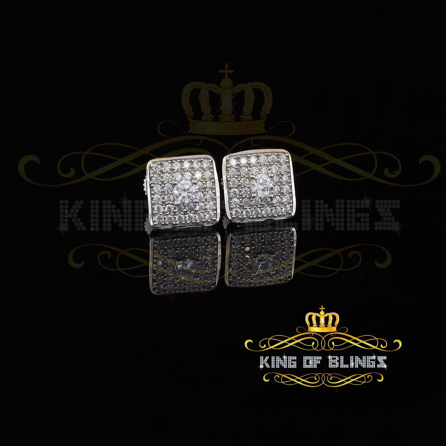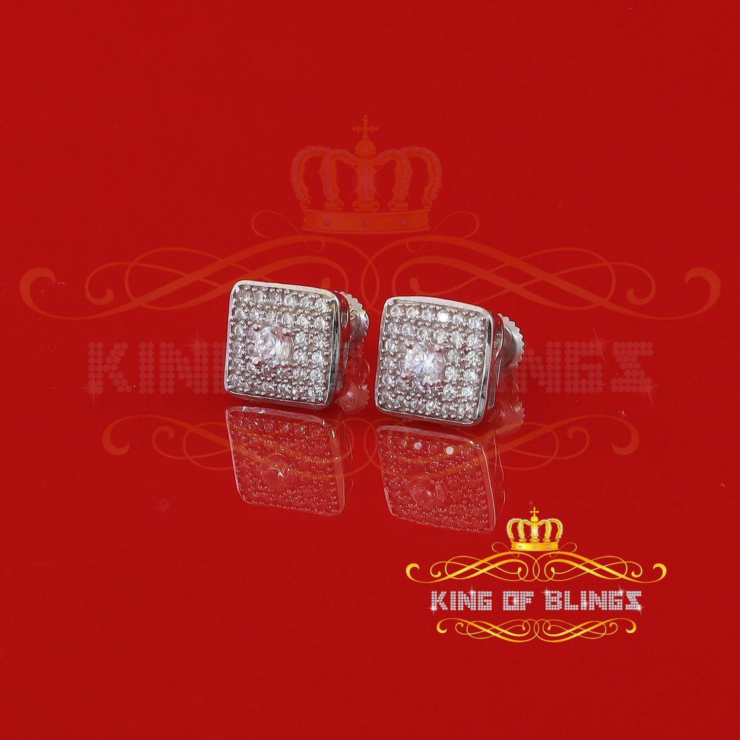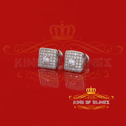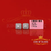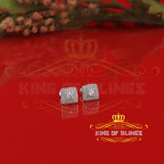 King of Bling's White 925 Silver 0.81ct Cubic Zirconia Women's & Men's Hip Hop Square Earrings