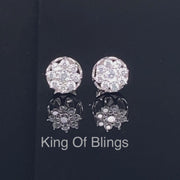 King of Blings- White 925 Silver Cubic 0.14ct Zirconia Women's & Men's Hip Hop Flower Earrings