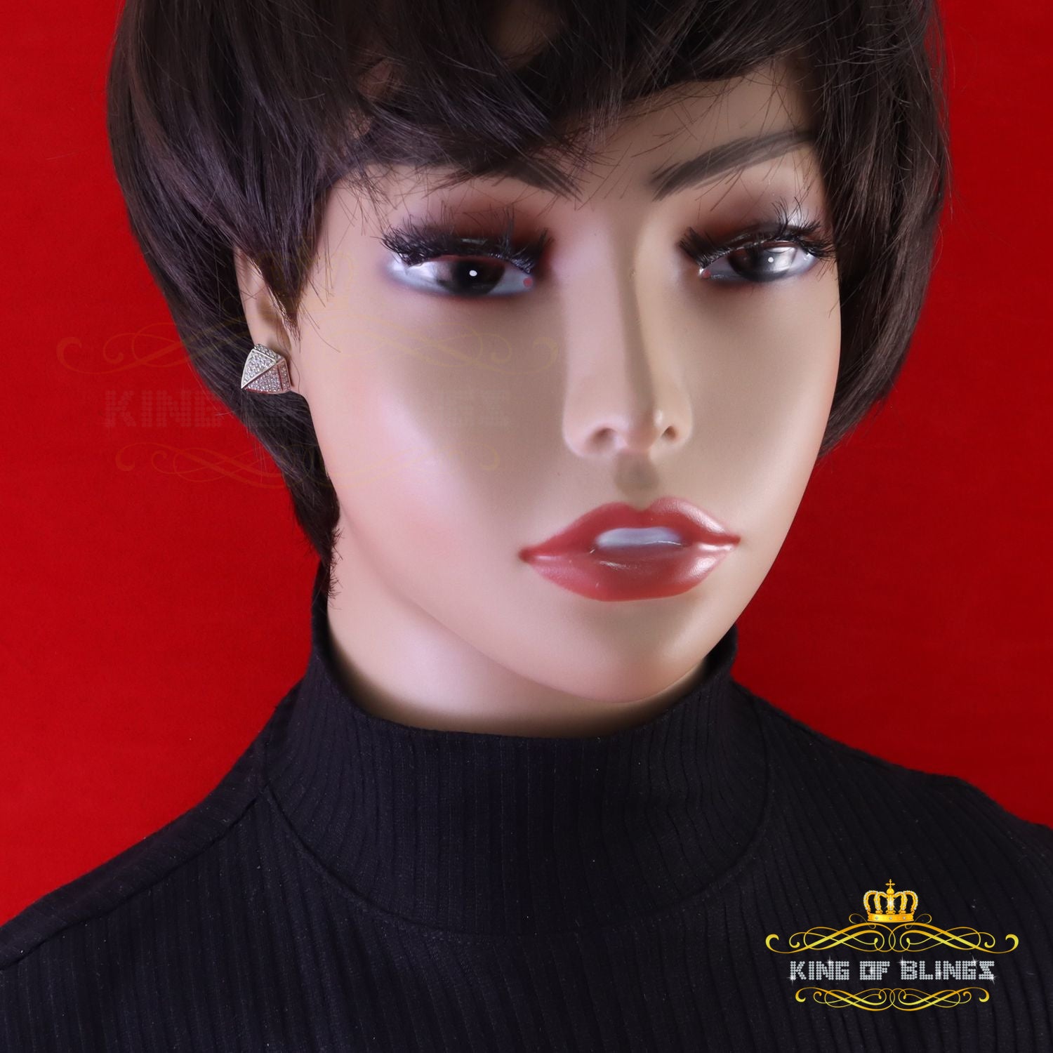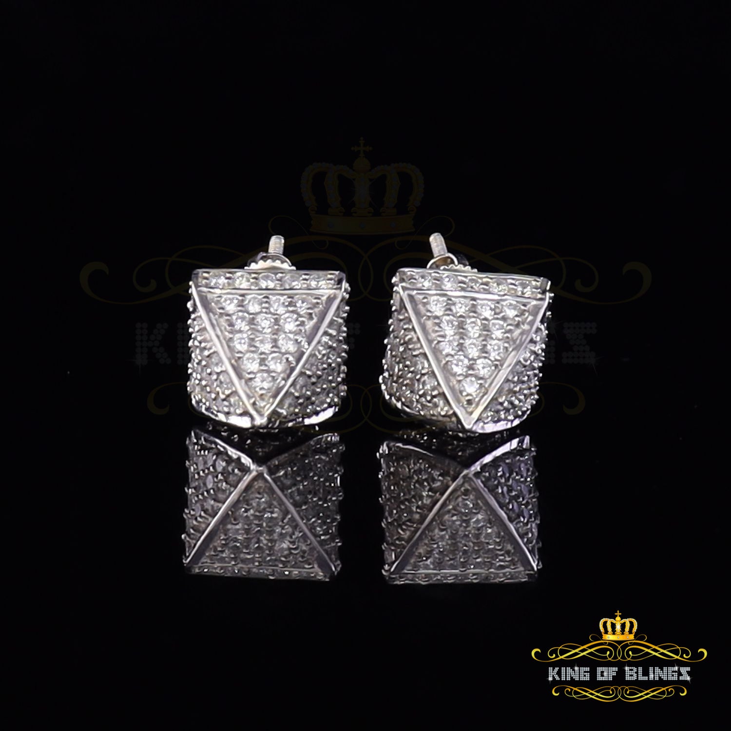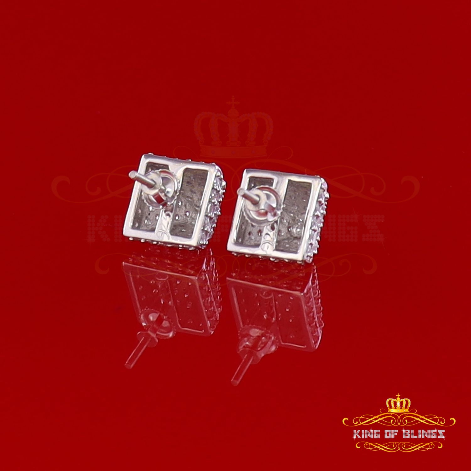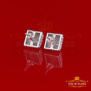 King of Blings- White 925 Silver Screw Back 2.19ct Cubic Zirconia Women Hip Hop Square Earrings