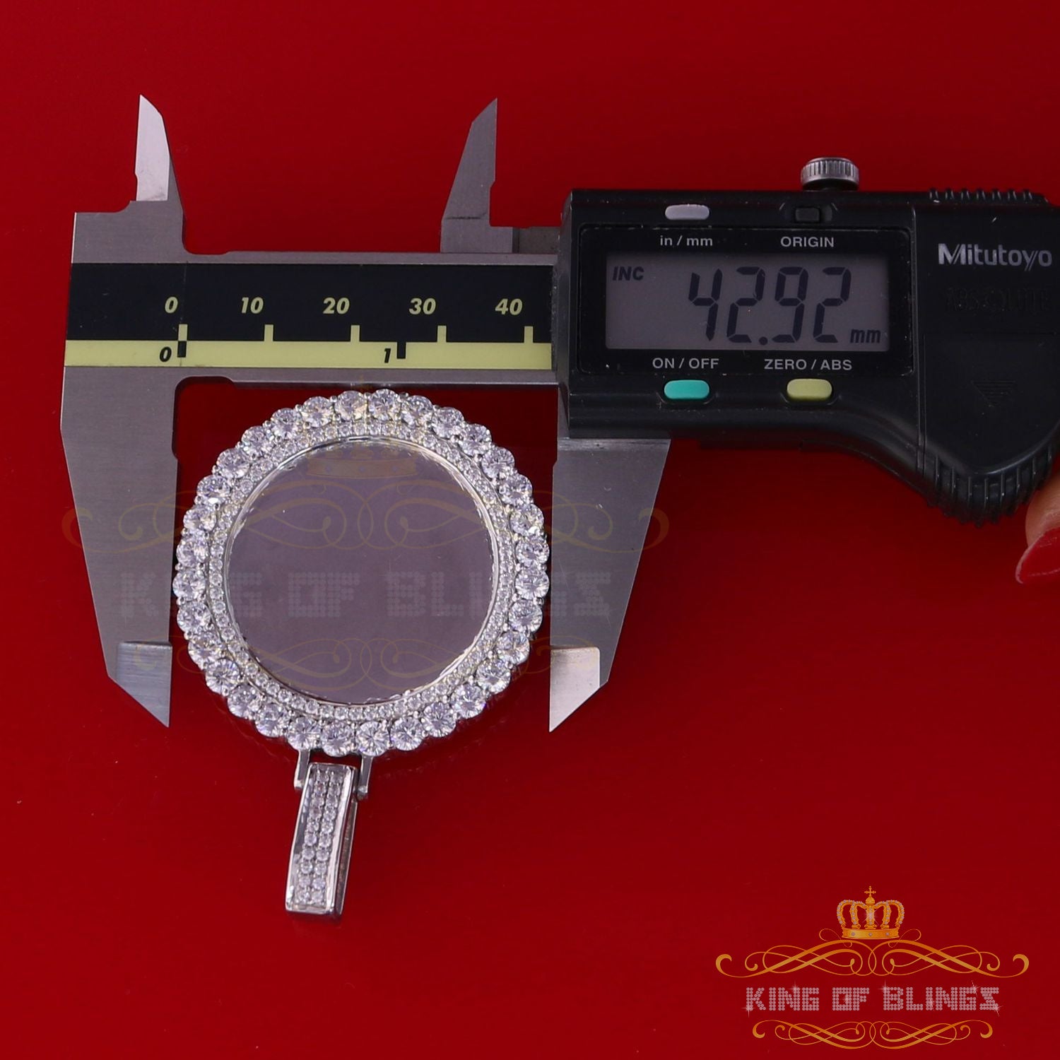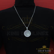 King of Bling's White Charm 925 Sterling Silver Round Shape Pendant with15.09ct Cubic Zirconia