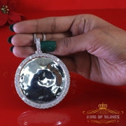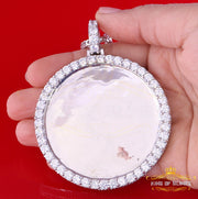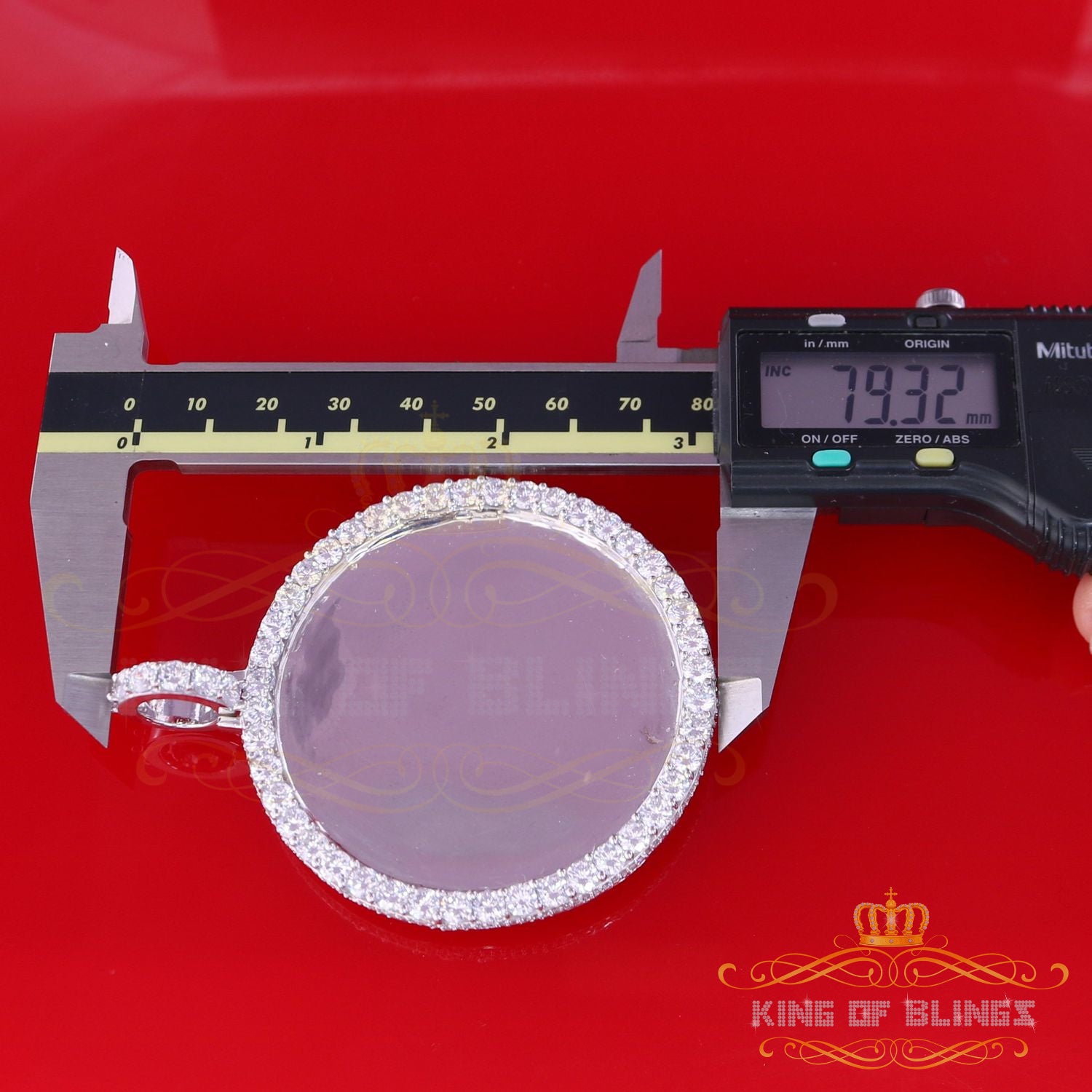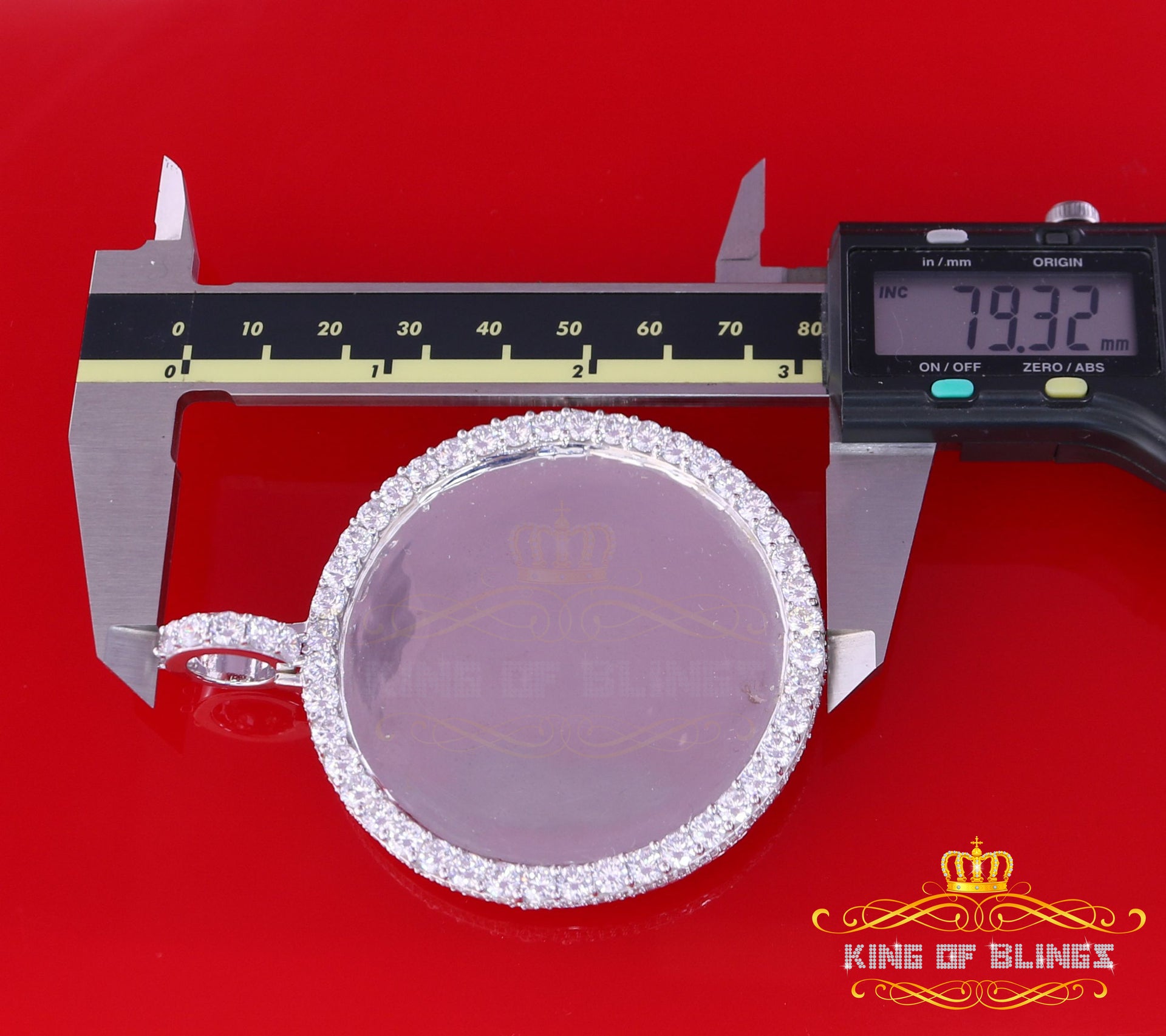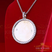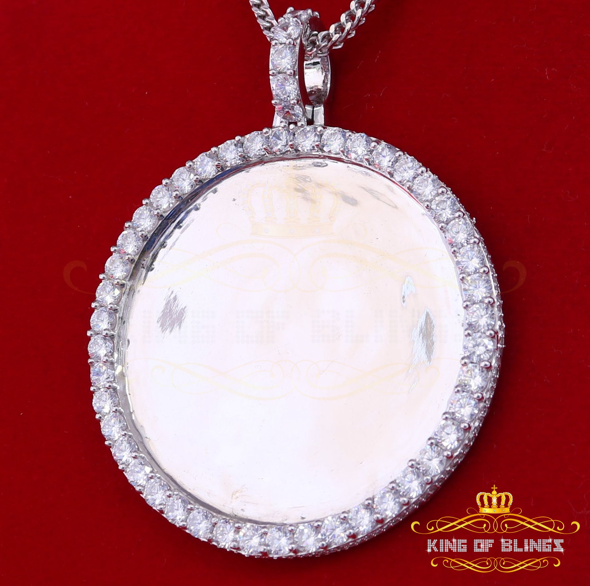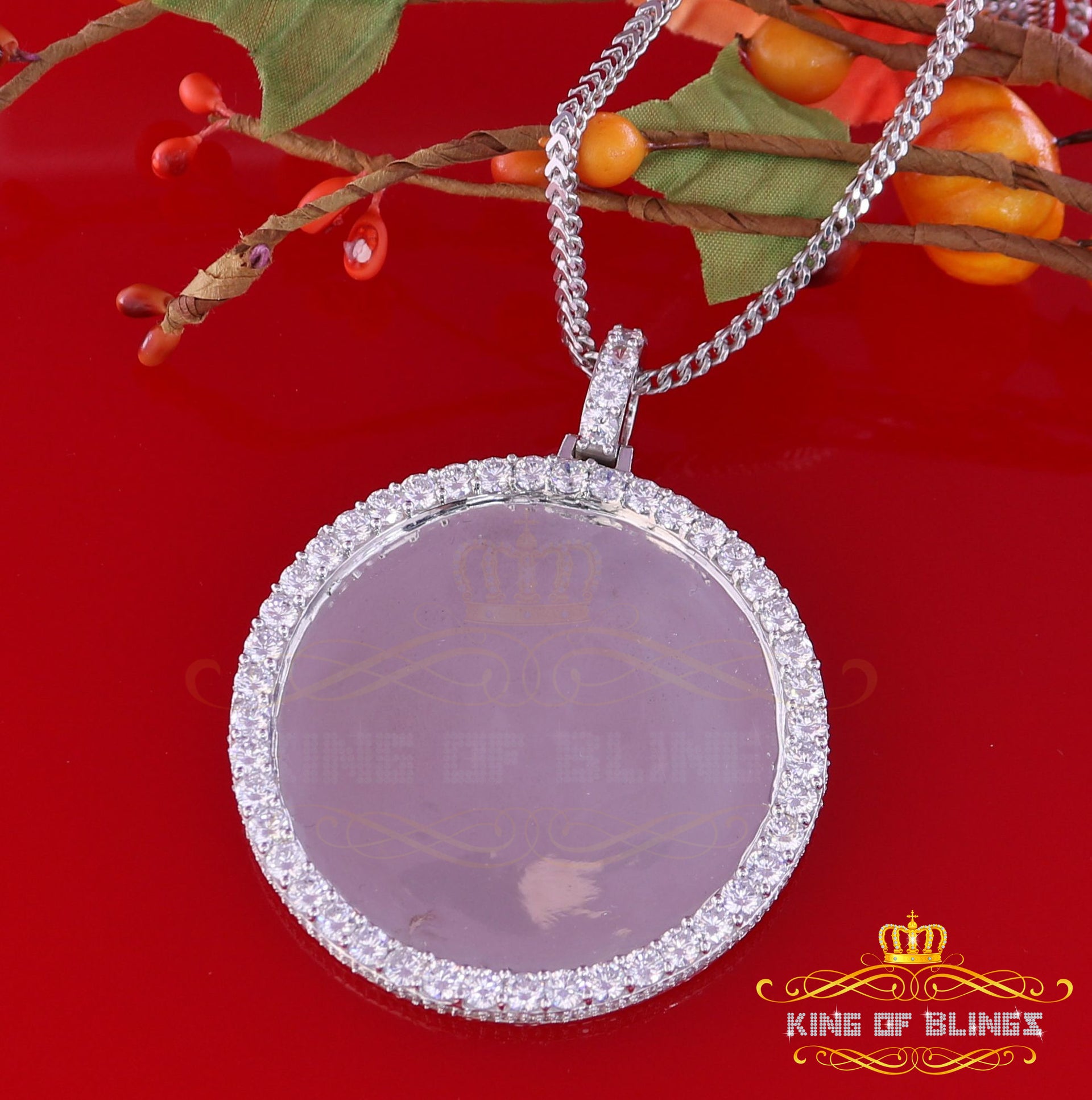 Special memories are never to be forgotten with this personalized and engravable diamond frame medallion photo pendant. Handcrafted, customized photo pendant brings a unique way to honor your loved ones, relatives and friends by allowing you to hold their memories with you in every moment. Your picture will be cropped to fit perfectly into the image area, covered by a protective glass bubble that allows you to see the image from all angles with a reflecting 3D effect. This pendant Made in 925 White Silver got 54.23 gm and Sparkling AAA grade Cubic Zircon weight 27.28ct makes for the perfect holiday gift. A unique way to express your love.