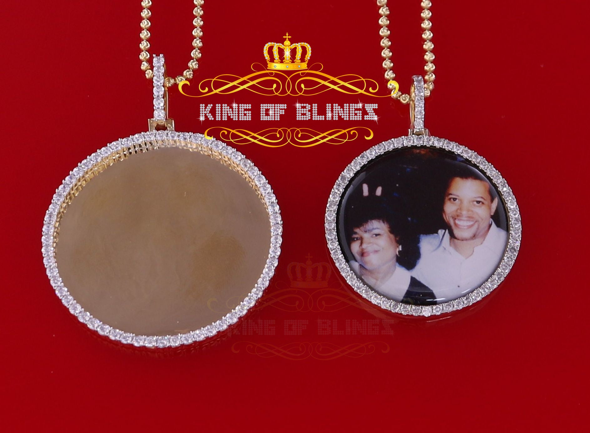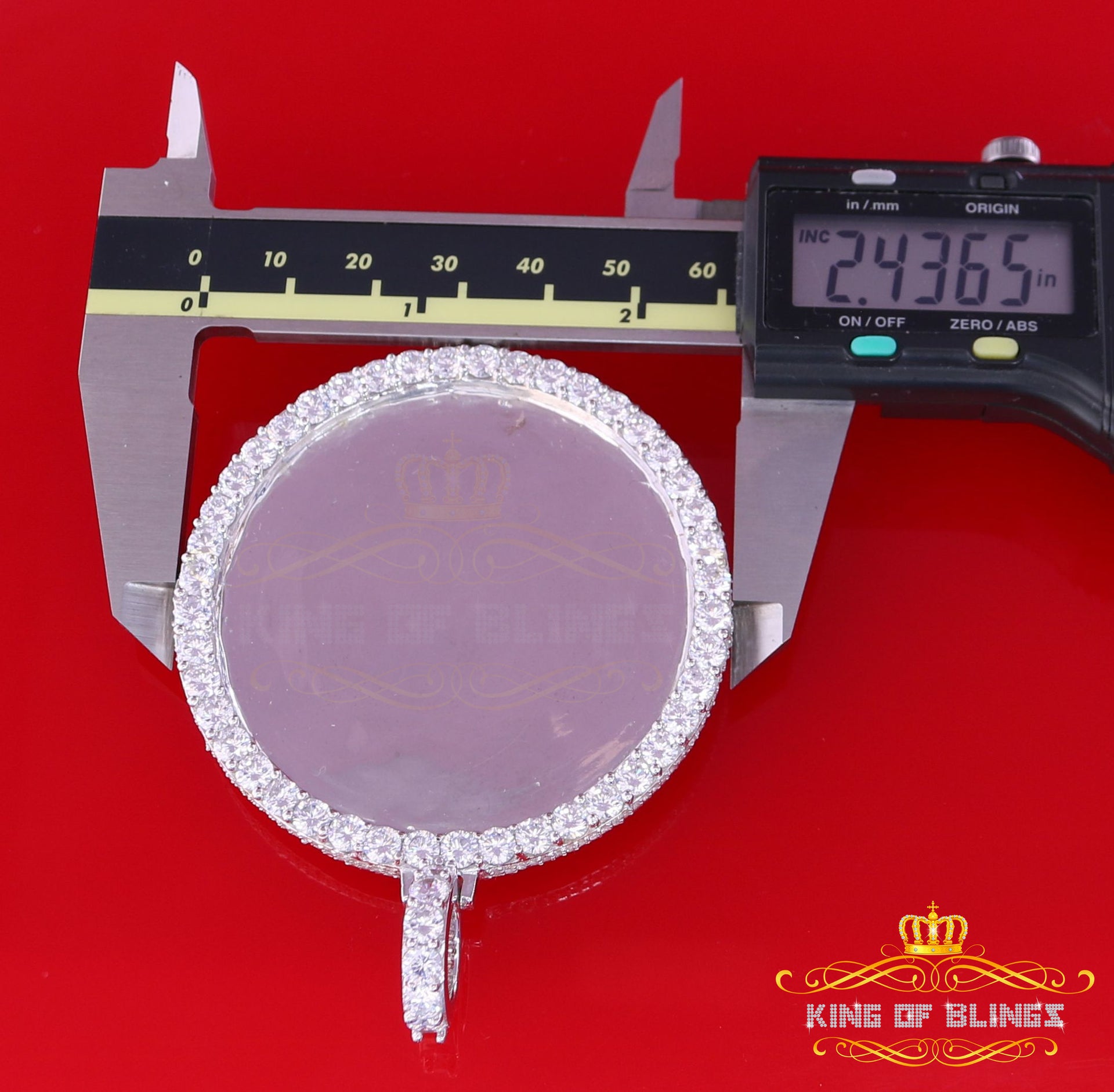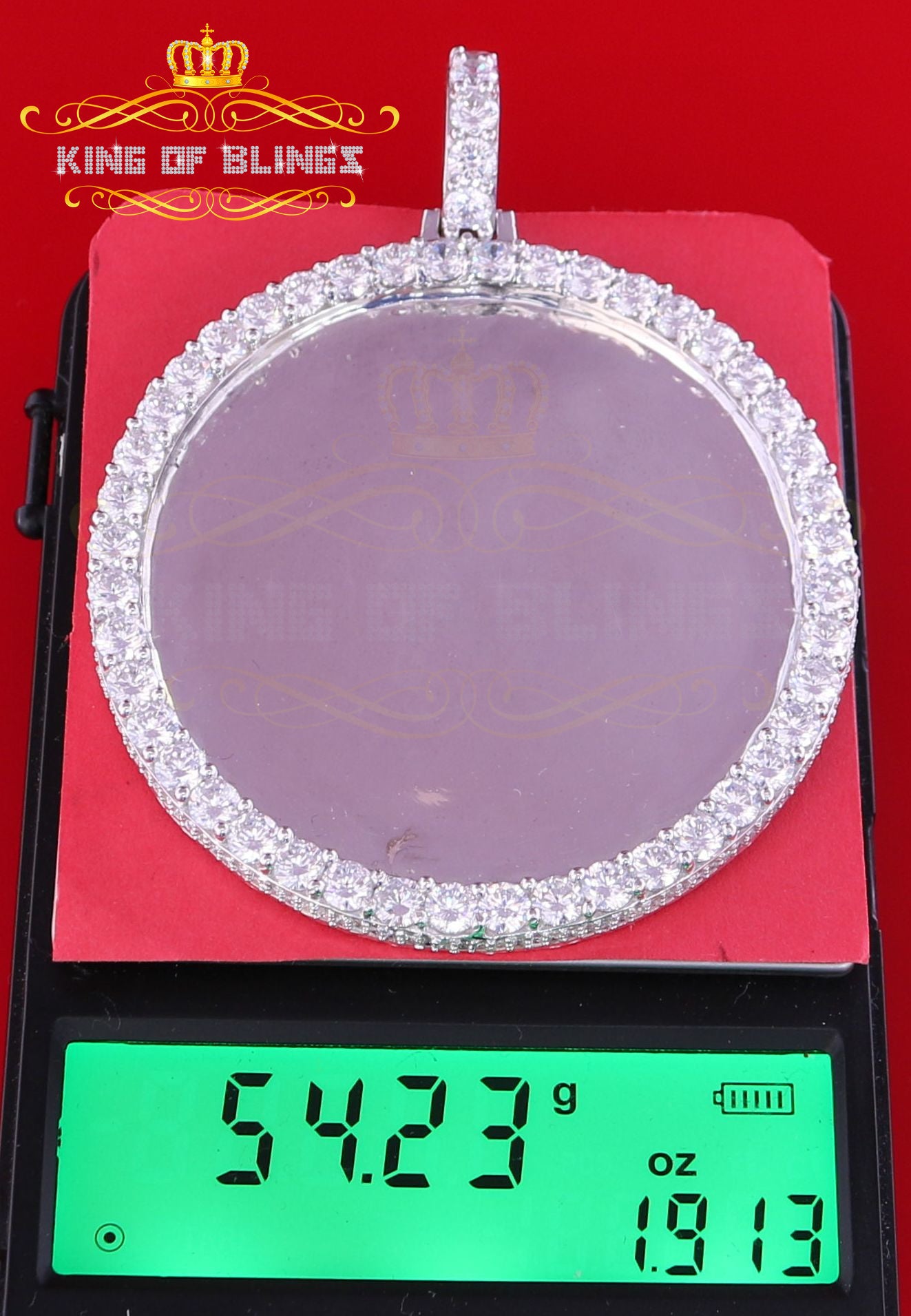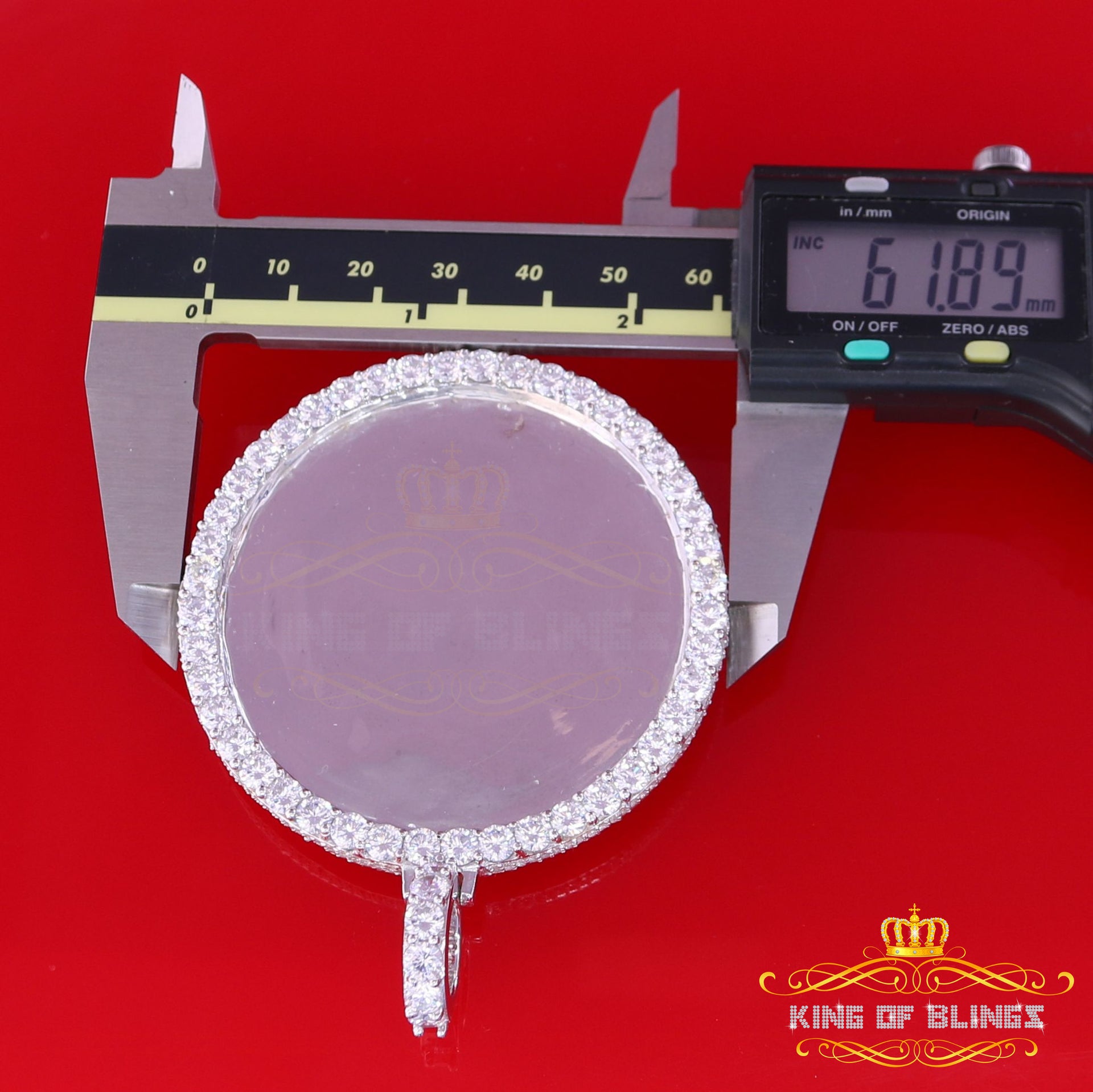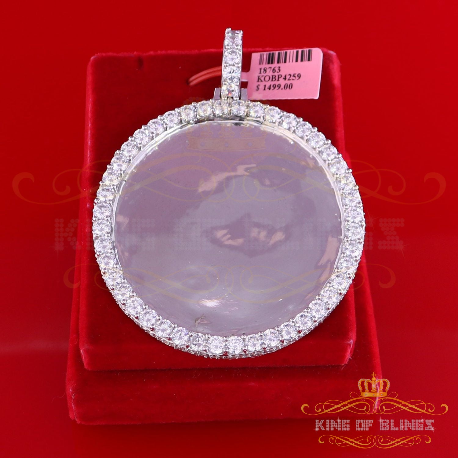 Special memories are never to be forgotten with this personalized and engravable diamond frame medallion photo pendant. Handcrafted, customized photo pendant brings a unique way to honor your loved ones, relatives and friends by allowing you to hold their memories with you in every moment. Your picture will be cropped to fit perfectly into the image area, covered by a protective glass bubble that allows you to see the image from all angles with a reflecting 3D effect. This pendant Made in 925 White Silver got 54.23 gm and Sparkling AAA grade Cubic Zircon weight 27.28ct makes for the perfect holiday gift. A unique way to express your love.