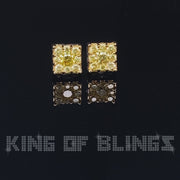 King of Blings-White Silver 1.68ct Cubic Zirconia Yellow Stone Womens/Men's Square Earrings