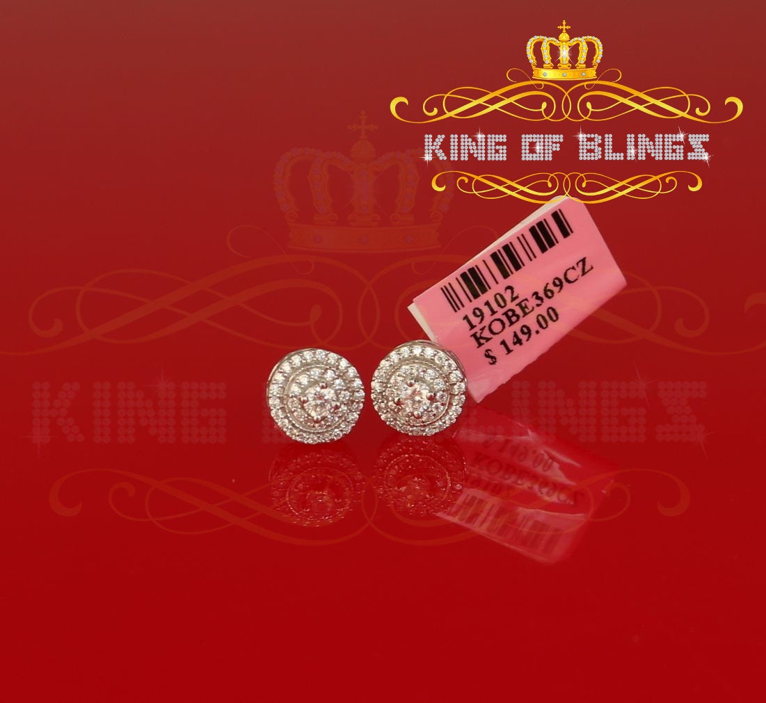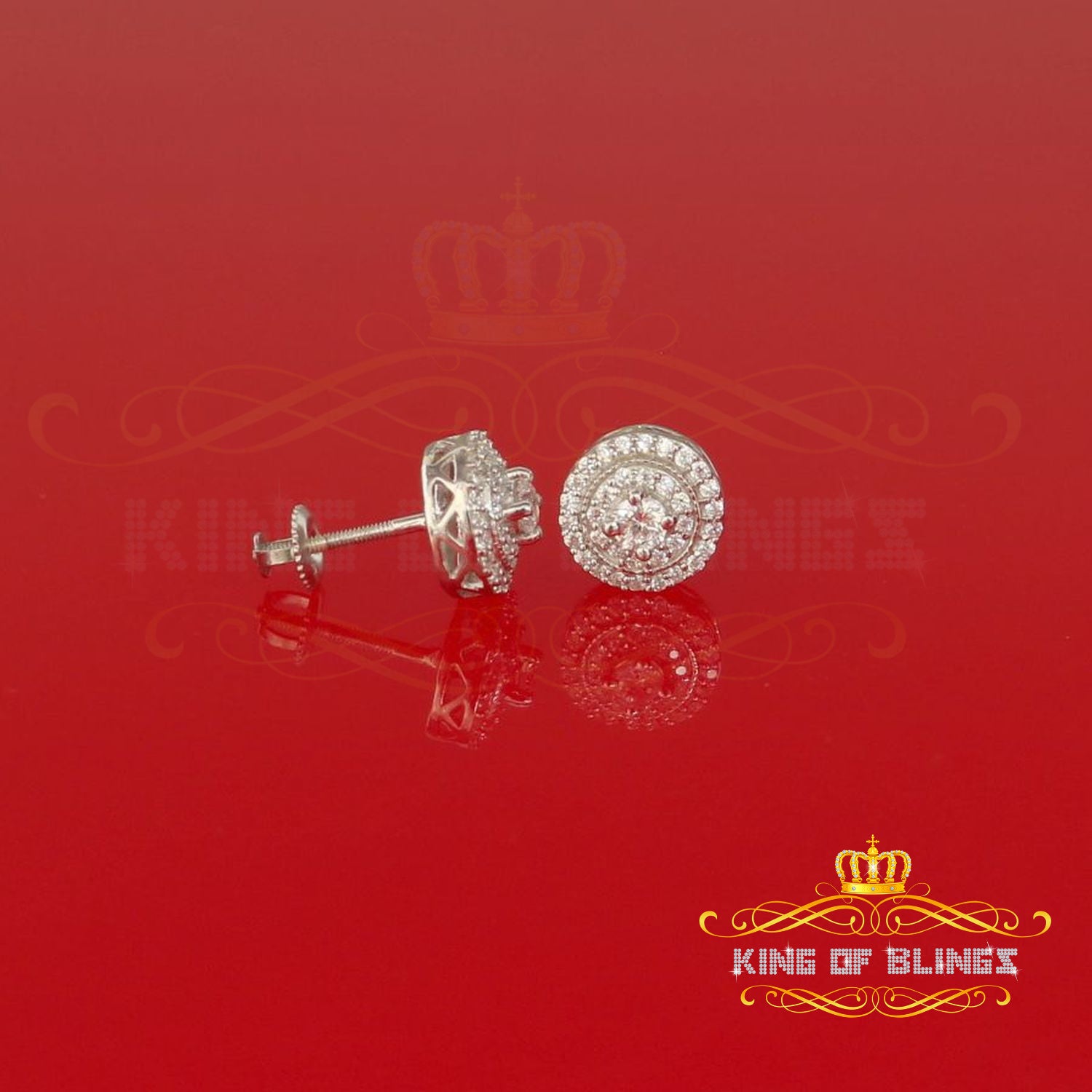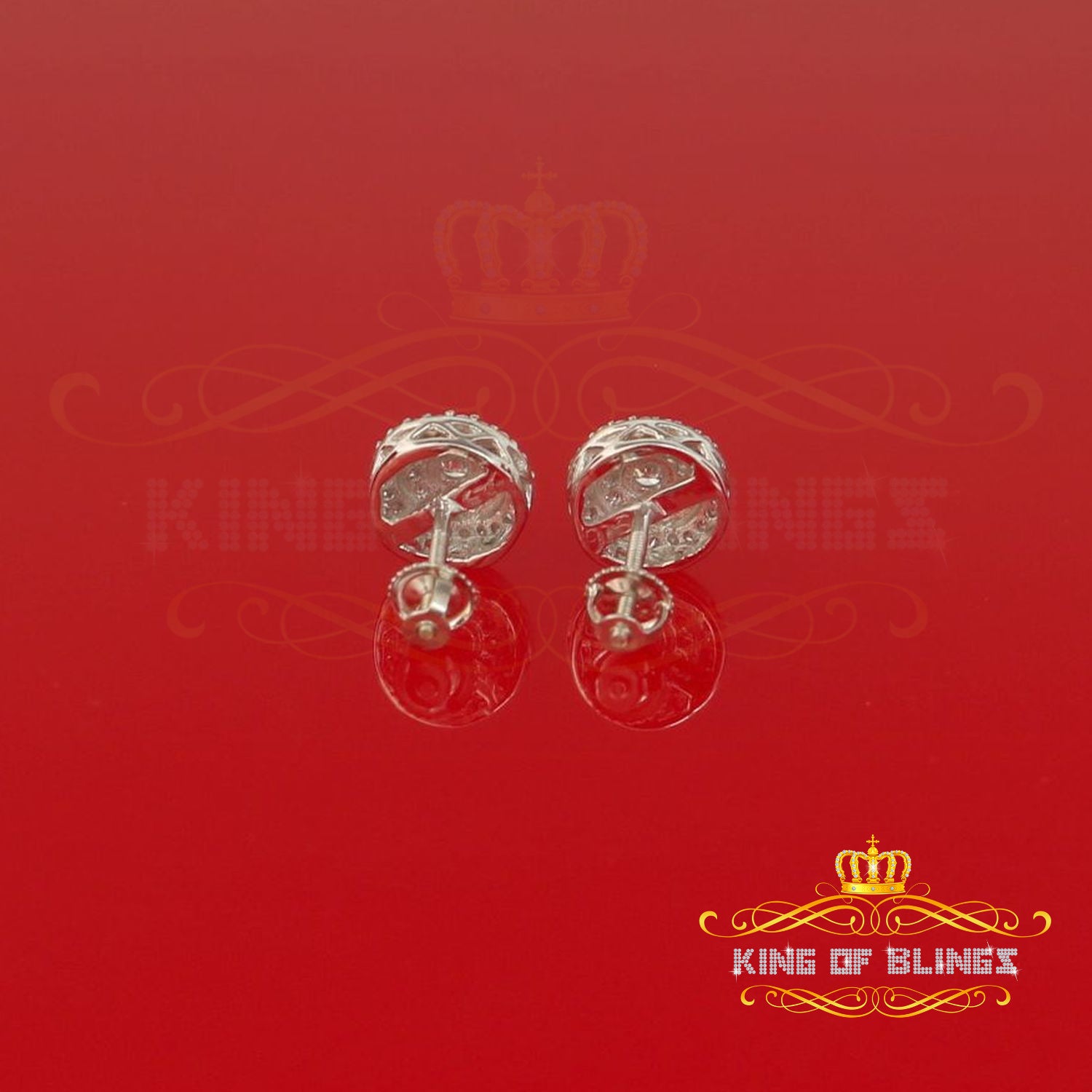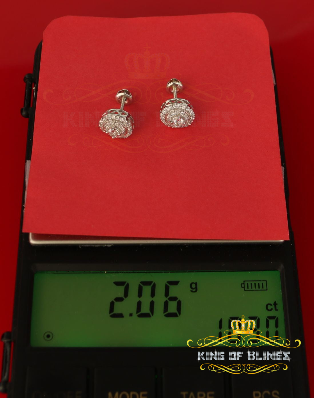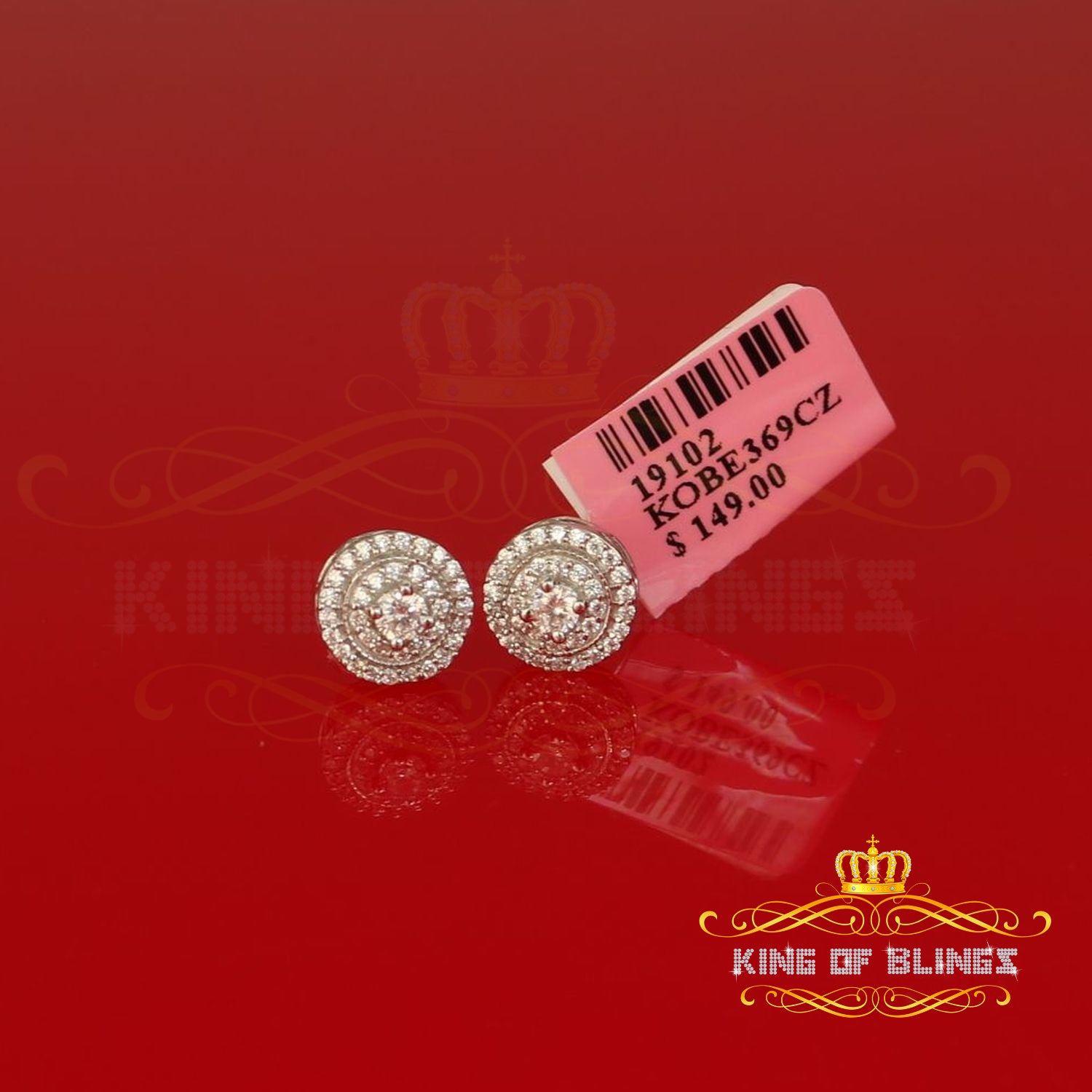 King of Bling's White Silver 925 Aretes Para Hombre 0.92ct Cubic Zirconia Women's Round Earring