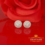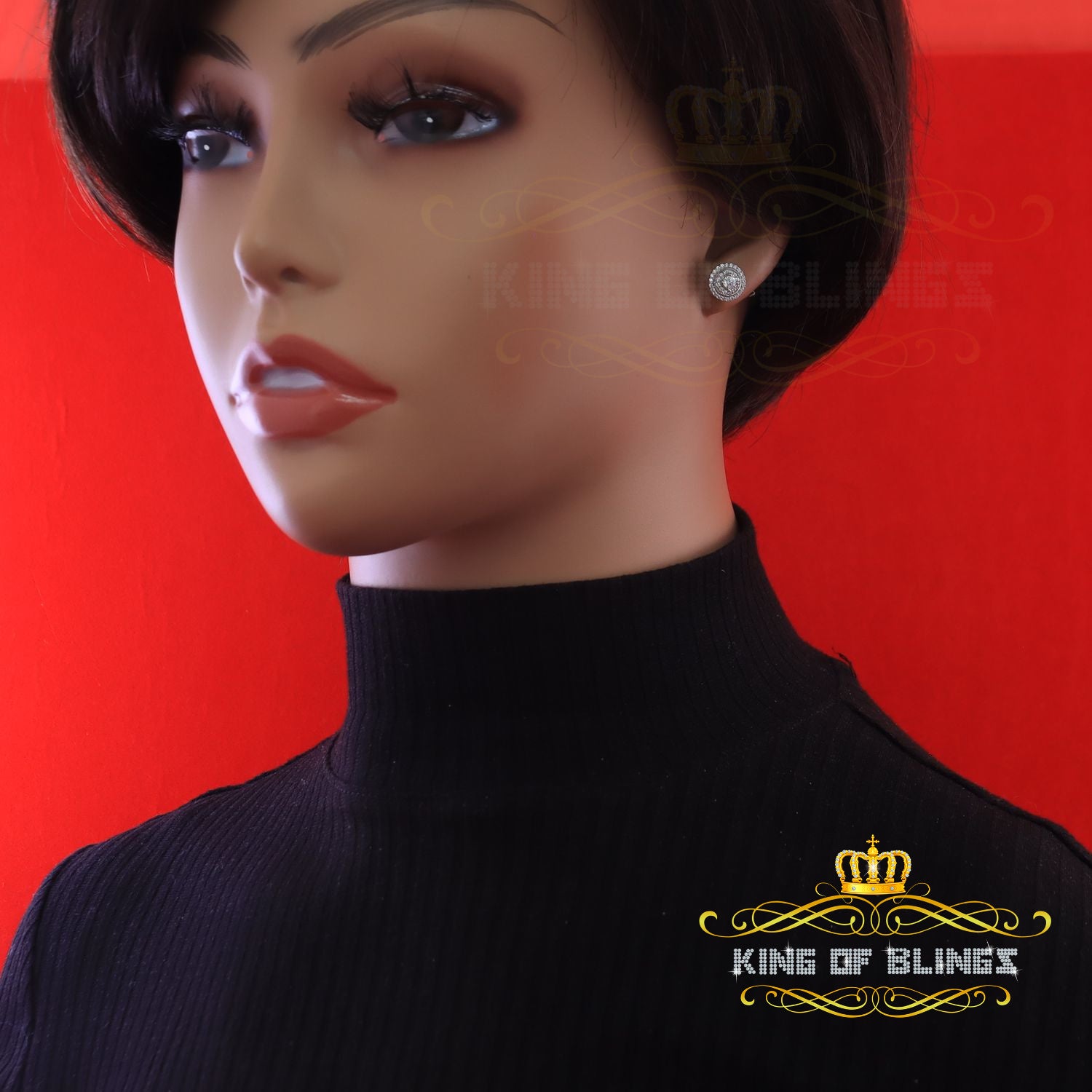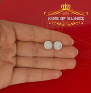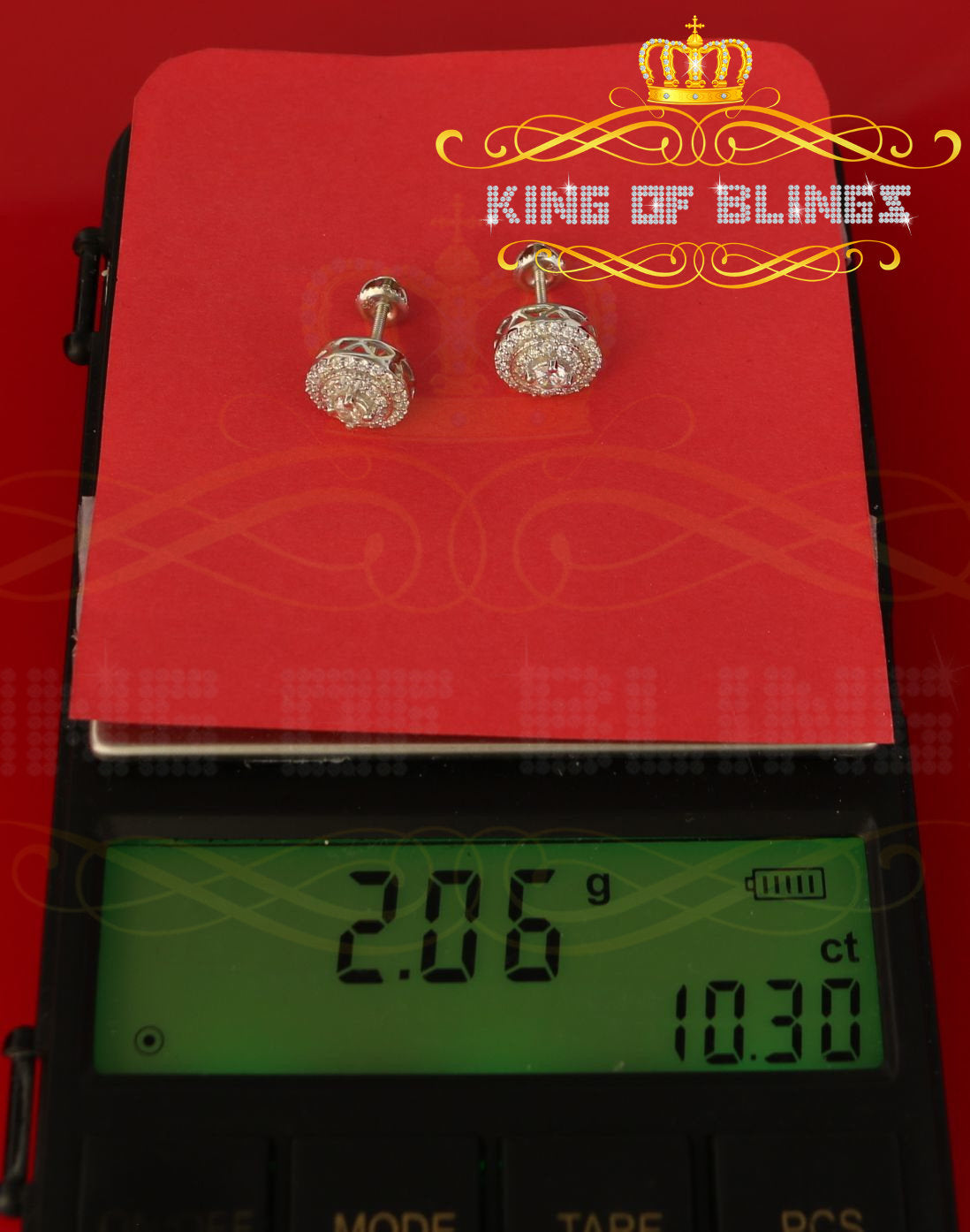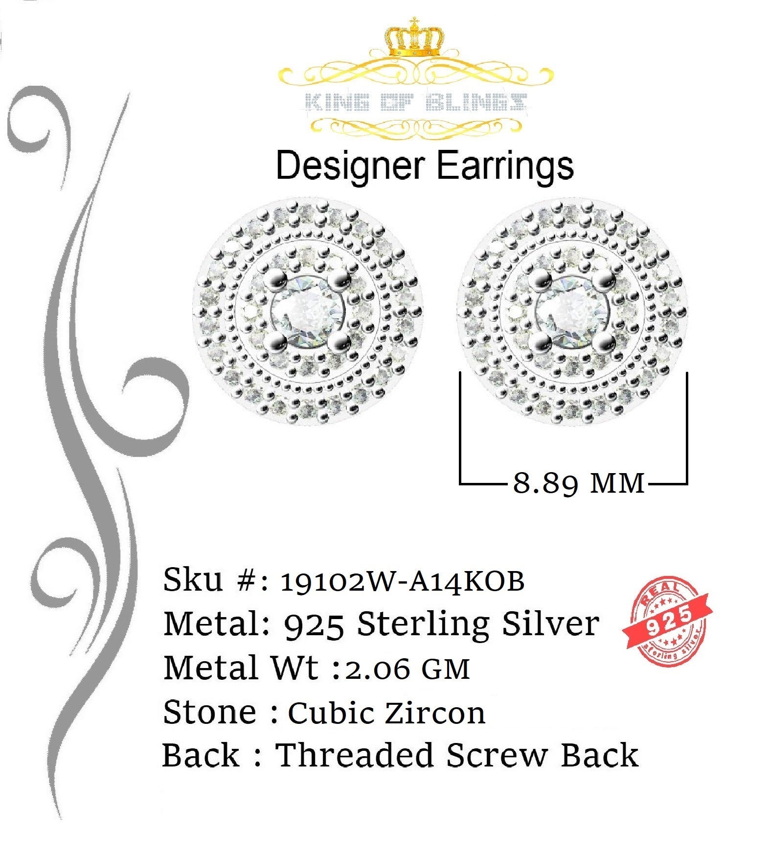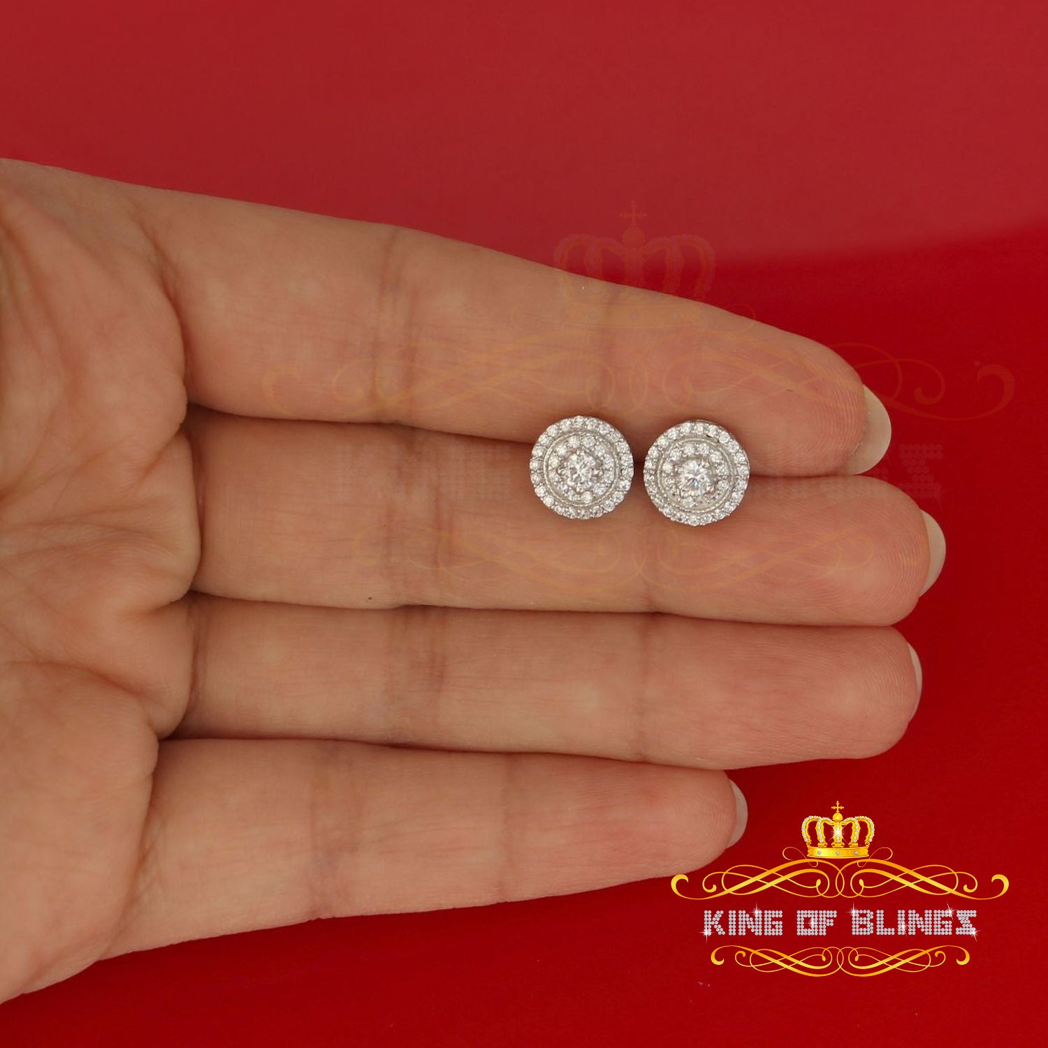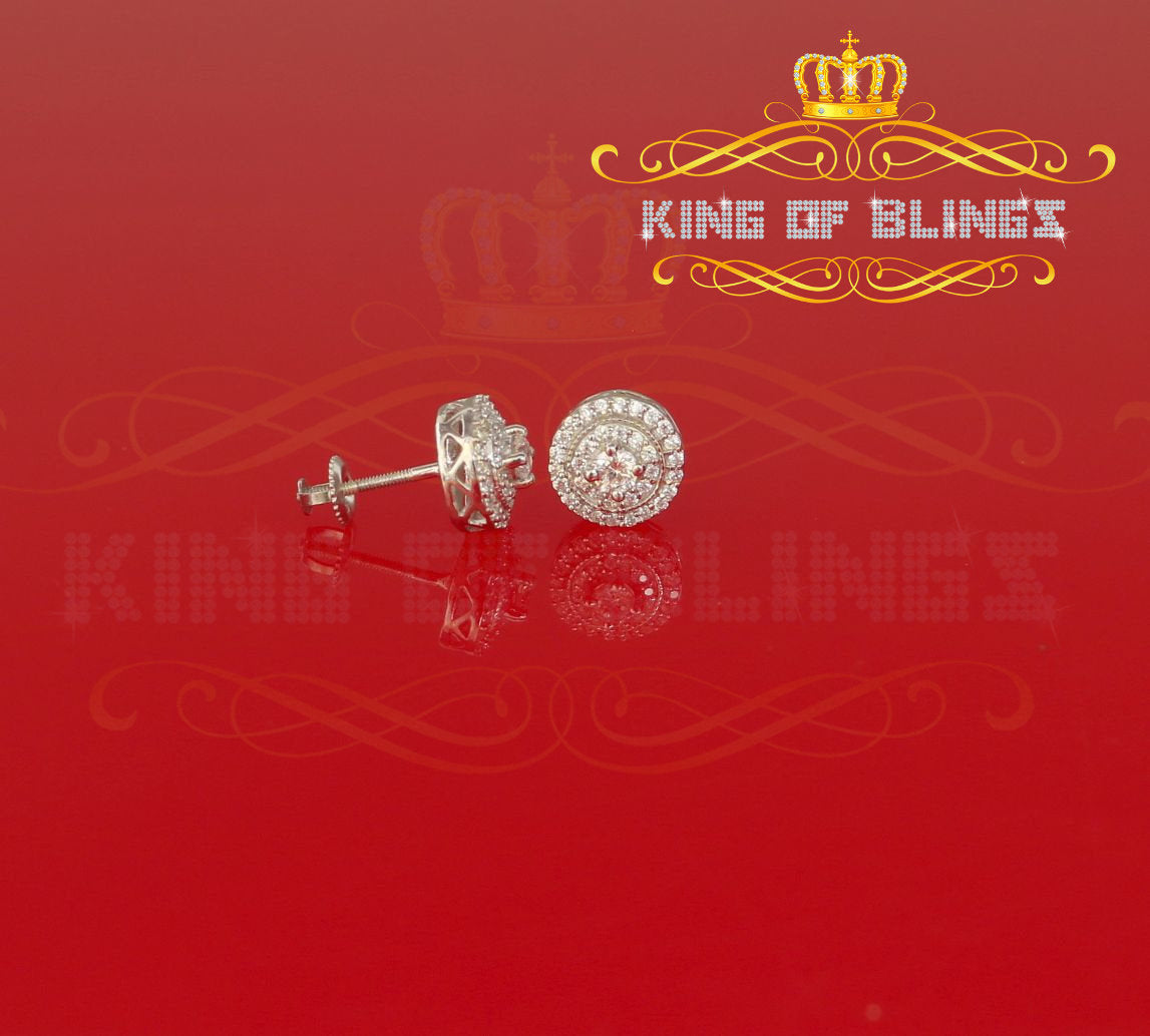 King of Bling's White Silver 925 Aretes Para Hombre 0.92ct Cubic Zirconia Women's Round Earring