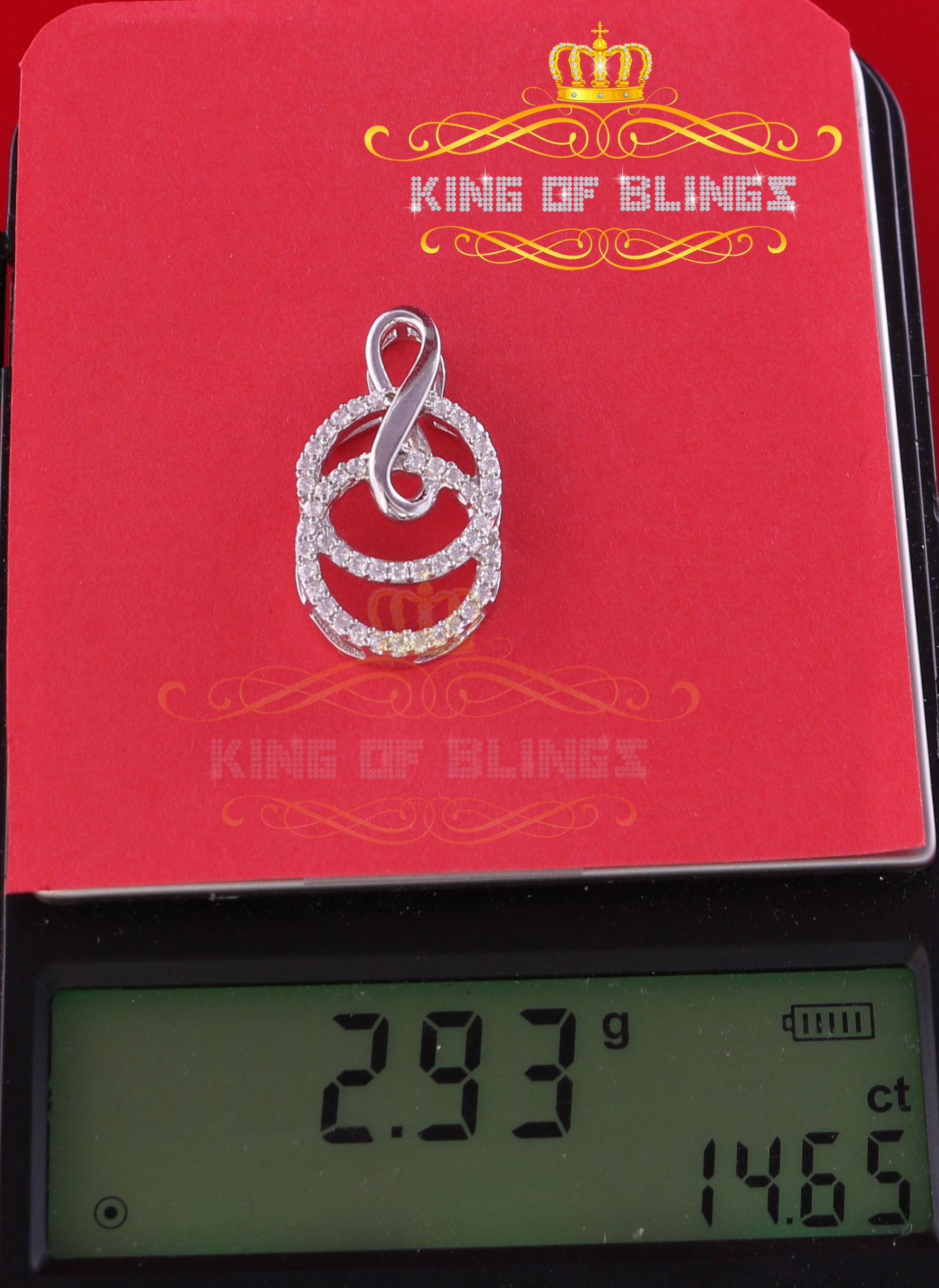 King Of Bling's White Silver Pendant Double Circle With Infinite Necklace 1.44ct Cubic Zirconia