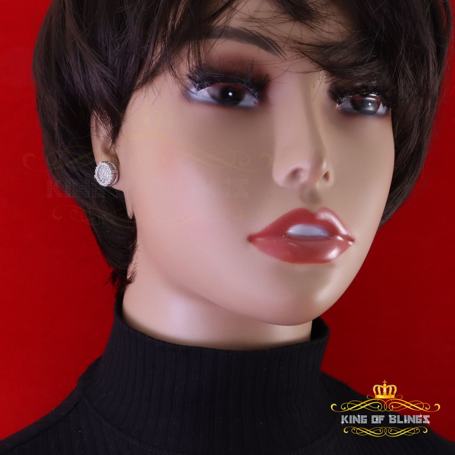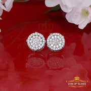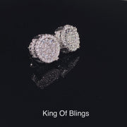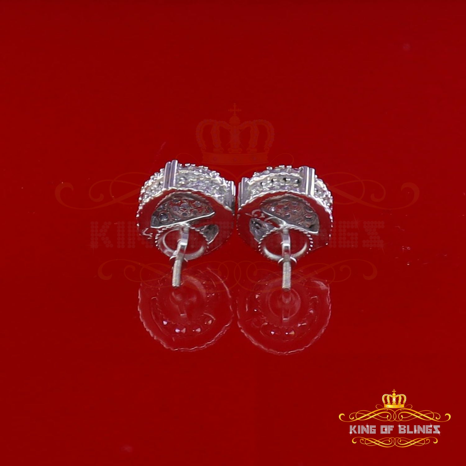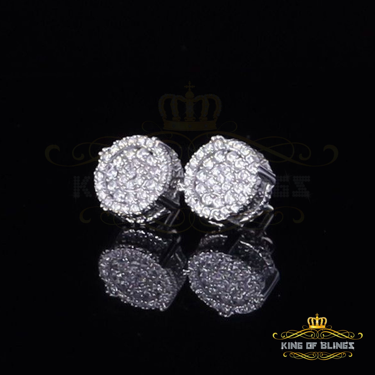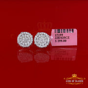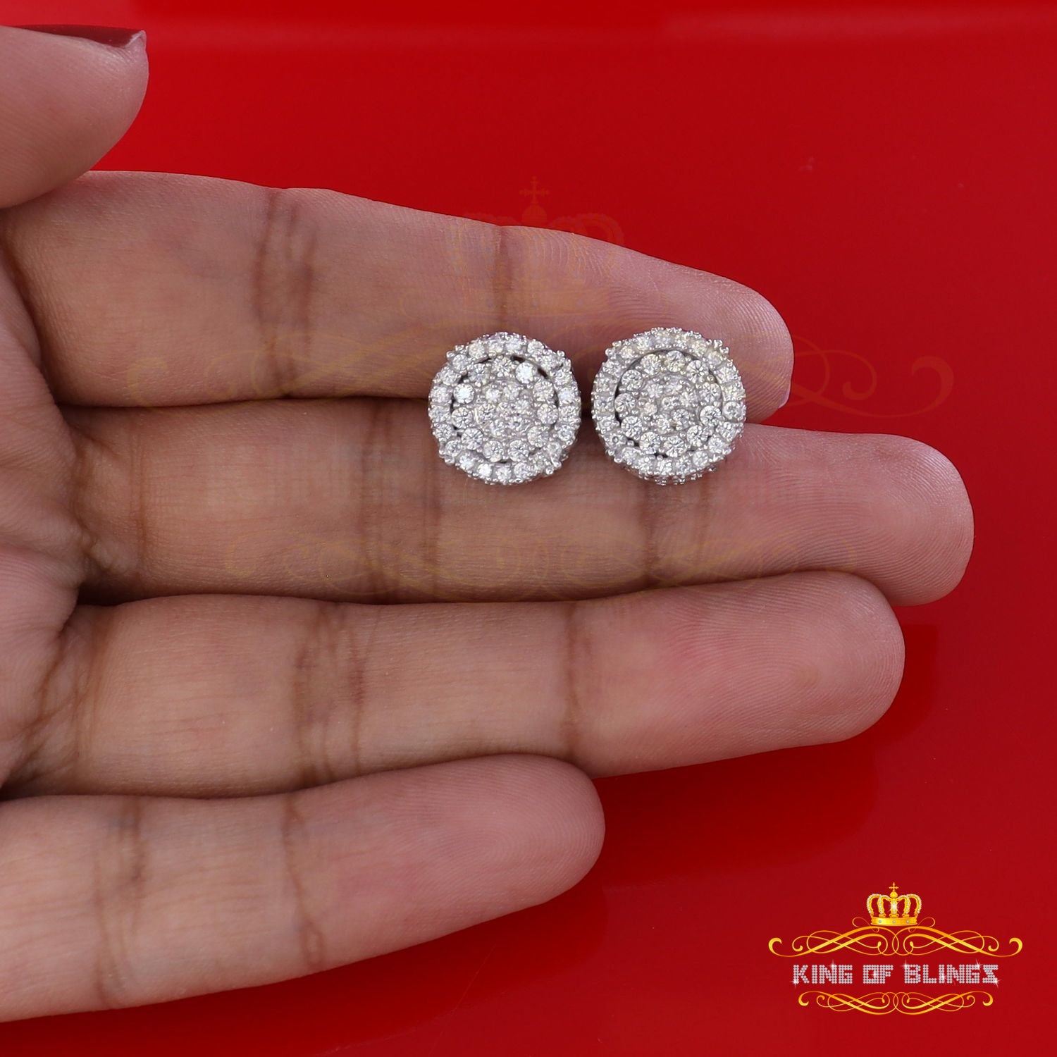 King of Blings- White Sterling Silver 1.32ct Cubic Zirconia Hip Hop Round Earrings for women's