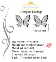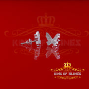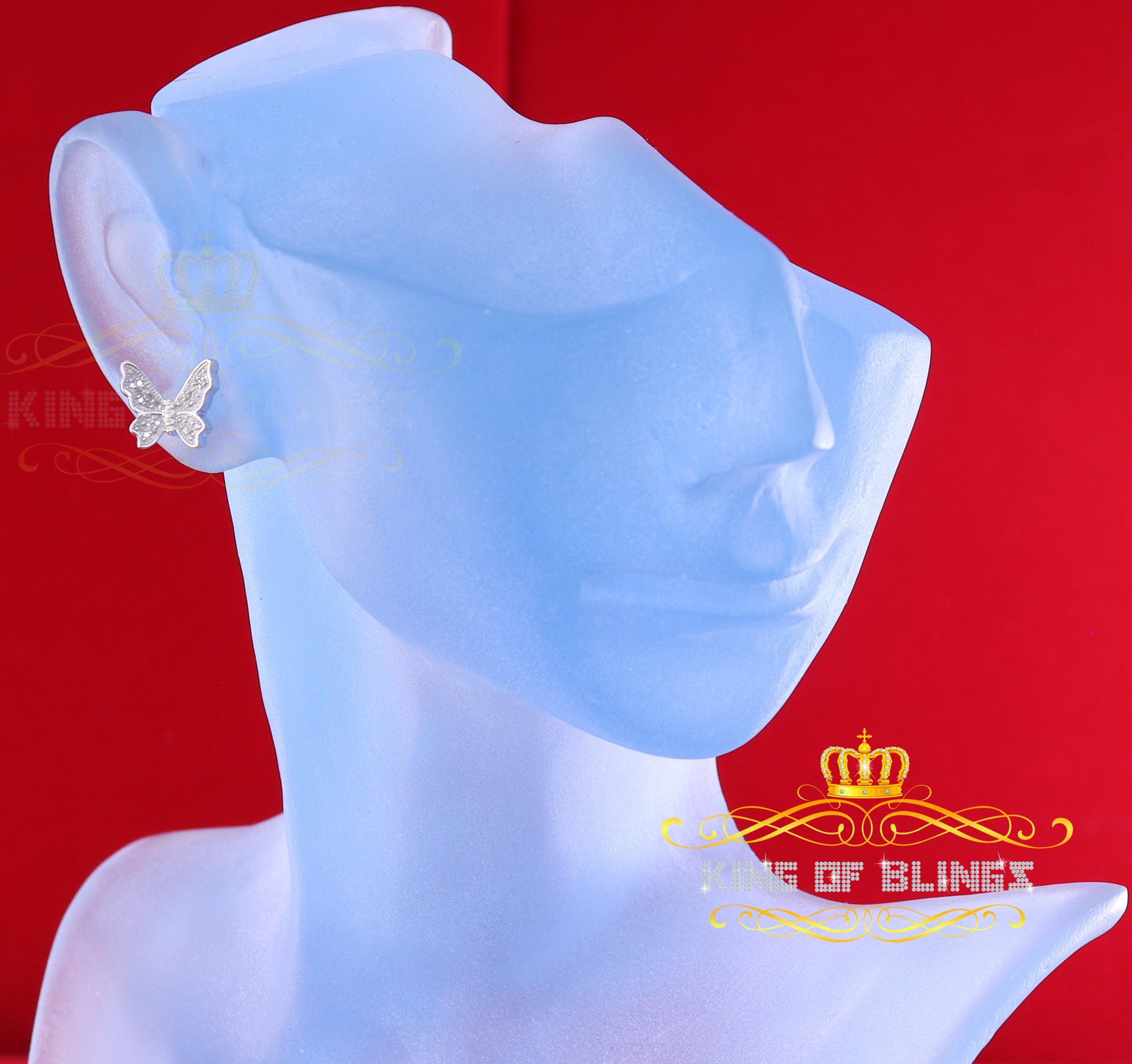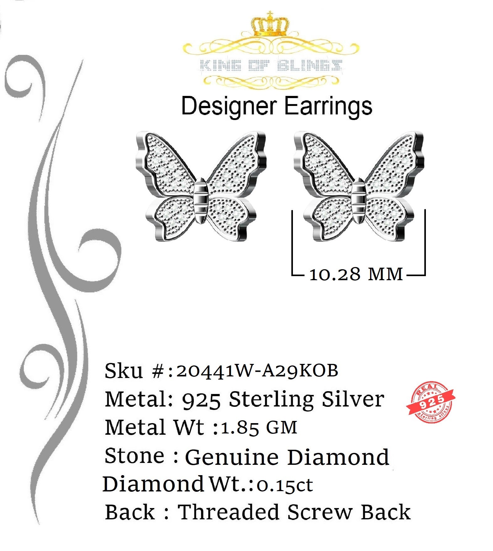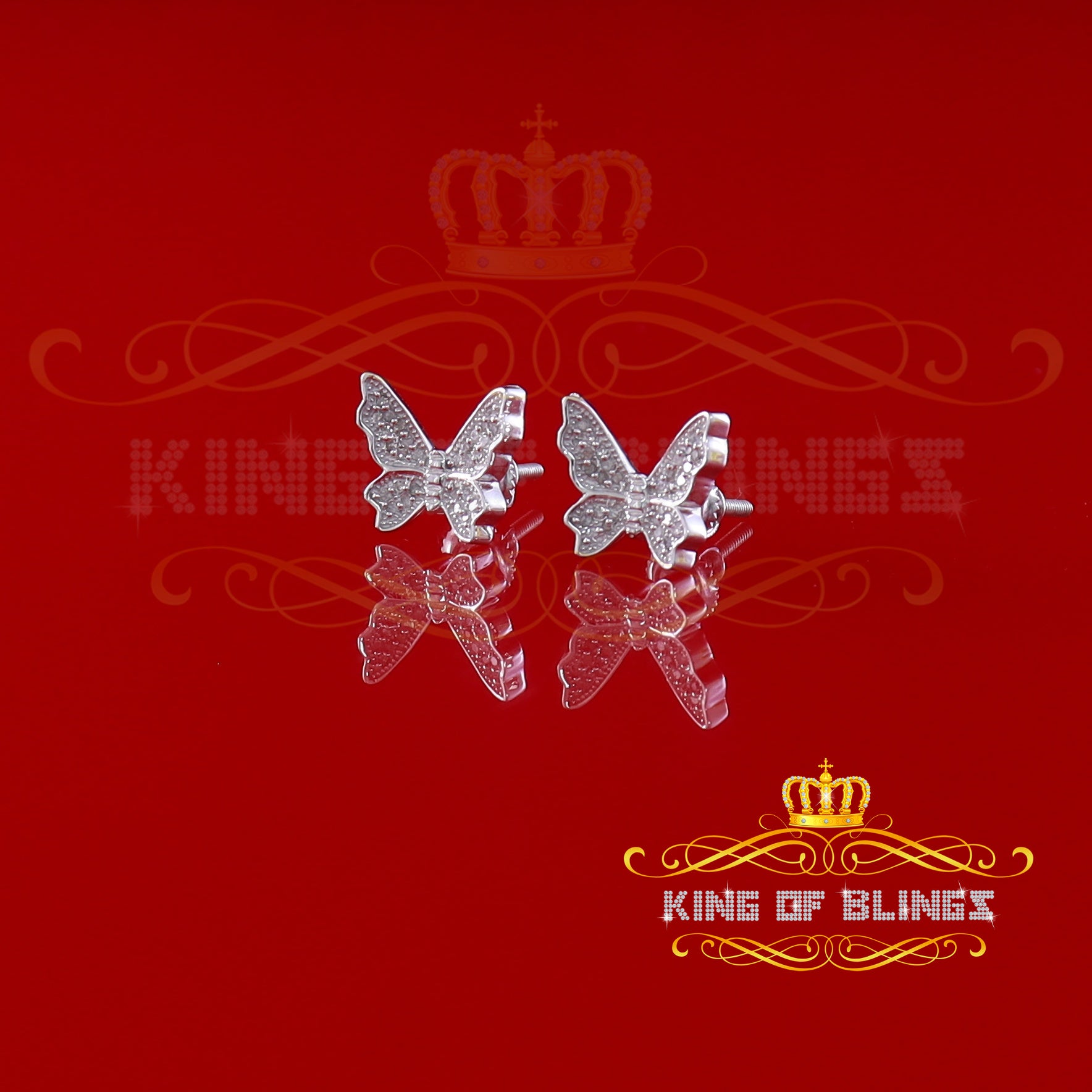 King Of Bling's Women's 0.15ct Real Diamond Butterfly Stud Earrings White 925 Sterling Silver