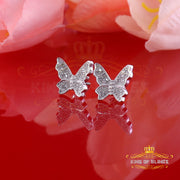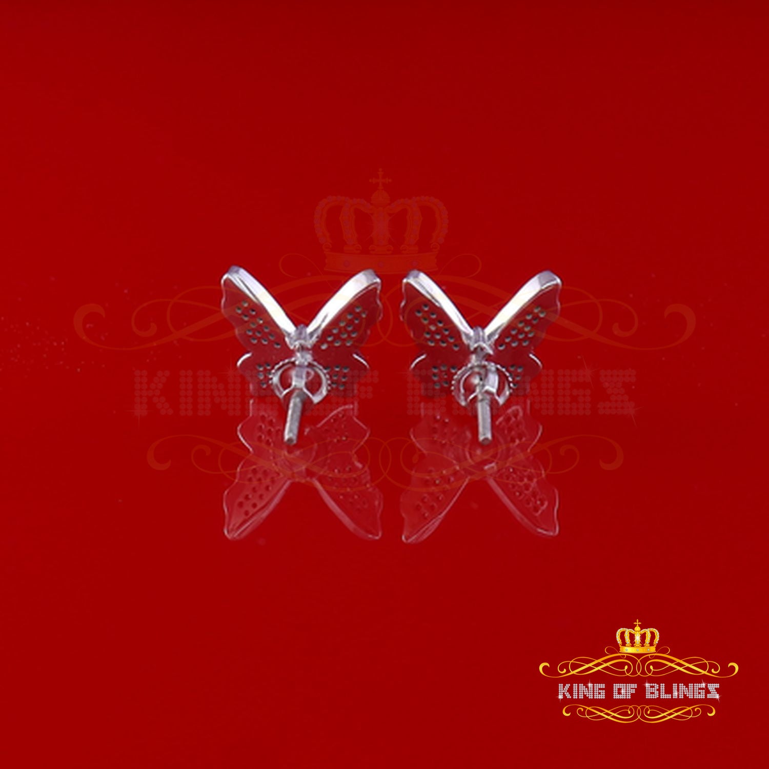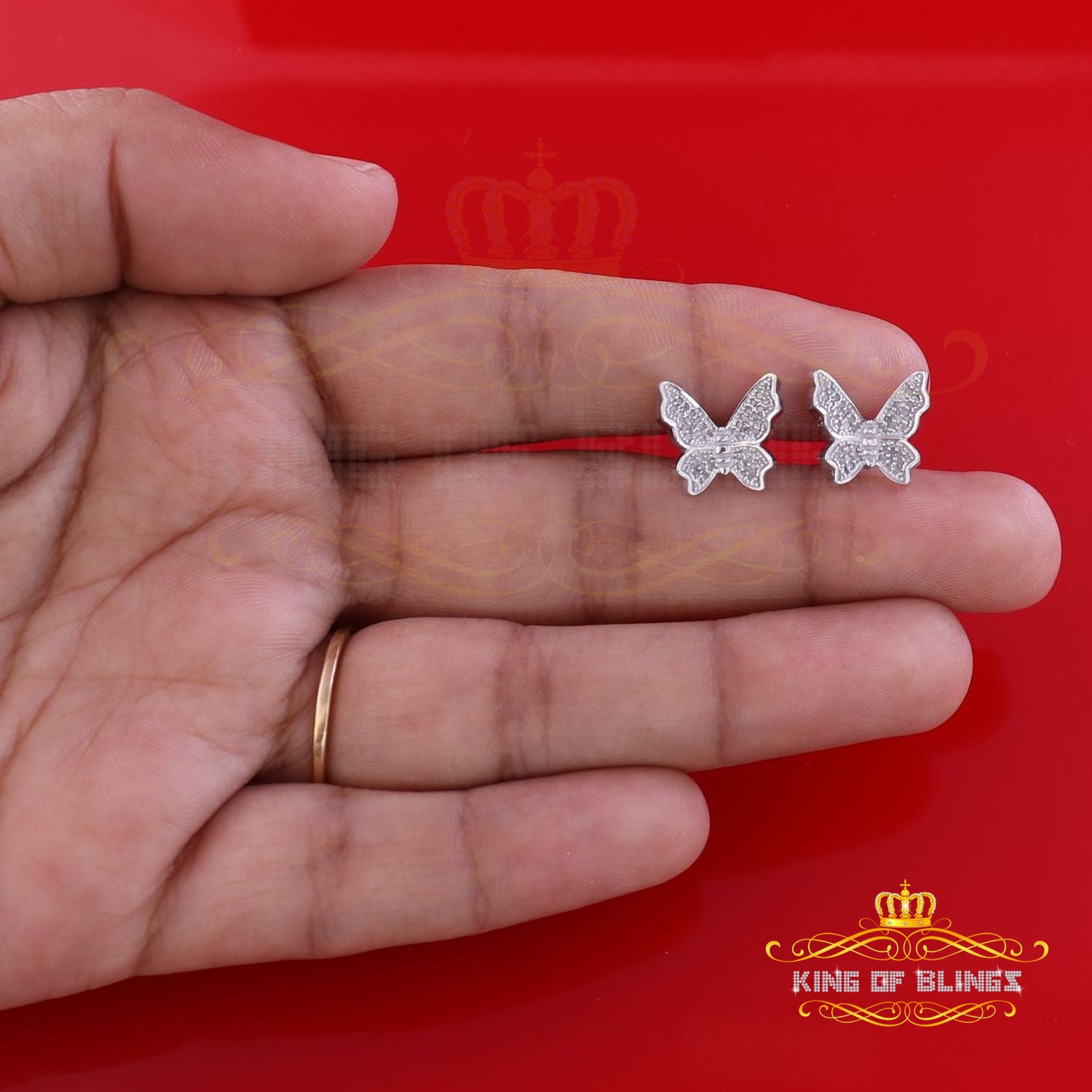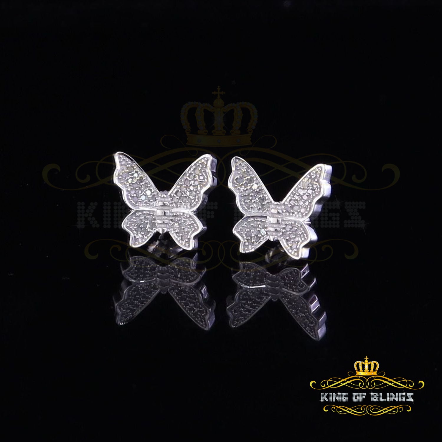 King Of Bling's Women's 0.25ct Real Diamond Butterfly Stud Earrings White 925 Sterling Silver