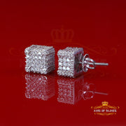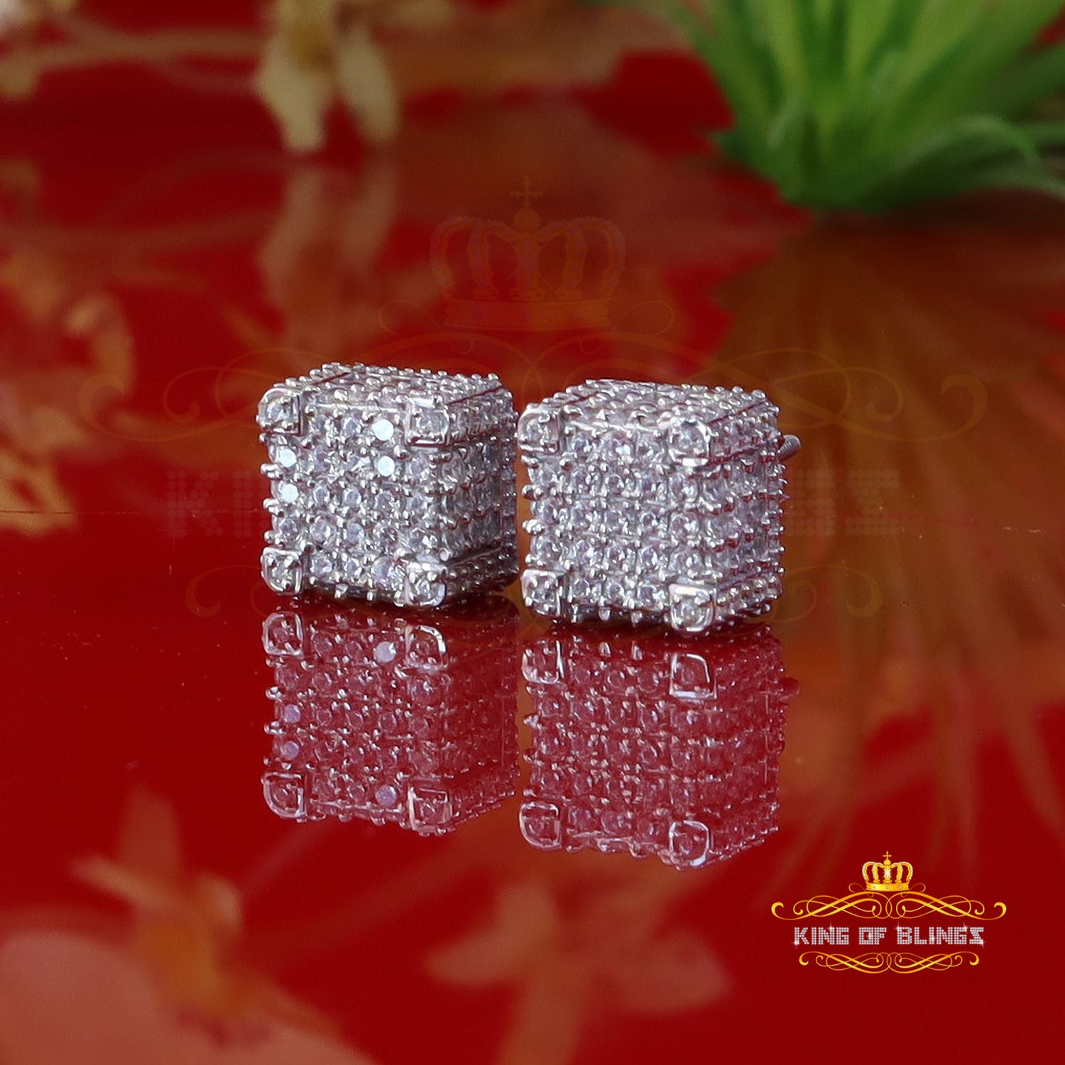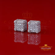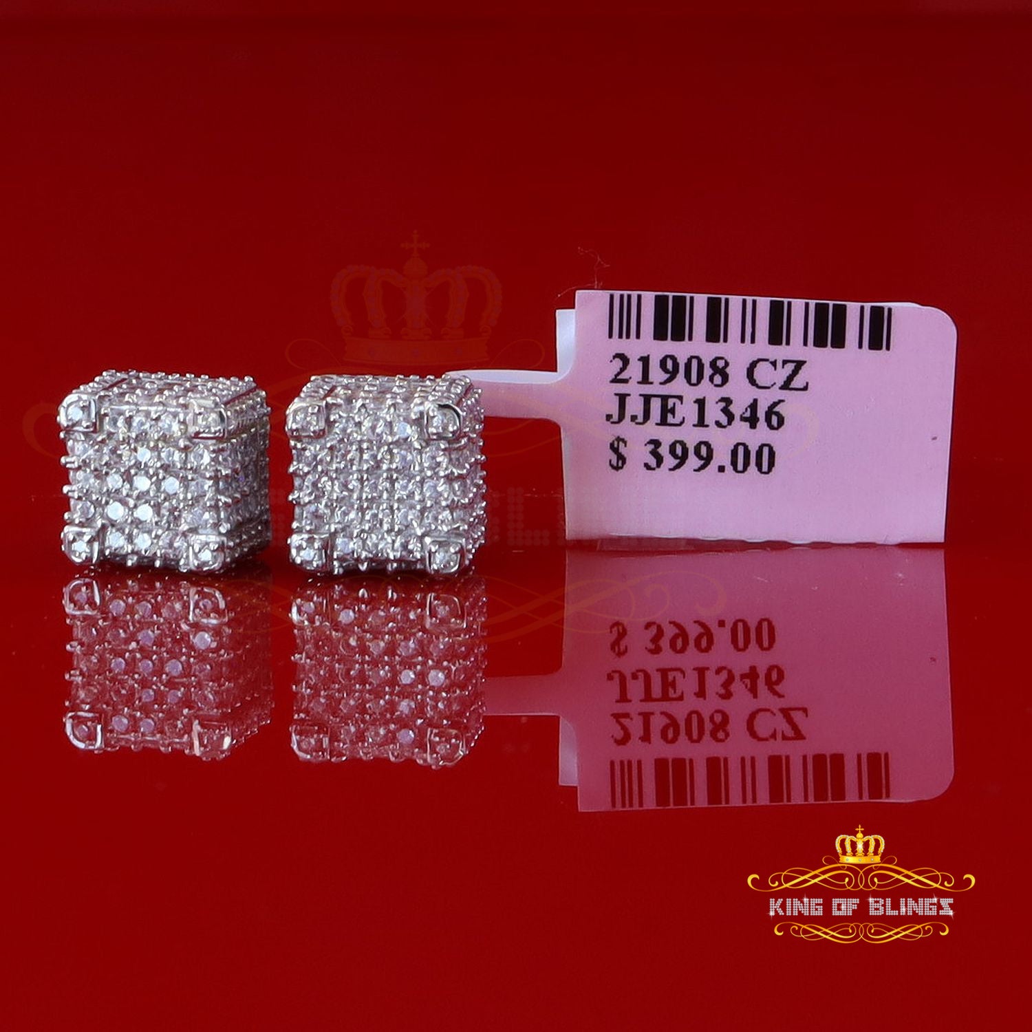 King of Bling's Women's 2.77 ct 925 Silver White Cubic Zirconia Cube Earrings