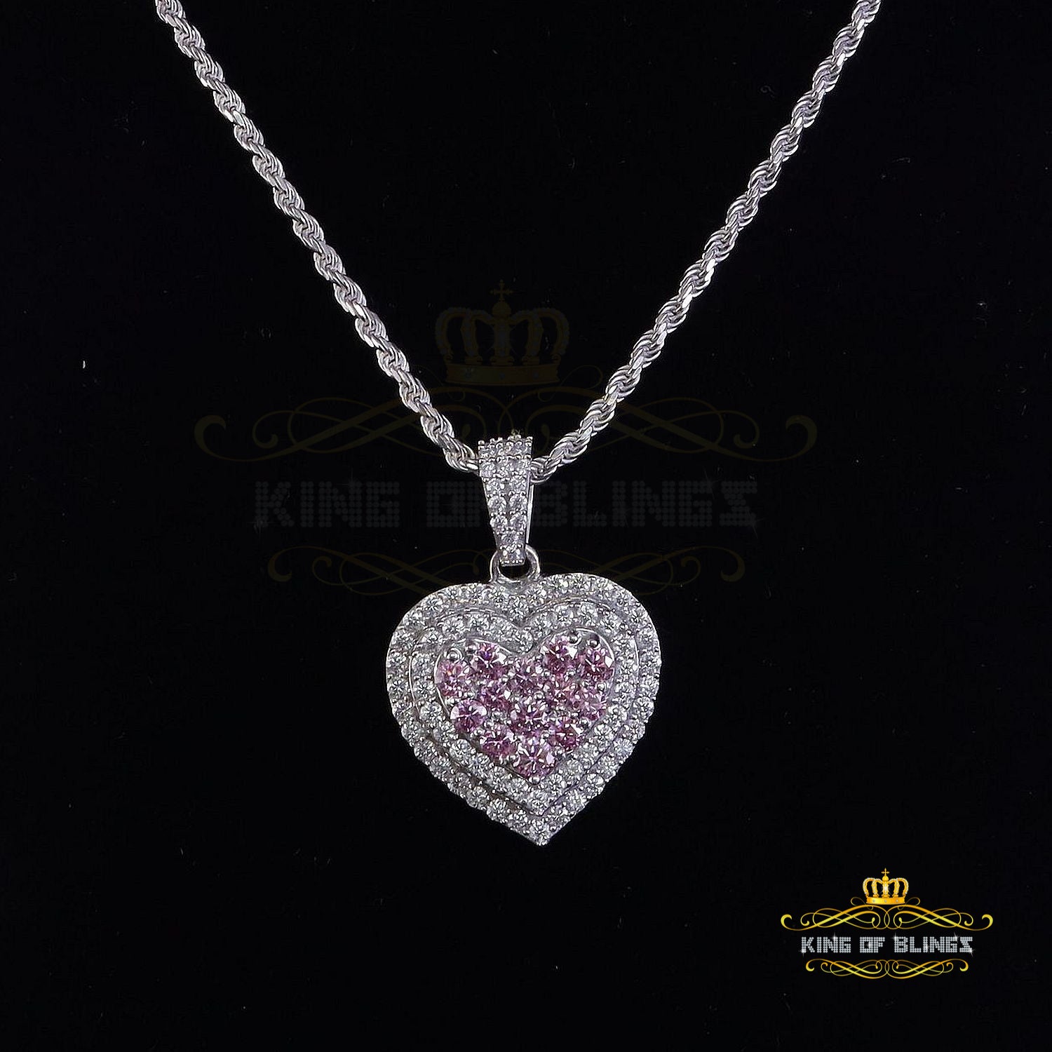Introducing King Of Blings exquisite Silver Pink & White Moissanite Pendant, This new 3D Heart pendant is a stylish unisex piece made of 925 sterling silver.with 9.61gm With timeless beauty and exceptional quality, these earrings captivate hearts. The glistening Moissanite stones of 11.00ct & VVS 'D' Clarity & Color emit a radiant sparkle. Nickel-free and rhodium-plated for durability, they are perfect for all genders and ages. Symbolizing April's birthstone, they make a meaningful gift. Versatile for any occasion, they arrive brand new in original packaging, promising an enchanting experience.with GRA Certificate adorning these Pendant emanate a radiant sparkle,