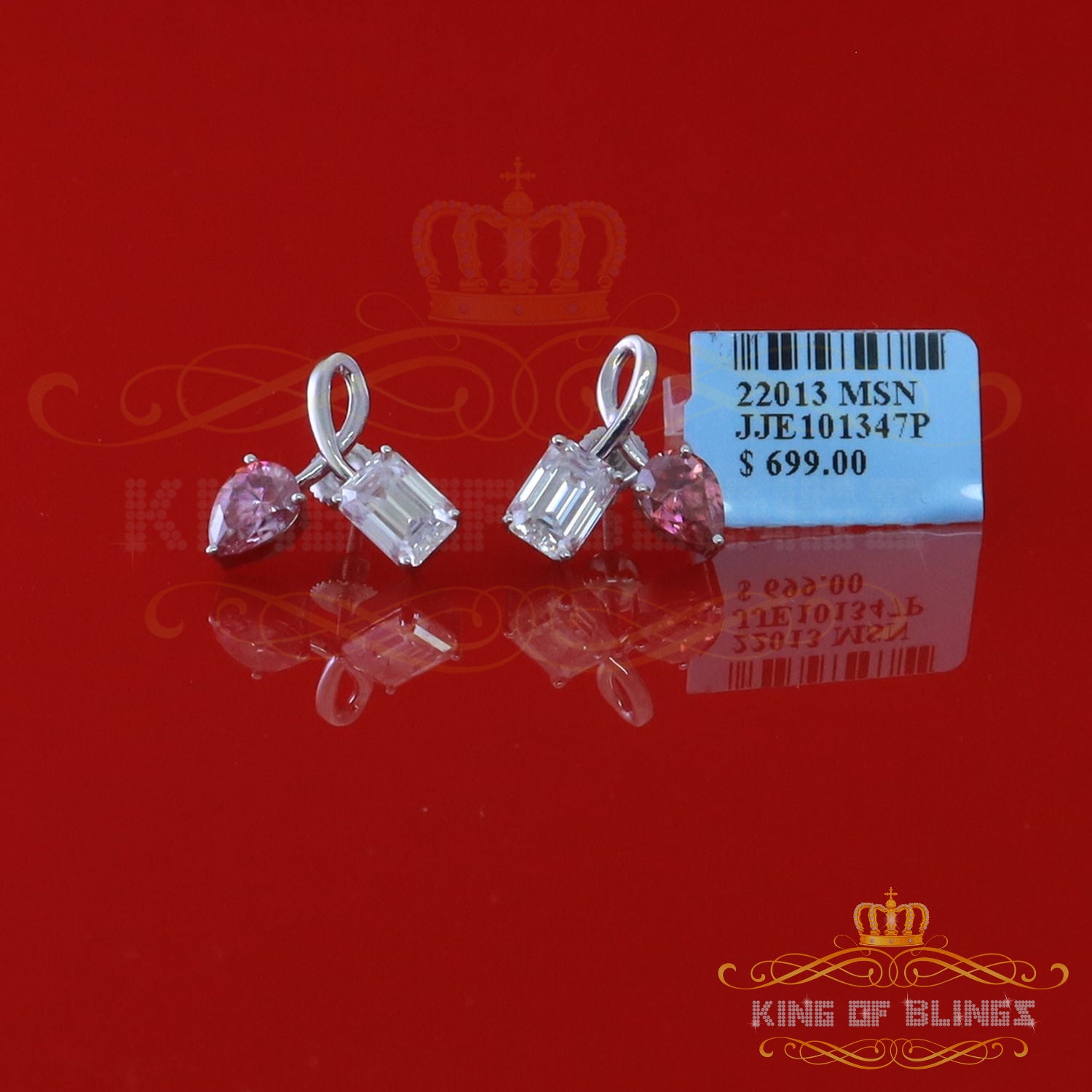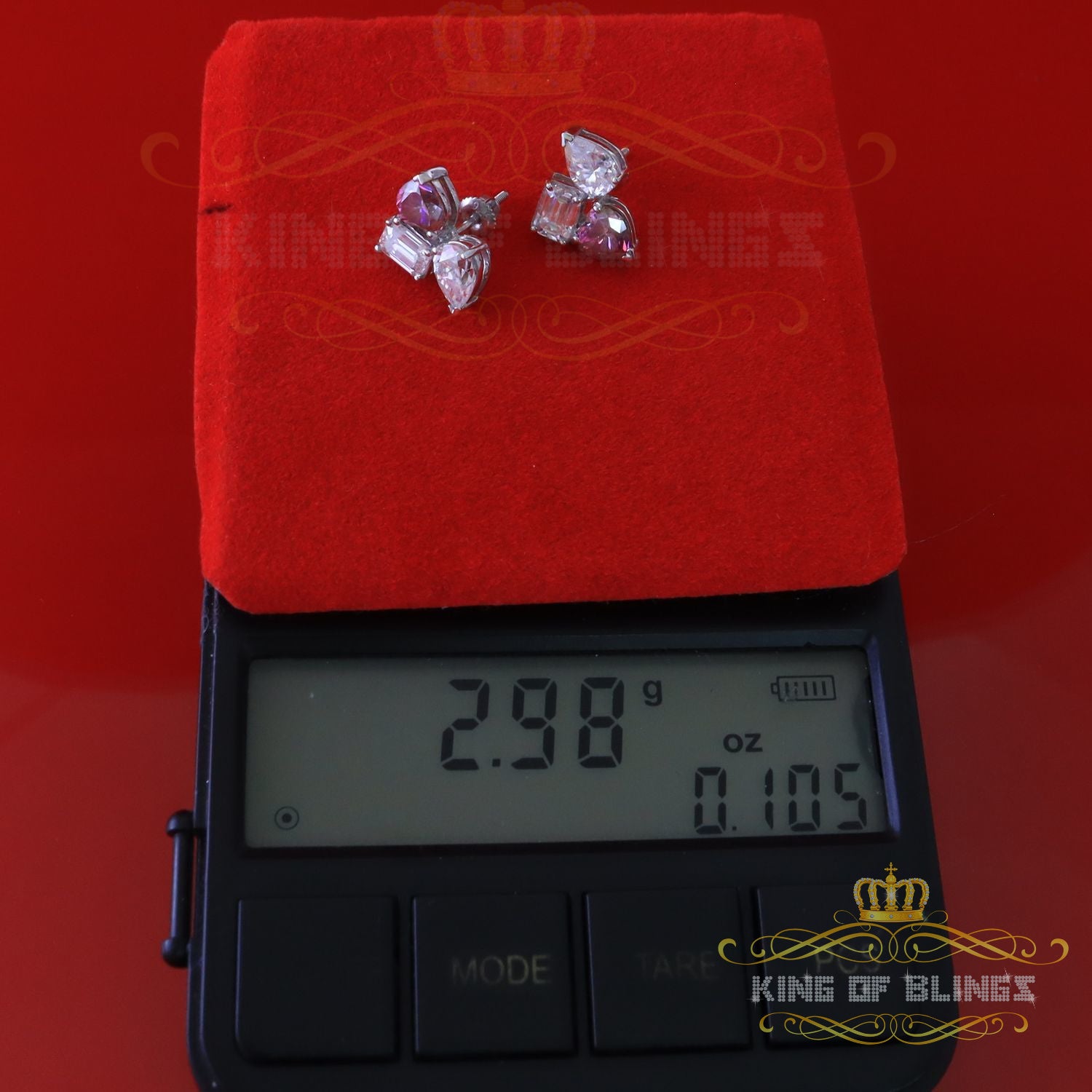 King of Bling's Women's 925 Silver White 3.50ct VVS 'D' Pink Moissanite Toi et Moi Stud Earrings
