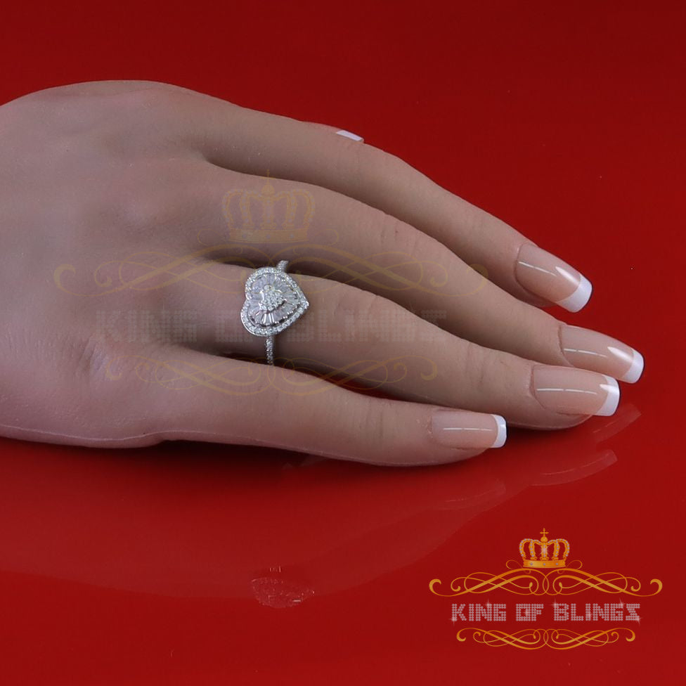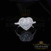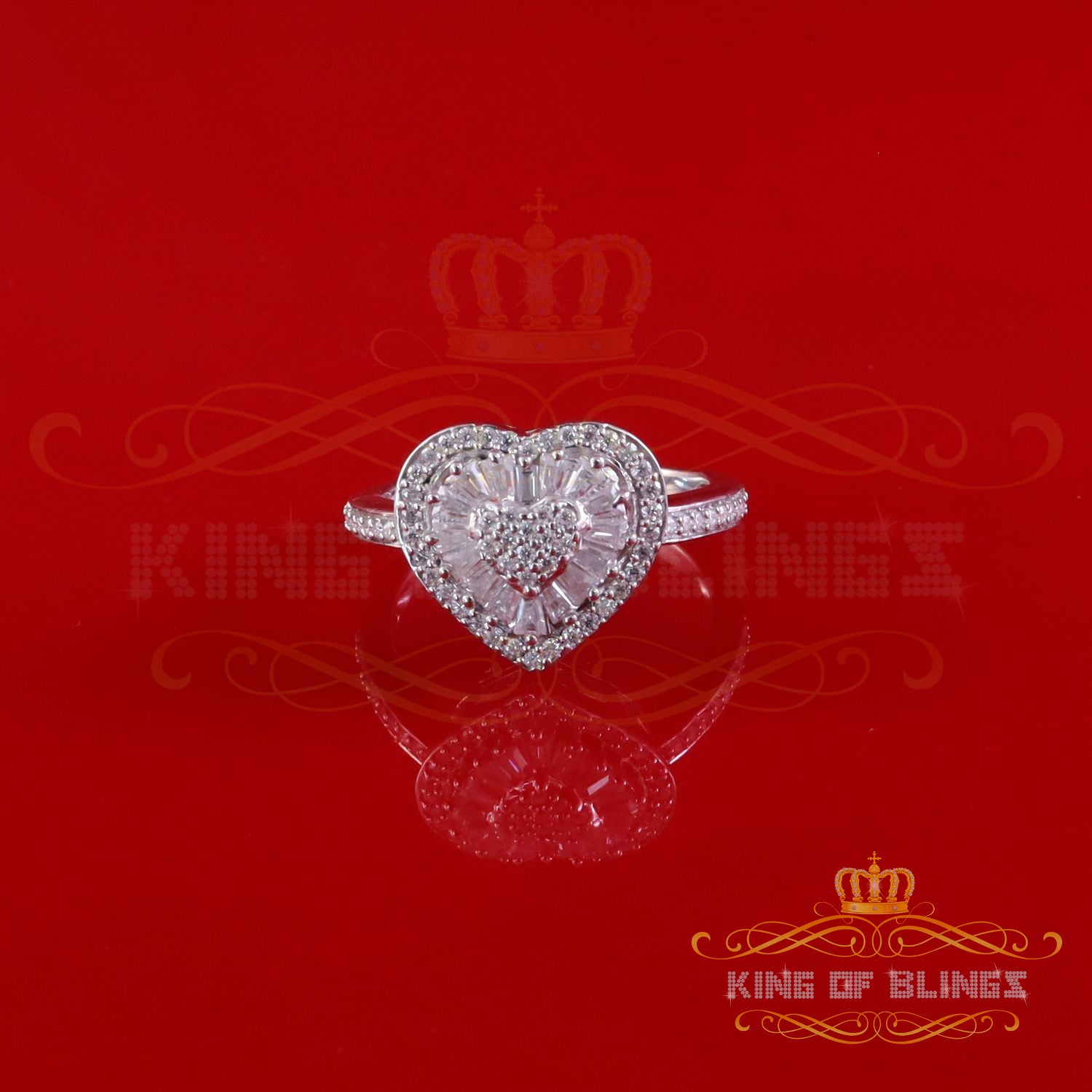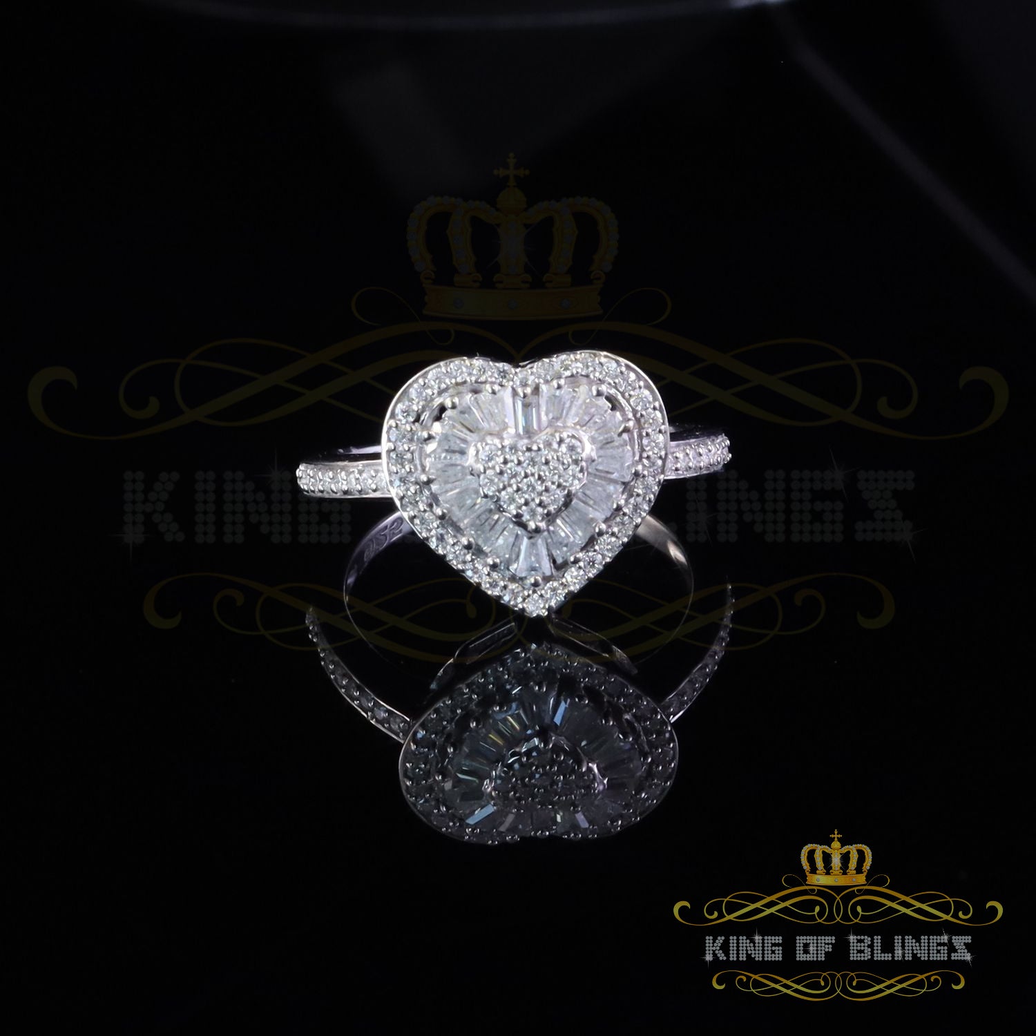 King of Bling's Womens 925 Sterling Silver White 1.00ct VVS 'D' Moissanite Heart Rings Size 7