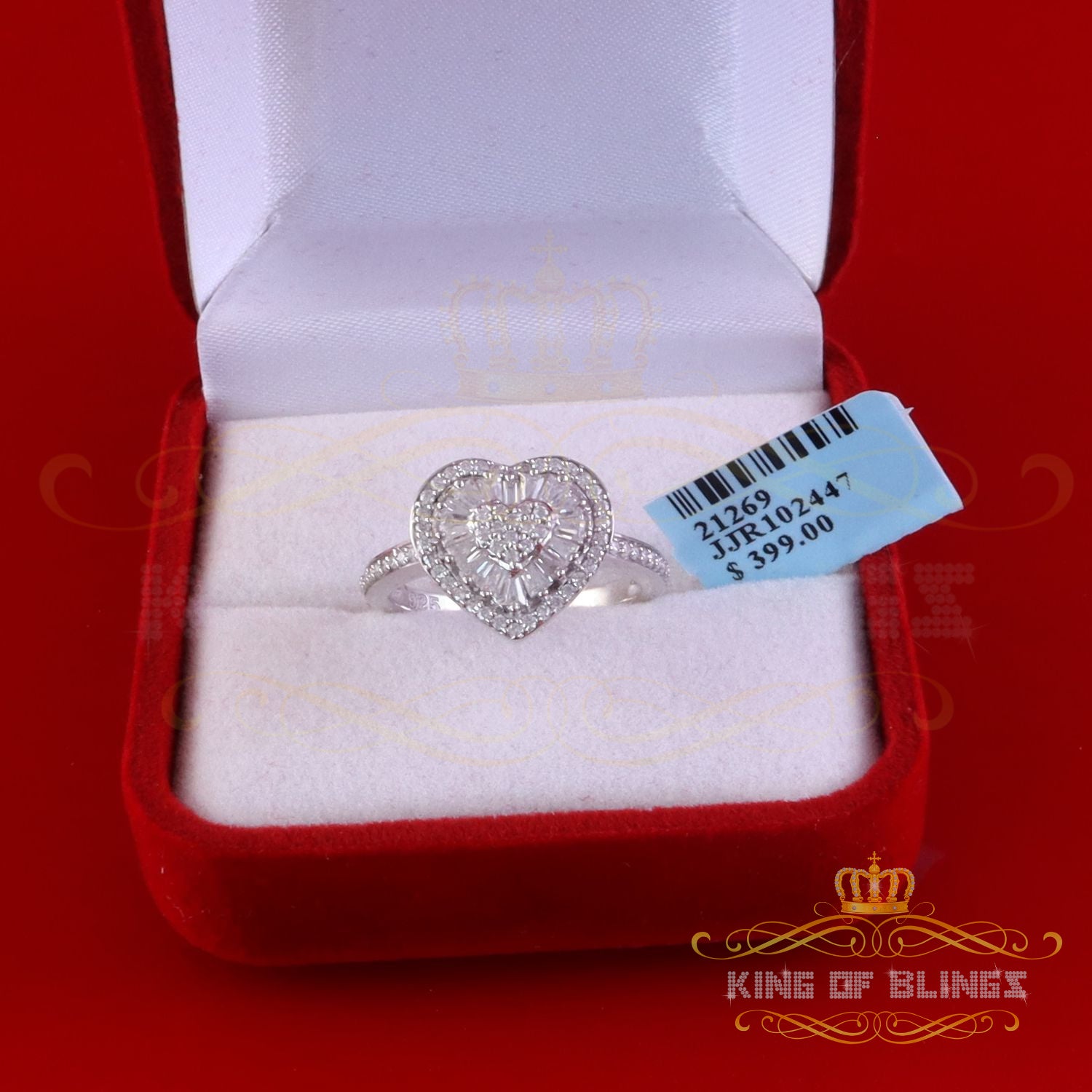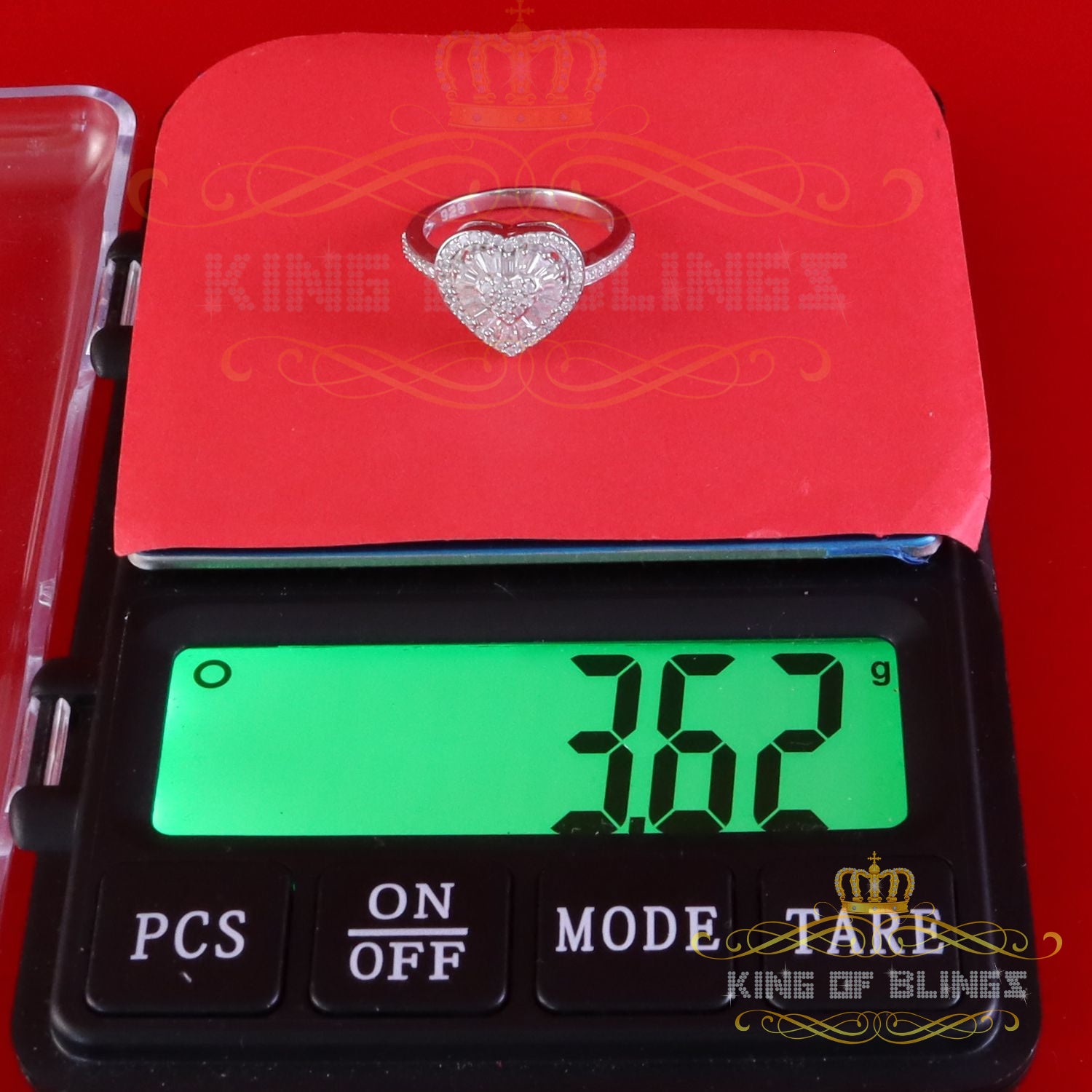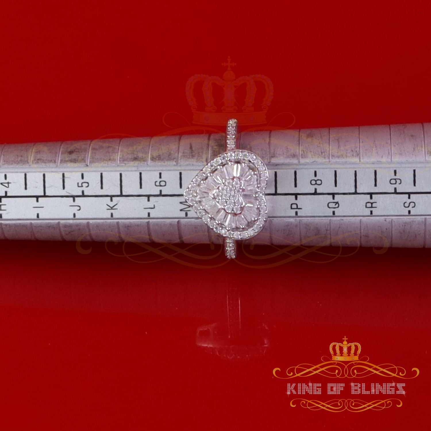 King of Bling's Womens 925 Sterling Silver White 1.00ct VVS 'D' Moissanite Heart Rings Size 7