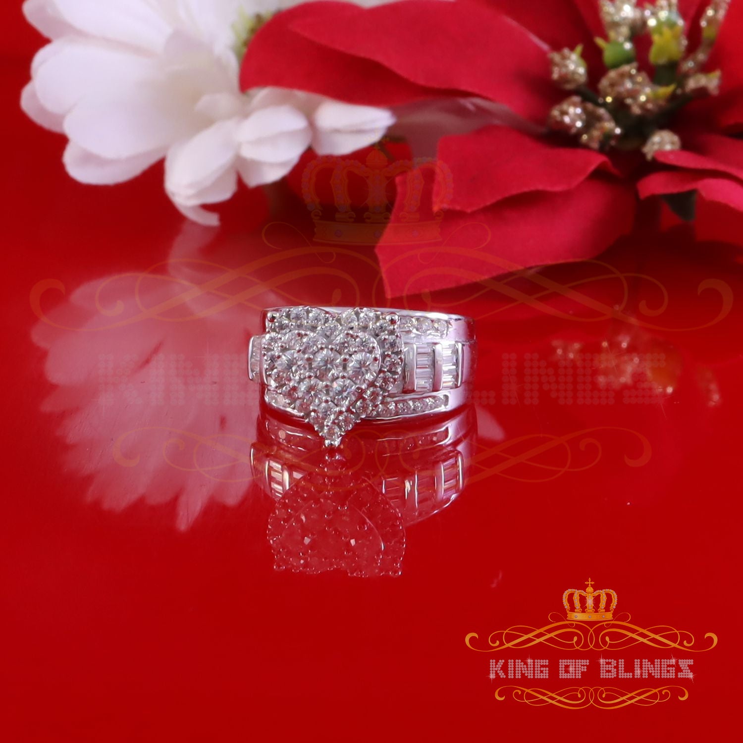 Introducing our exquisite Heart Ring Silver Moissanite Womens, a true testament to timeless elegance and captivating beauty. Crafted with care, this ring features a 925 sterling silver band that exudes sophistication and complements any attire flawlessly. These are the dazzling 7.43 gm and 1.00ct Moissanite, gracefully catching the light and mesmerizing onlookers.The moissanite's exceptional VVS clarity ensures a flawless appearance, while its 'D' color grade radiates brilliance, rivaling the finest diamonds. With Ring size 7, It is enhanced with a high polish finish. The ring gleams with a radiant glow, adding a touch of luxury to your style.