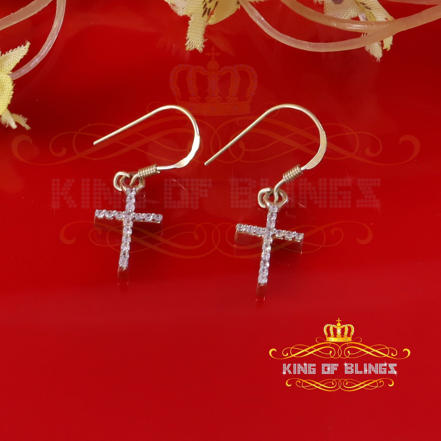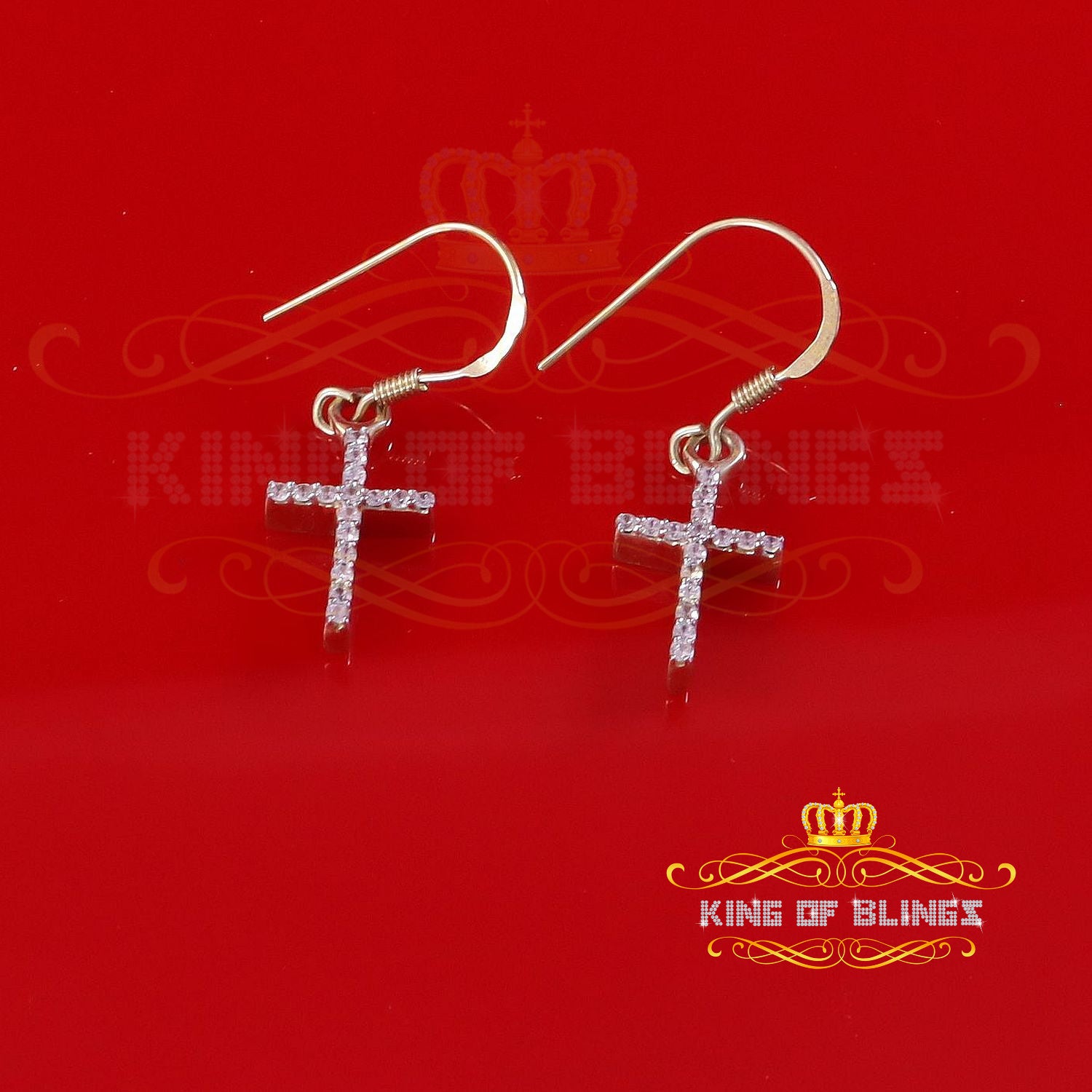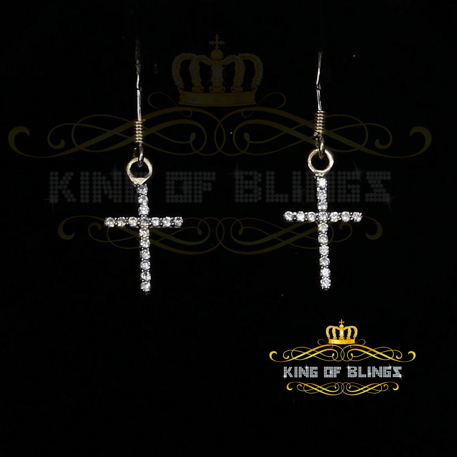 "King of Blings" brand stands behind the exceptional craftsmanship and top-notch materials, guaranteeing both quality and reliability. Unisex in design, these stud earrings appeal to all, celebrating the beauty of versatility and transcending gender boundaries. With a high-polish finish, they exude an extra touch of glamour, perfect for elevating any outfit and stealing the spotlight at any event. There's no better way to add a touch of sophistication and allure to your life than with these mesmerizing Dangling cross Stud Cubic Zirconia stud earrings. Be ready to dazzle and impress with their unmatched sparkle and timelessly chic appeal. Elevate your style and embrace the luxury of the "King of Blings" brand – a decision you'll cherish forever.