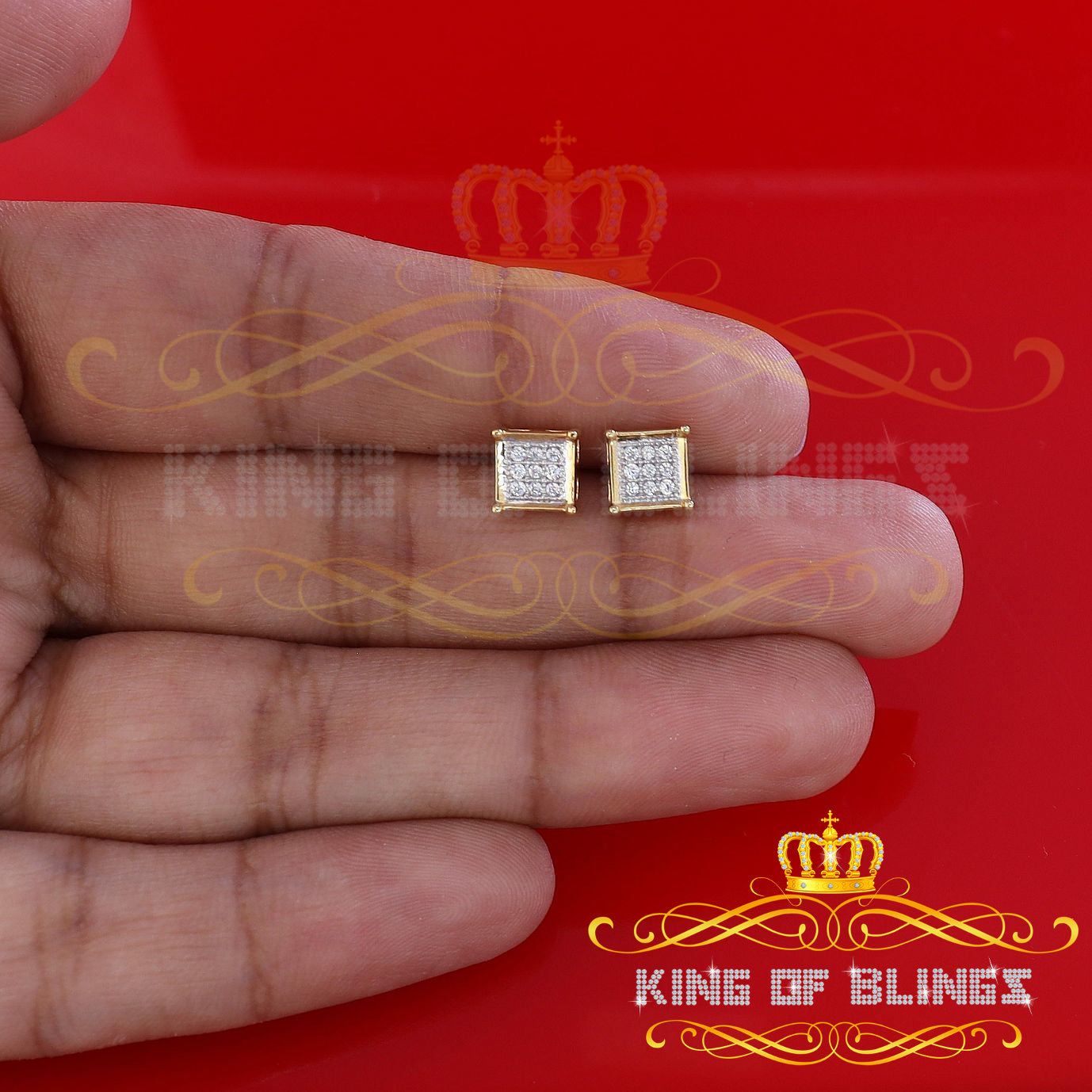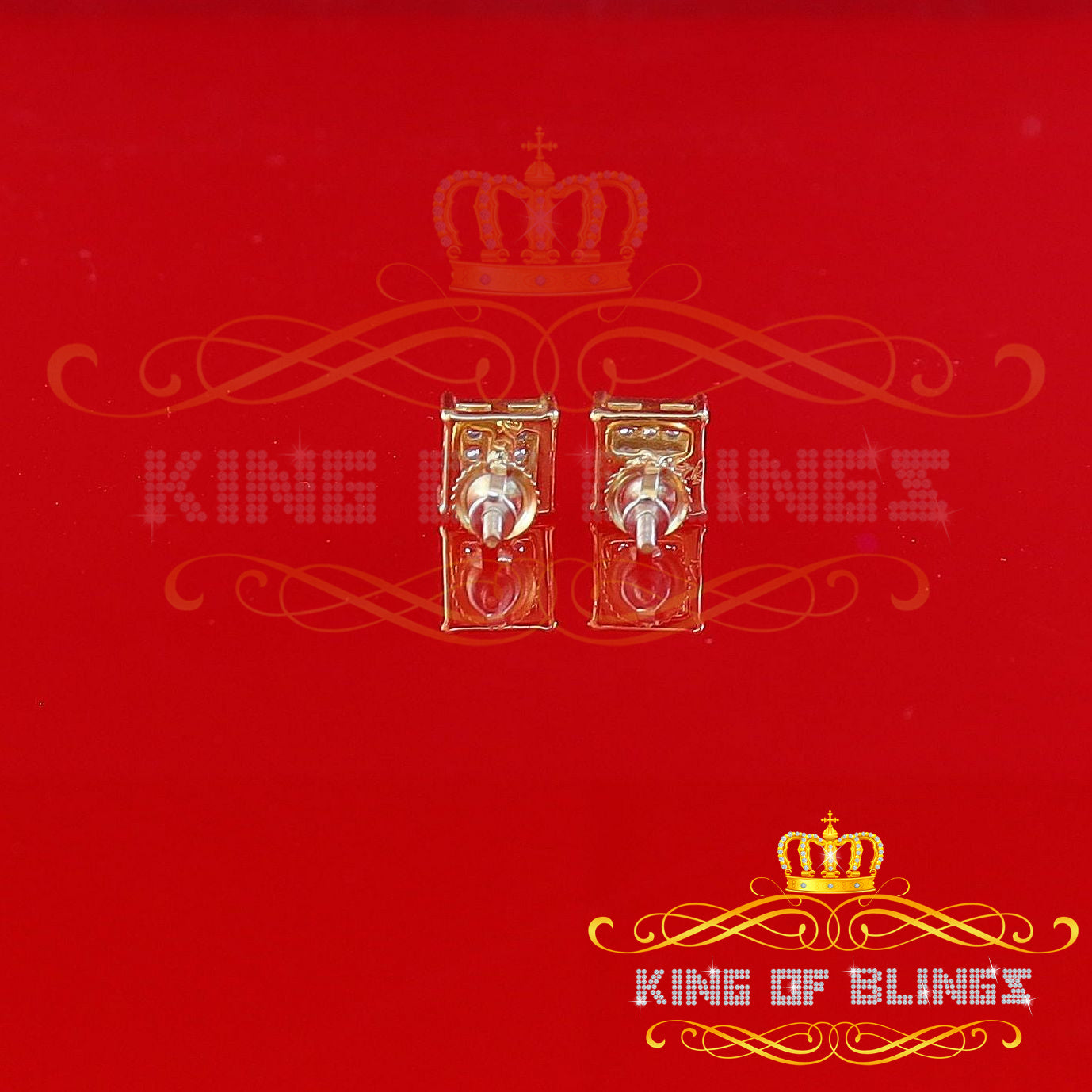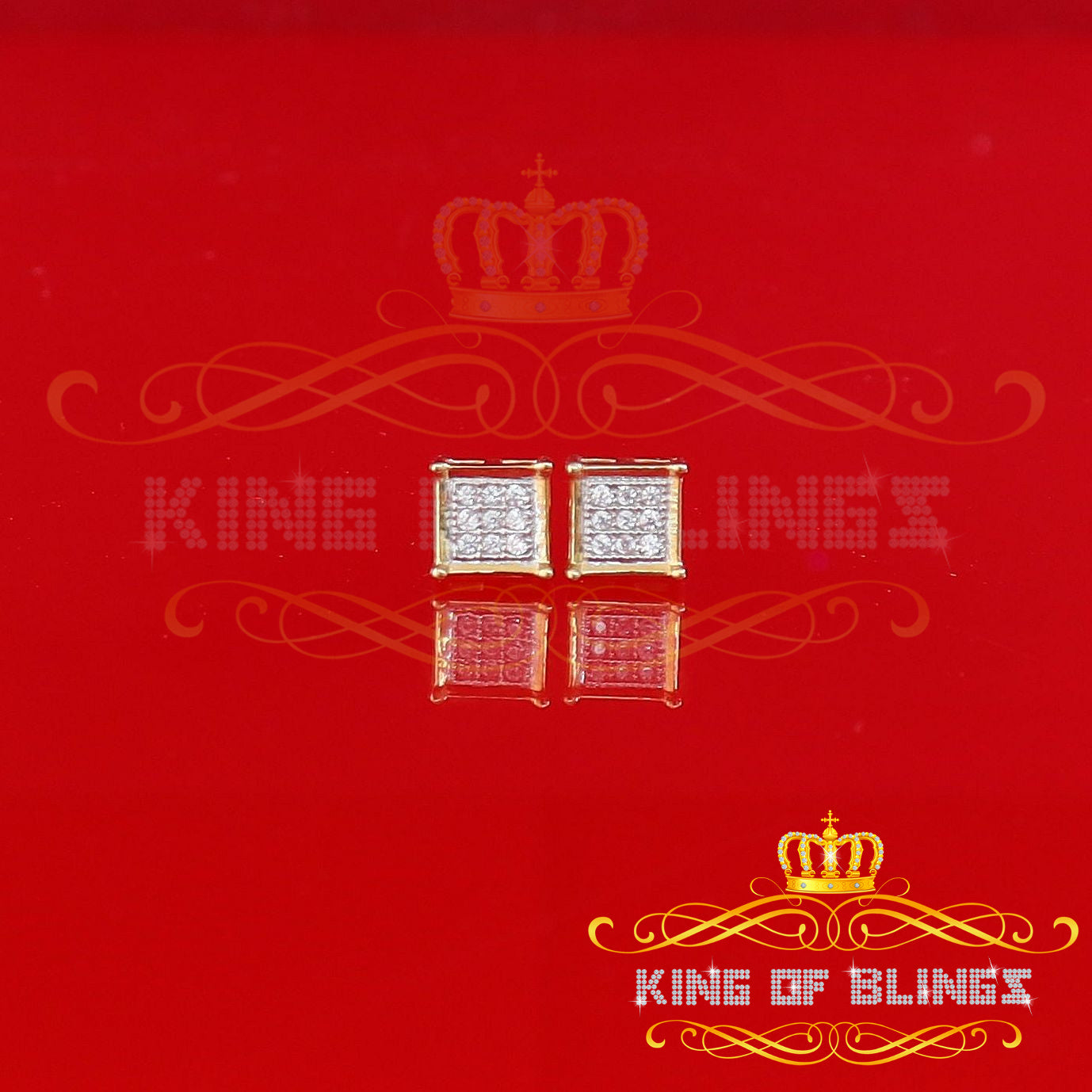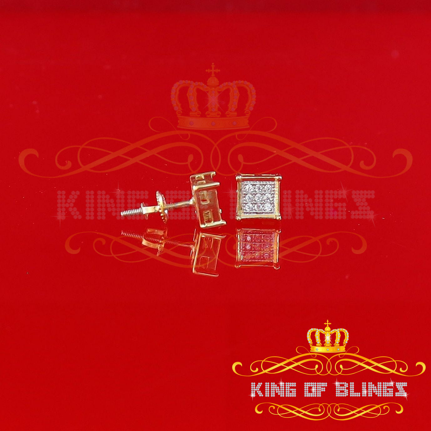 King of Bling's Yellow 925 Silver 0.14ct Men's & Women's Elegant Cubic Zirconia Square Earrings