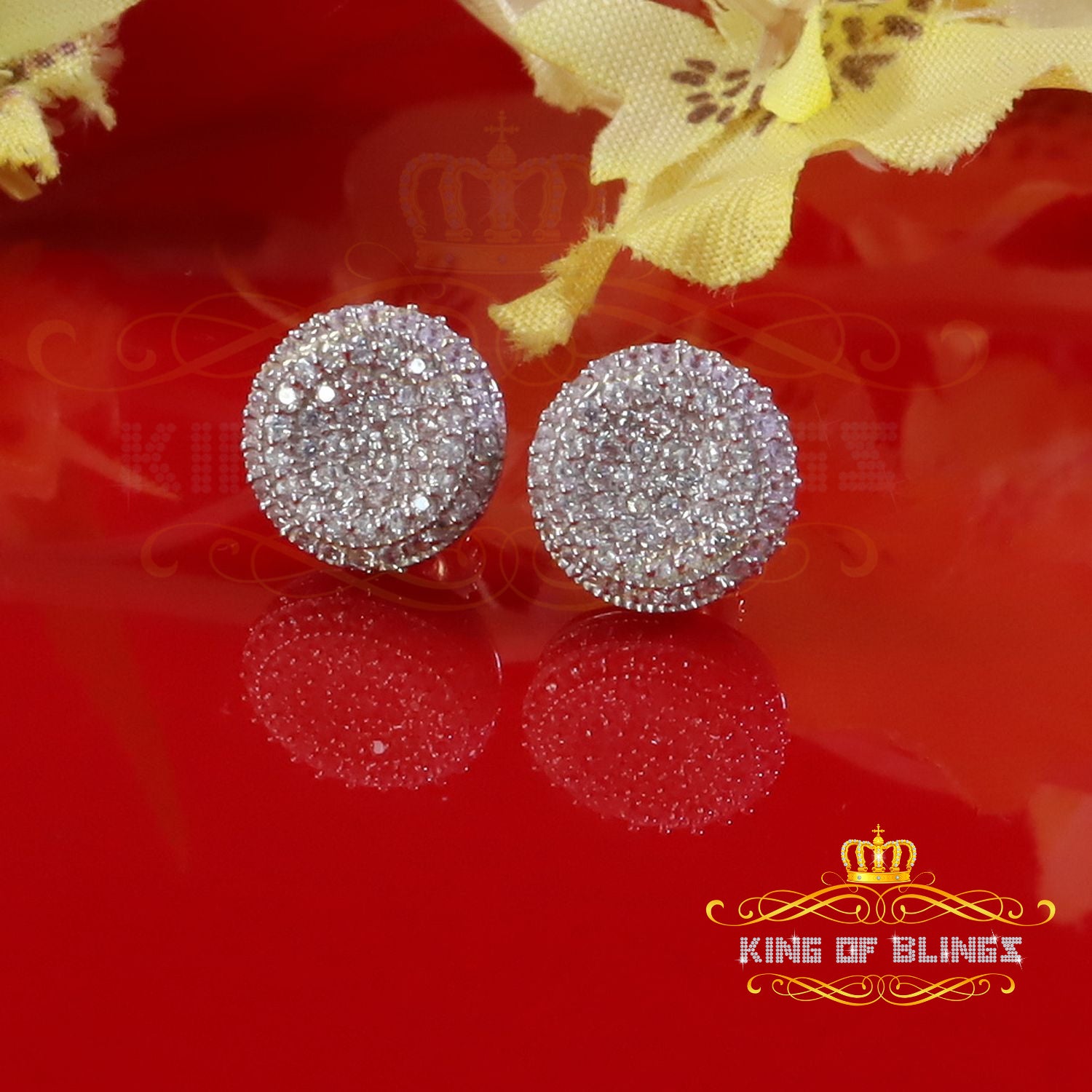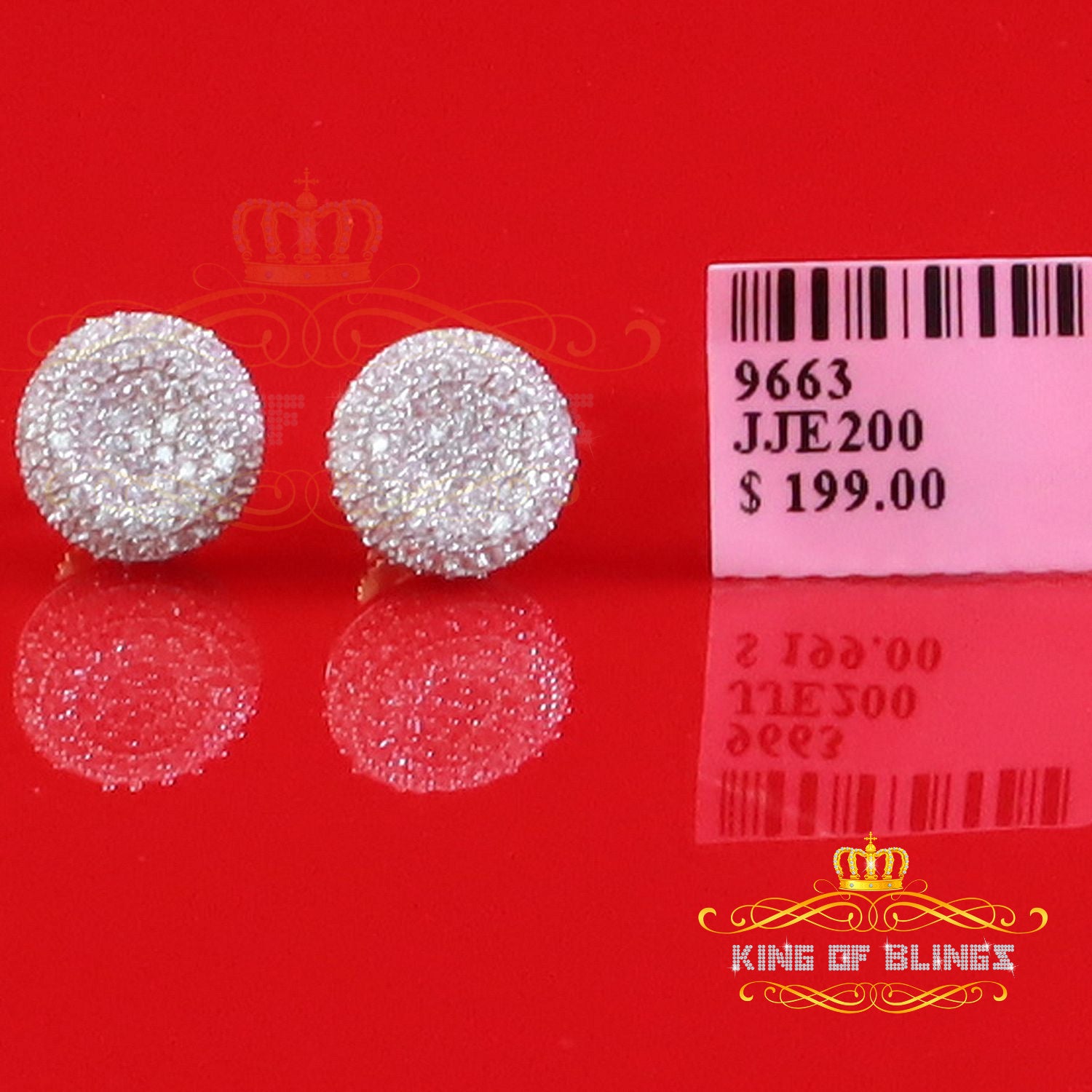 King of Bling's Yellow 925 Silver Aretes Para Hombre Women 1.74ct Cubic Zirconia Round Earrings