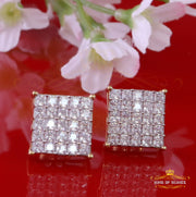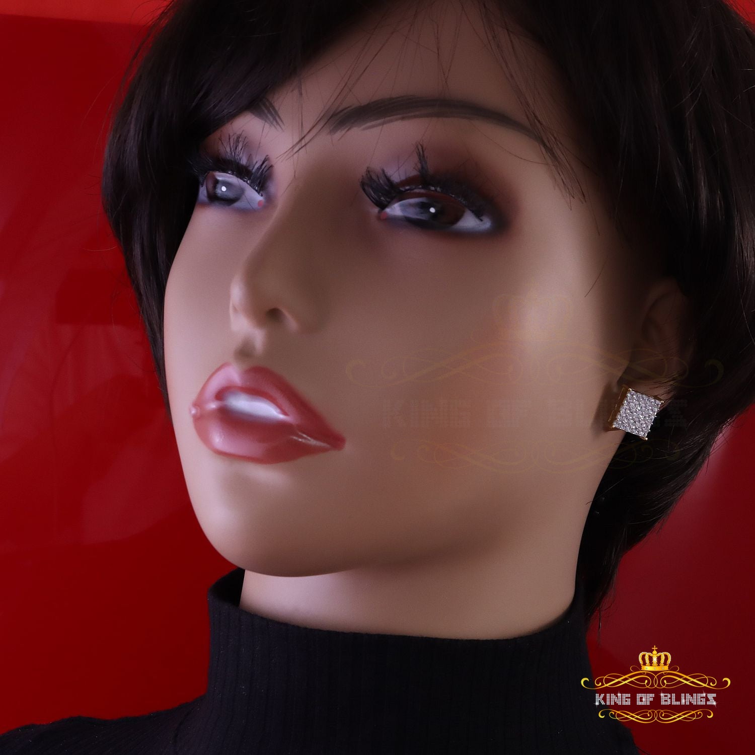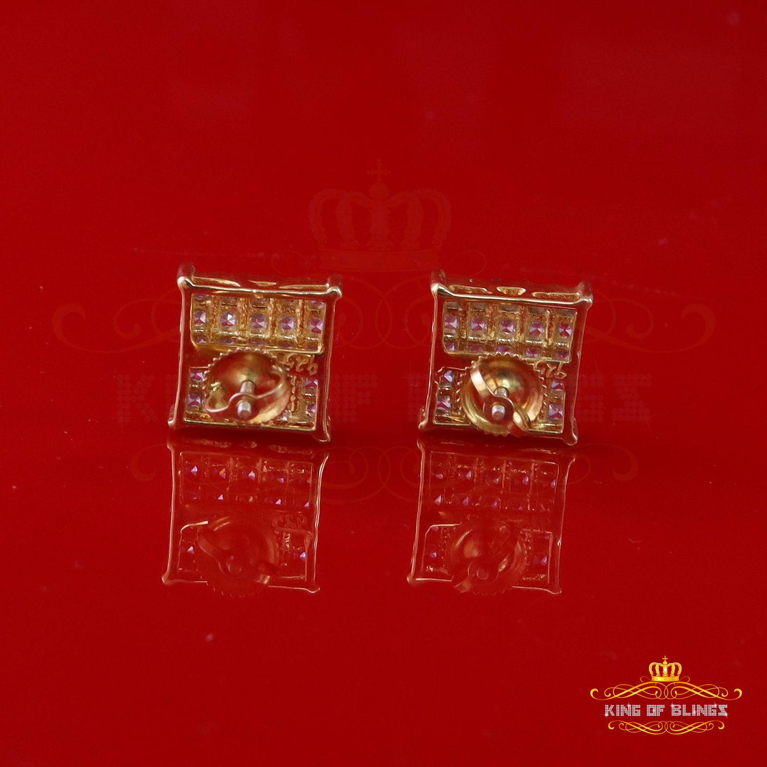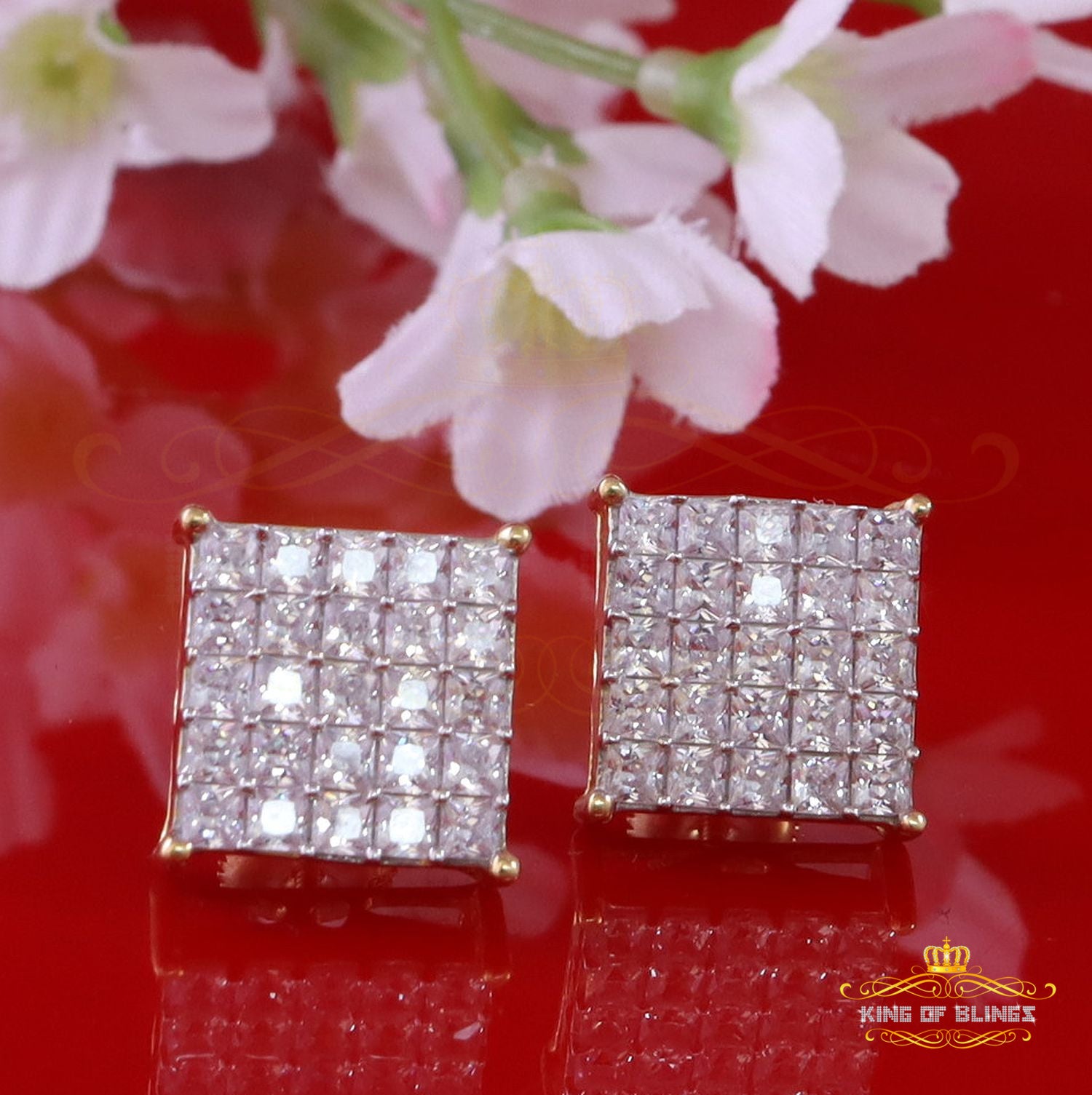 King of Bling's Yellow 925 Silver Screw Back 2.25ct Cubic Zirconia Women Hip Hop Square Earrings