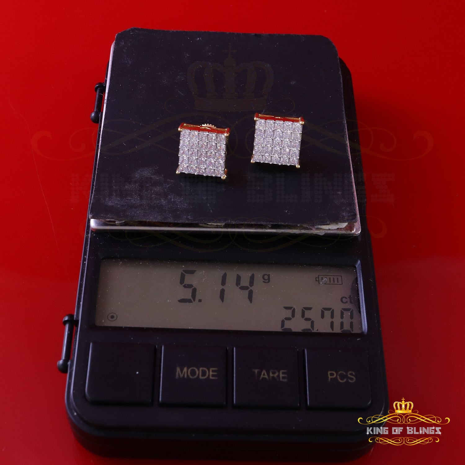 Step into a world of King Of Blings dazzling elegance and allure with our exclusive collection of Square Cubic Zirconia stud earrings featuring secure screw backs. Indulge yourself or surprise a loved one with these exquisite earrings crafted from premium 925 sterling silver with metal weight 5.51gm and CZ weight of 2.25ct, boasting a lustrous Yellow metal color that exudes sophistication. The real show-stoppers, however, are the meticulously chosen AAA Grade and 'D' Color Cubic Zircon stones. Radiating luxury and brilliance, these stones are carefully graded for clarity and color, ensuring a mesmerizing sparkle that rivals even the most precious diamonds.