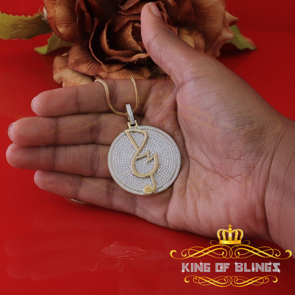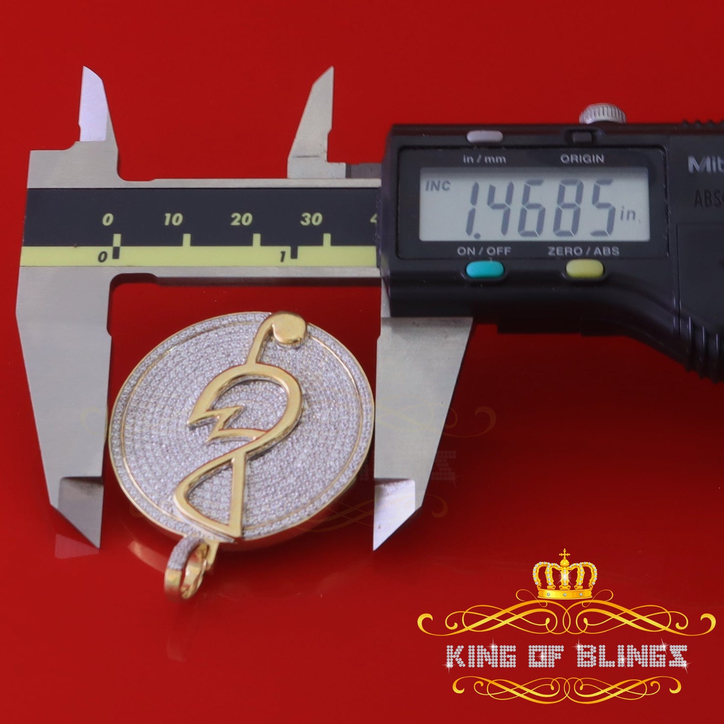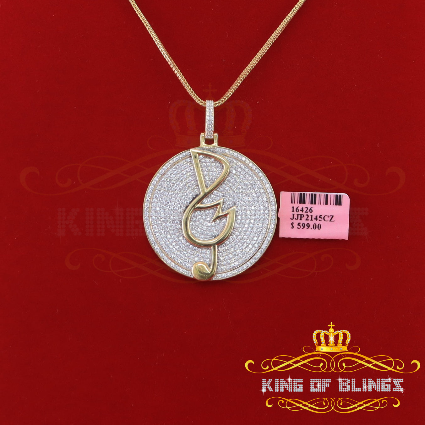 King Of Bling's Yellow 925 Sterling Silver Circle Music Sign Pendant with 3.74ct Cubic Zirconia