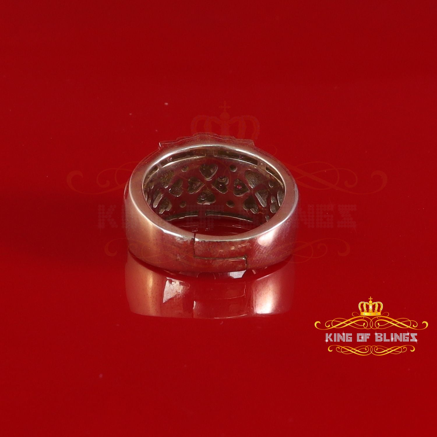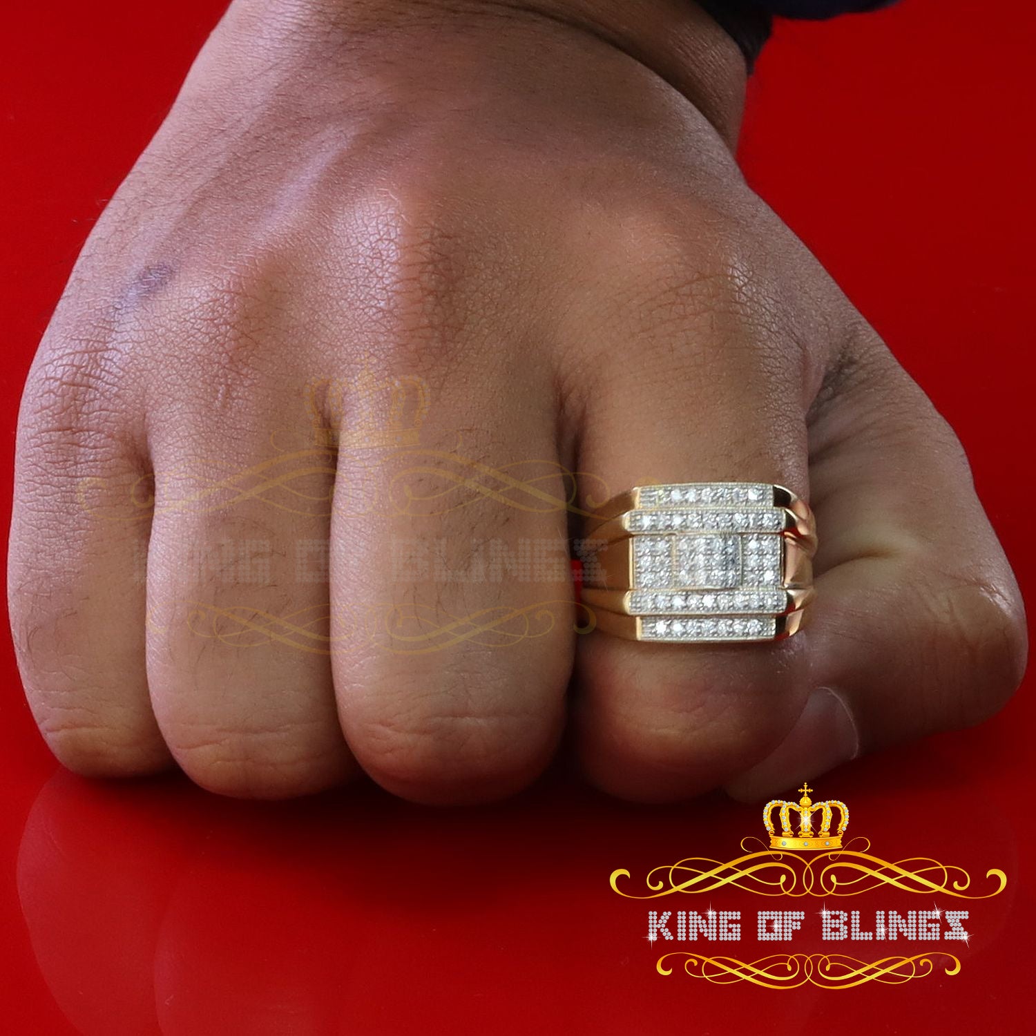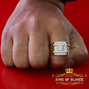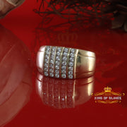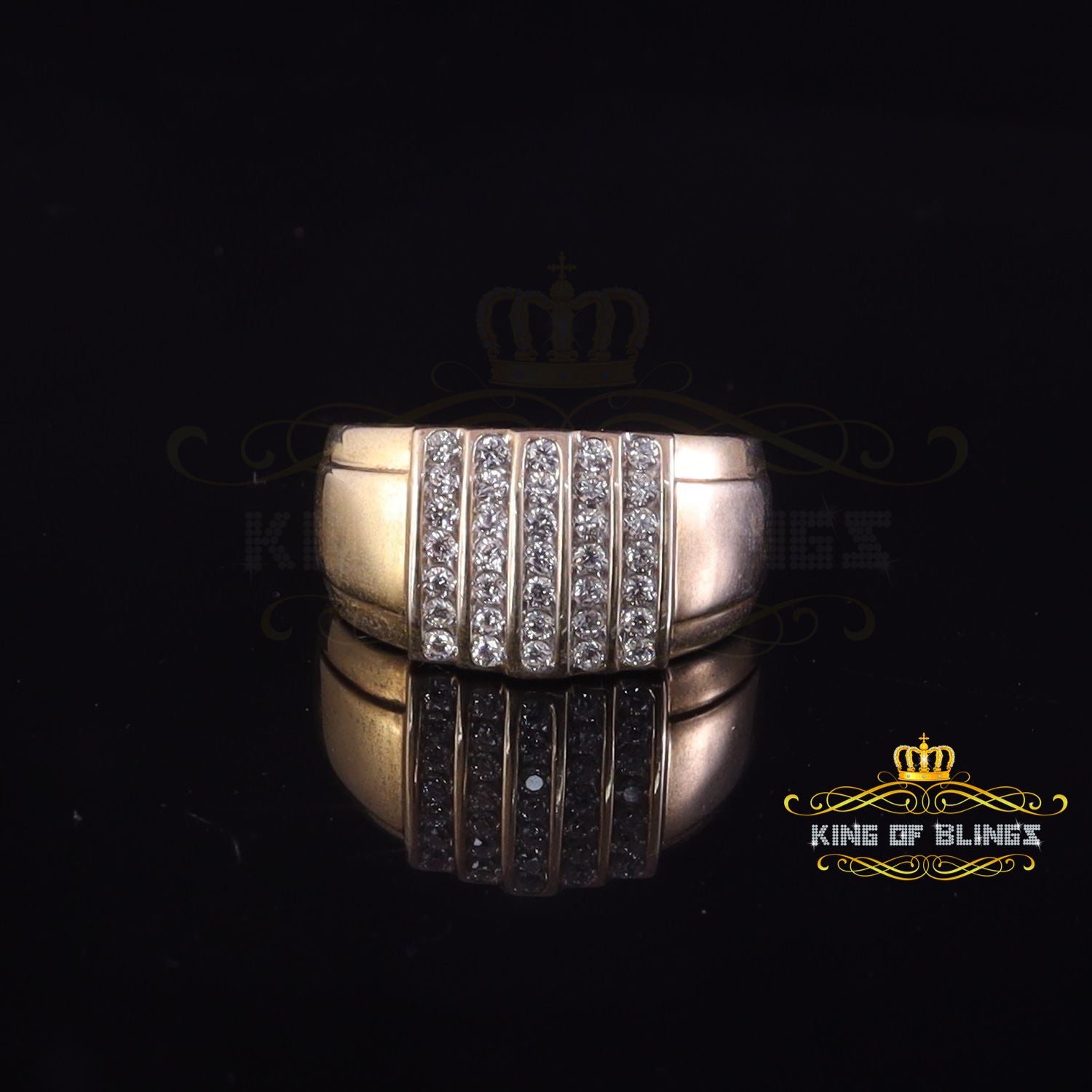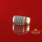 King Of Bling's Yellow Silver Rhodium Plated CZ 1.40ct Wide Band Men Adjustable Ring SZ 8 to 10