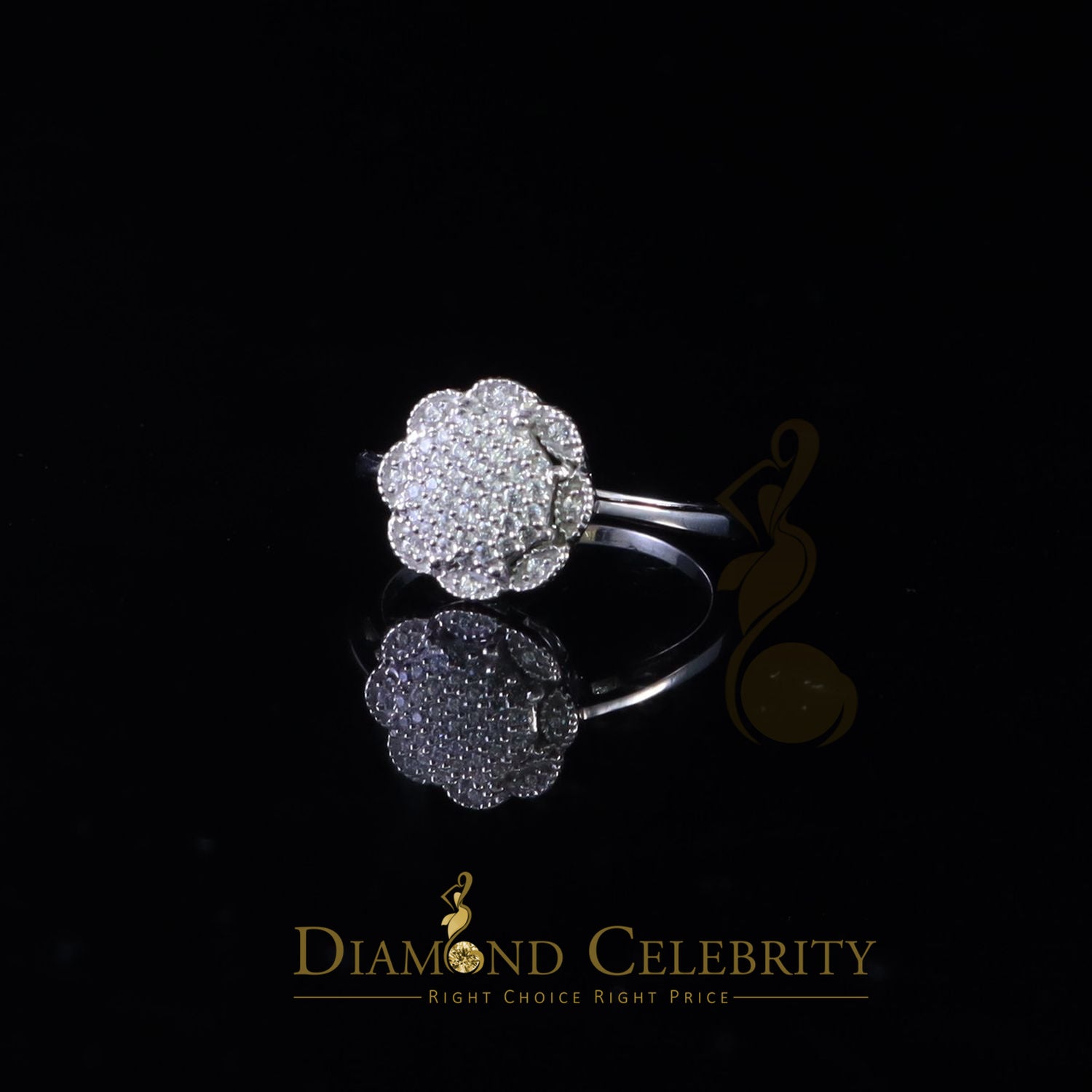 King Of Bling's0.49ct Cubic Zirconia Sterling White Silver Flower Engagement Womens Ring Size 7