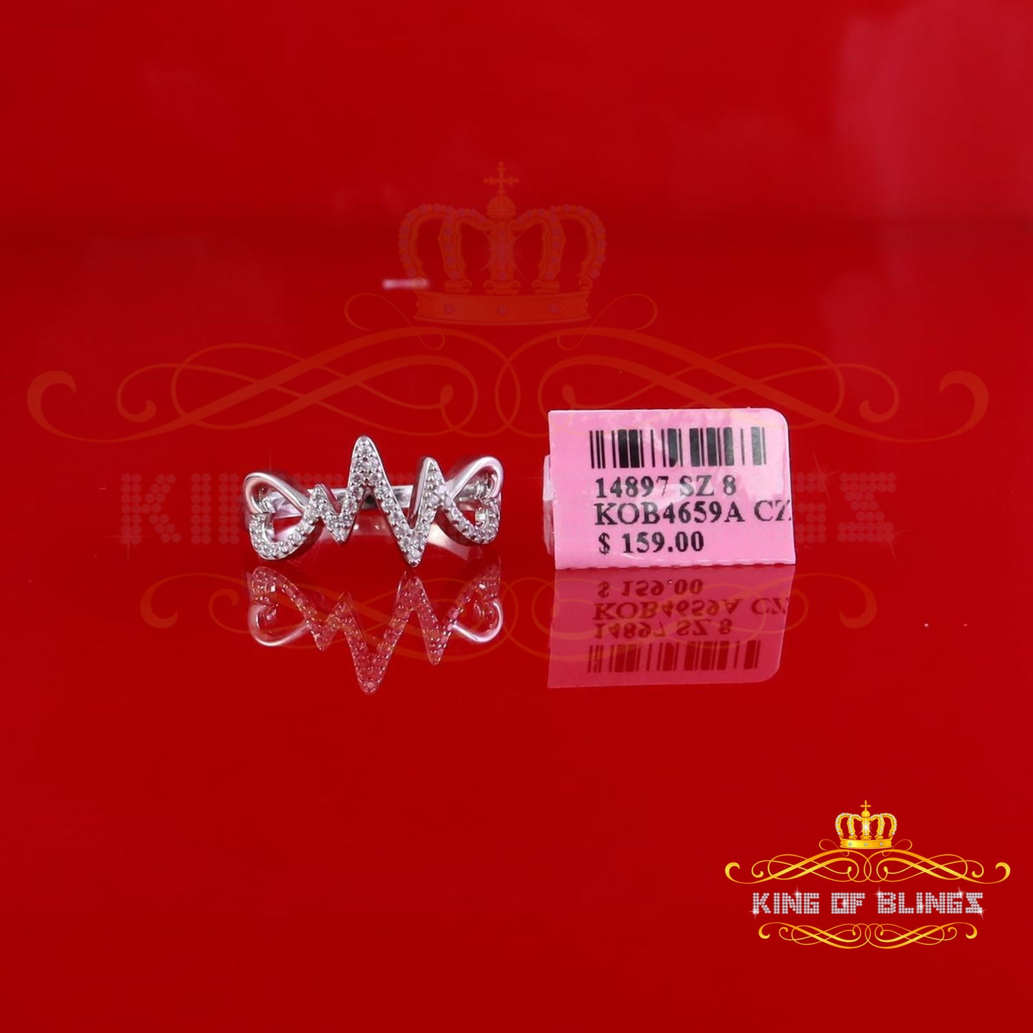 King Of Bling's0.50ct Cubic Zirconia White Silver Set Women's Hearts Ring Size 8.5