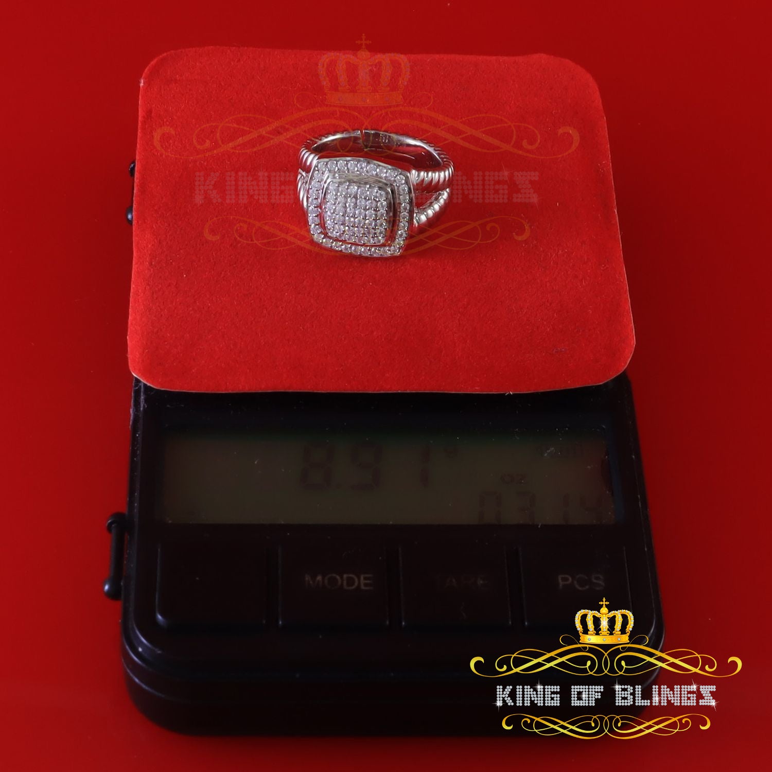 King Of Bling's1.33ct White Silver Square Cubic Zirconia Womens Adjustable Ring From SZ 8 to 10