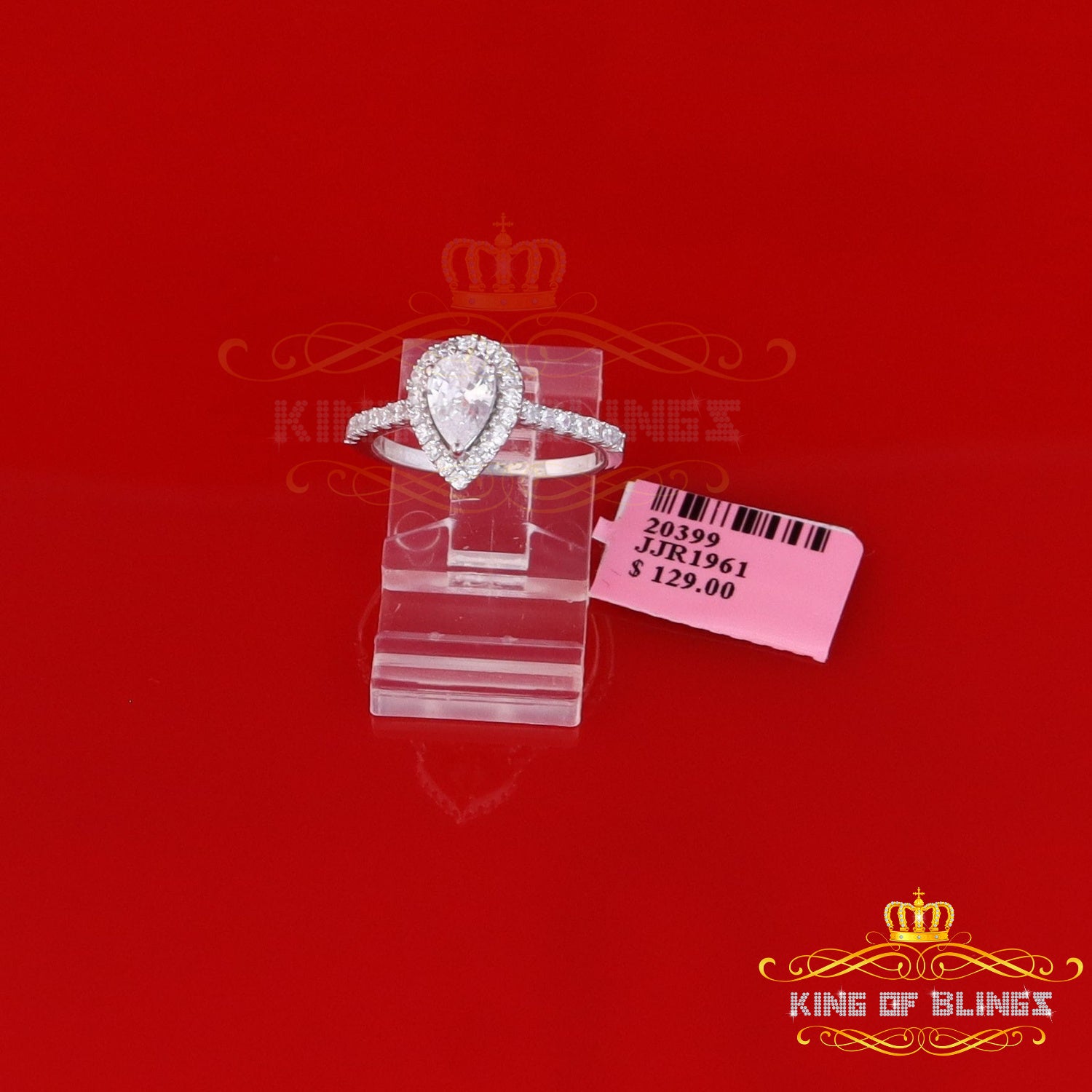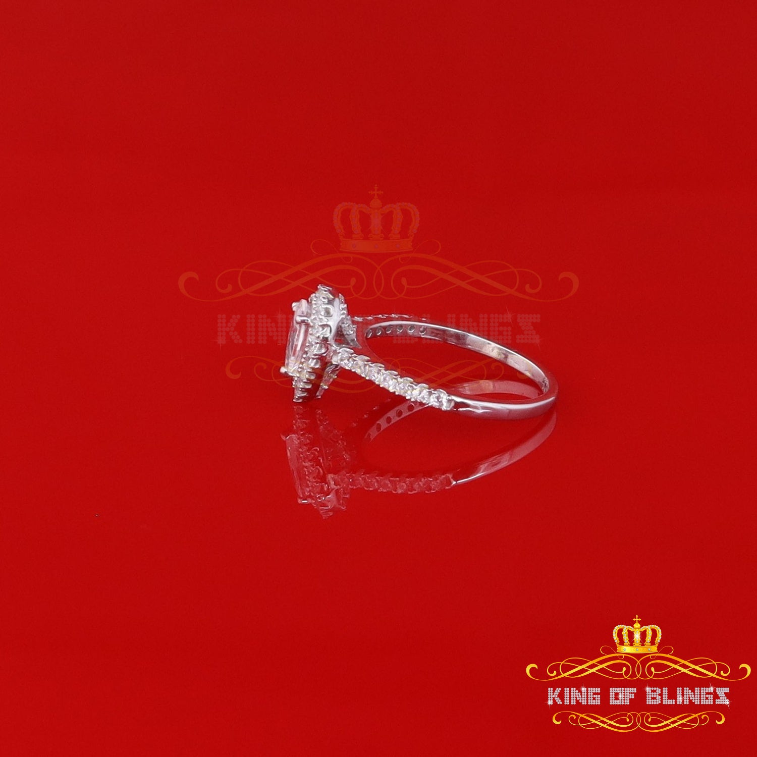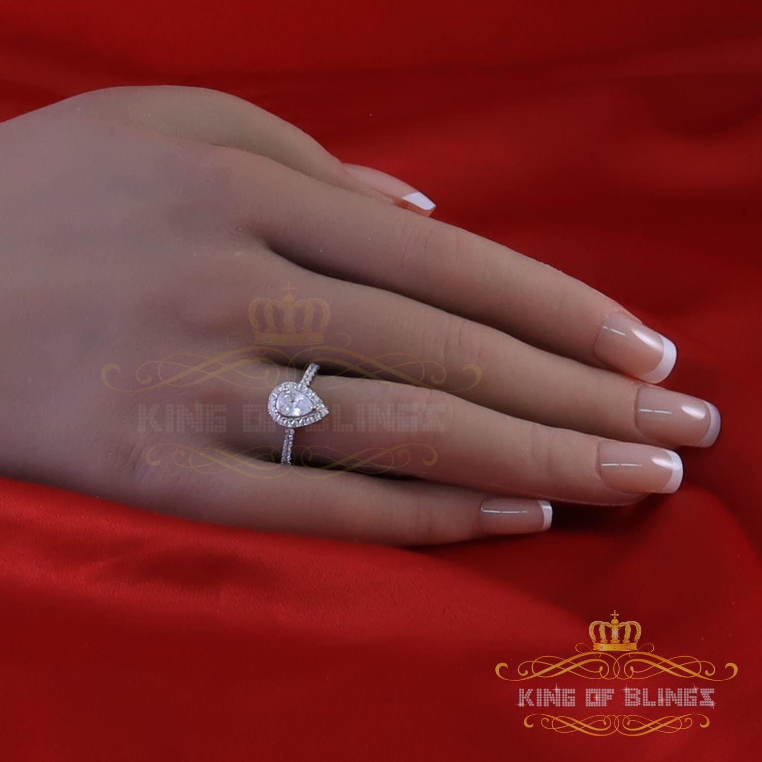 King Of Bling's1.72ct Cubic Zirconia White Silver Pear Cut Halo Wedding Womens Ring Size 7