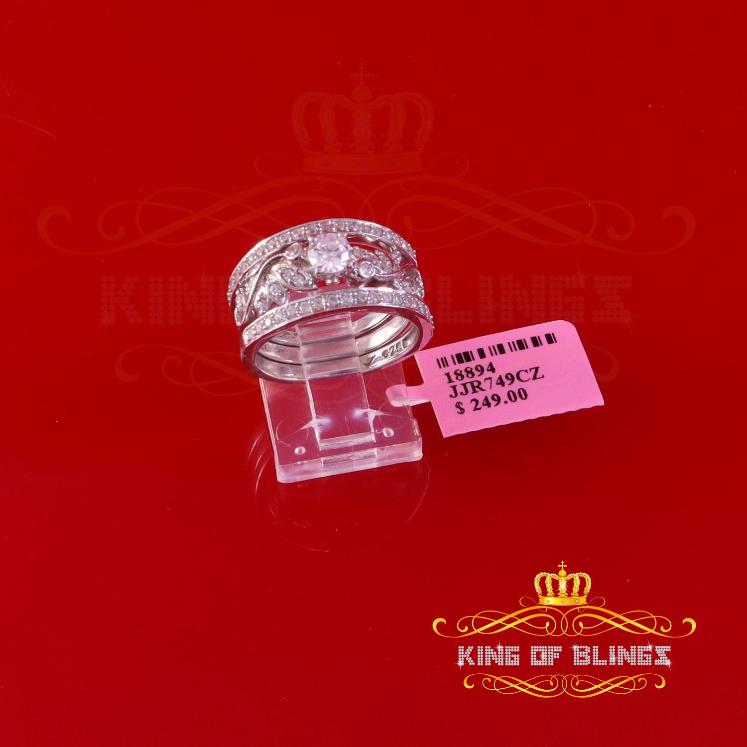 King Of Bling's2.25ct Cubic Zirconia White 925 Sterling Silver Women 3PC Bridal Ring Size 7