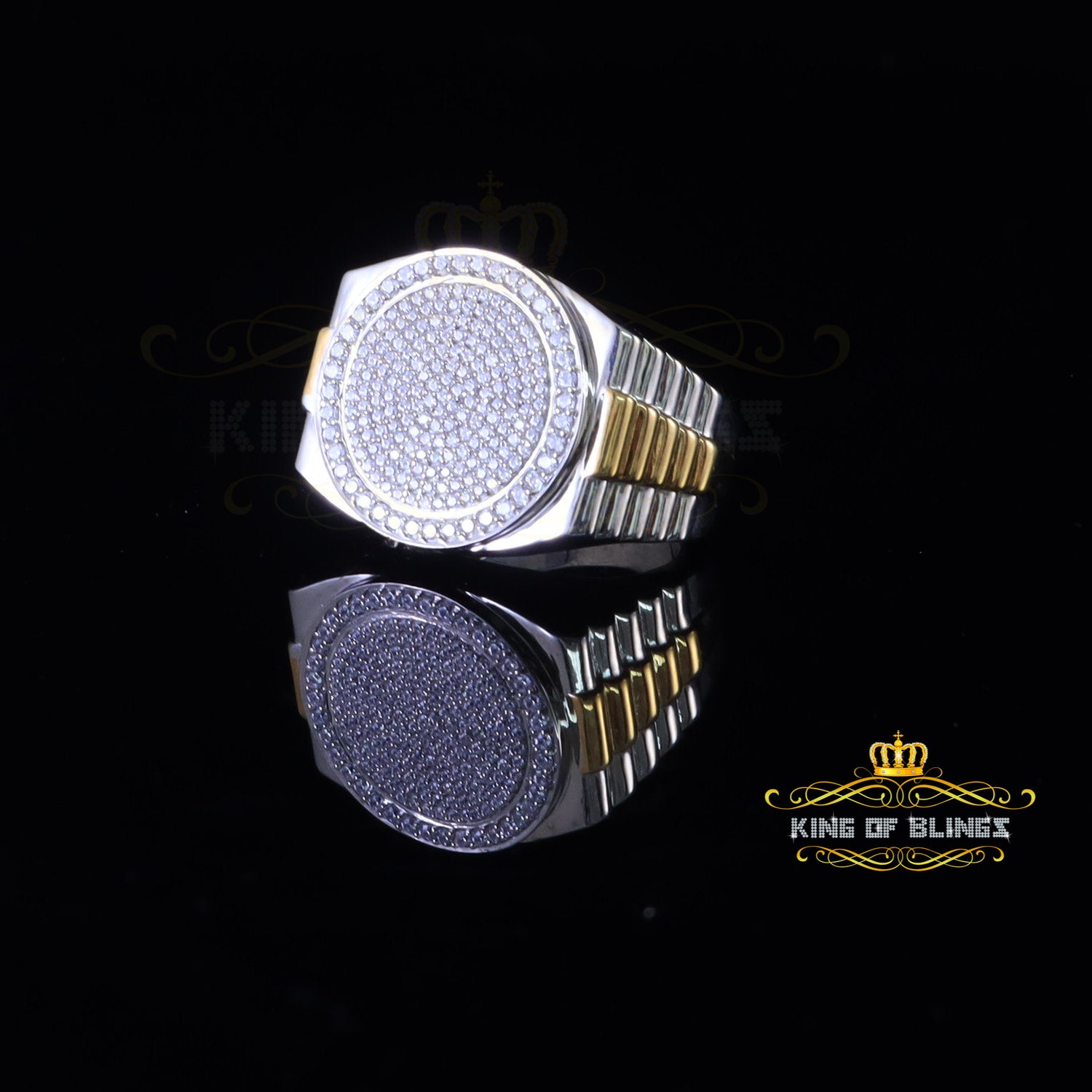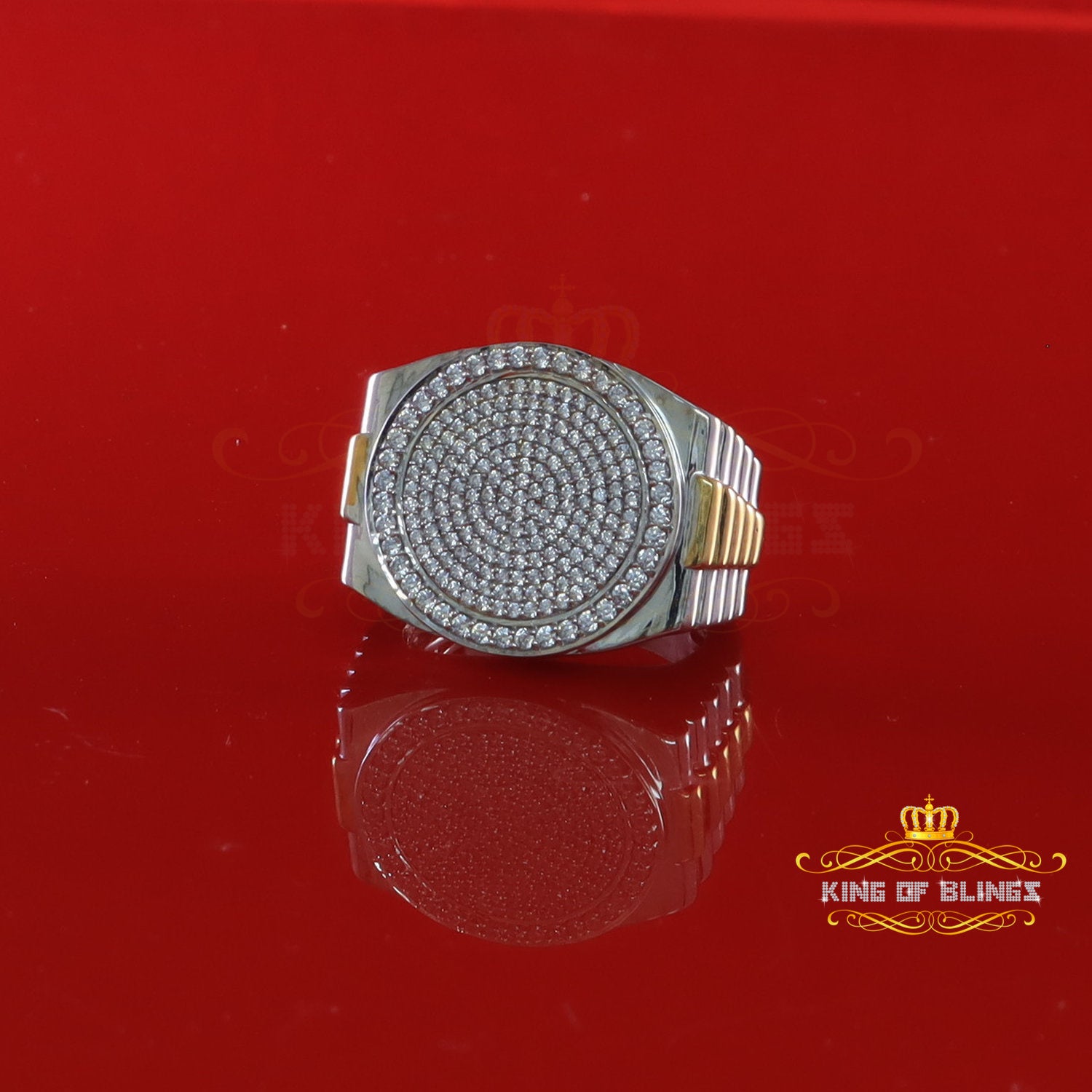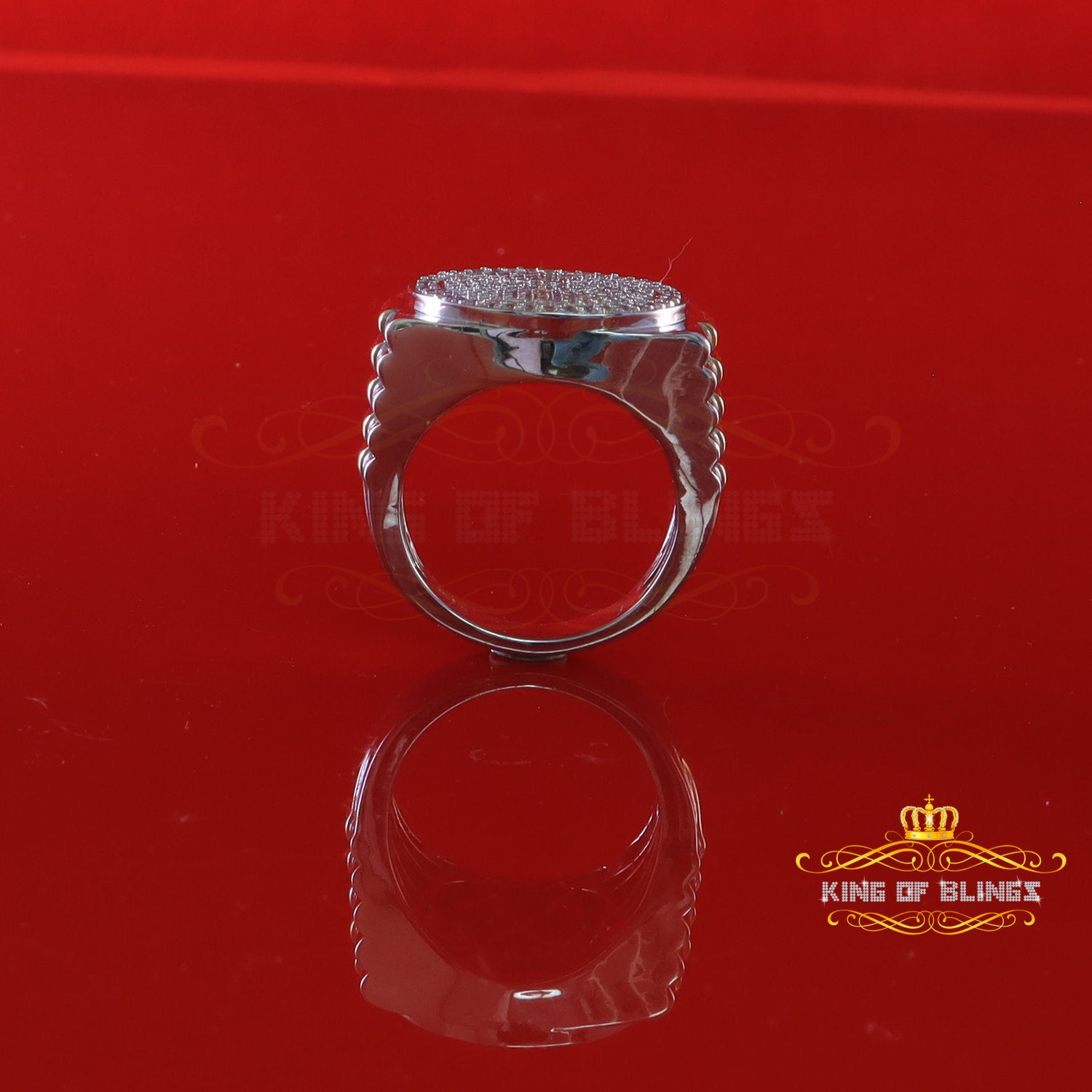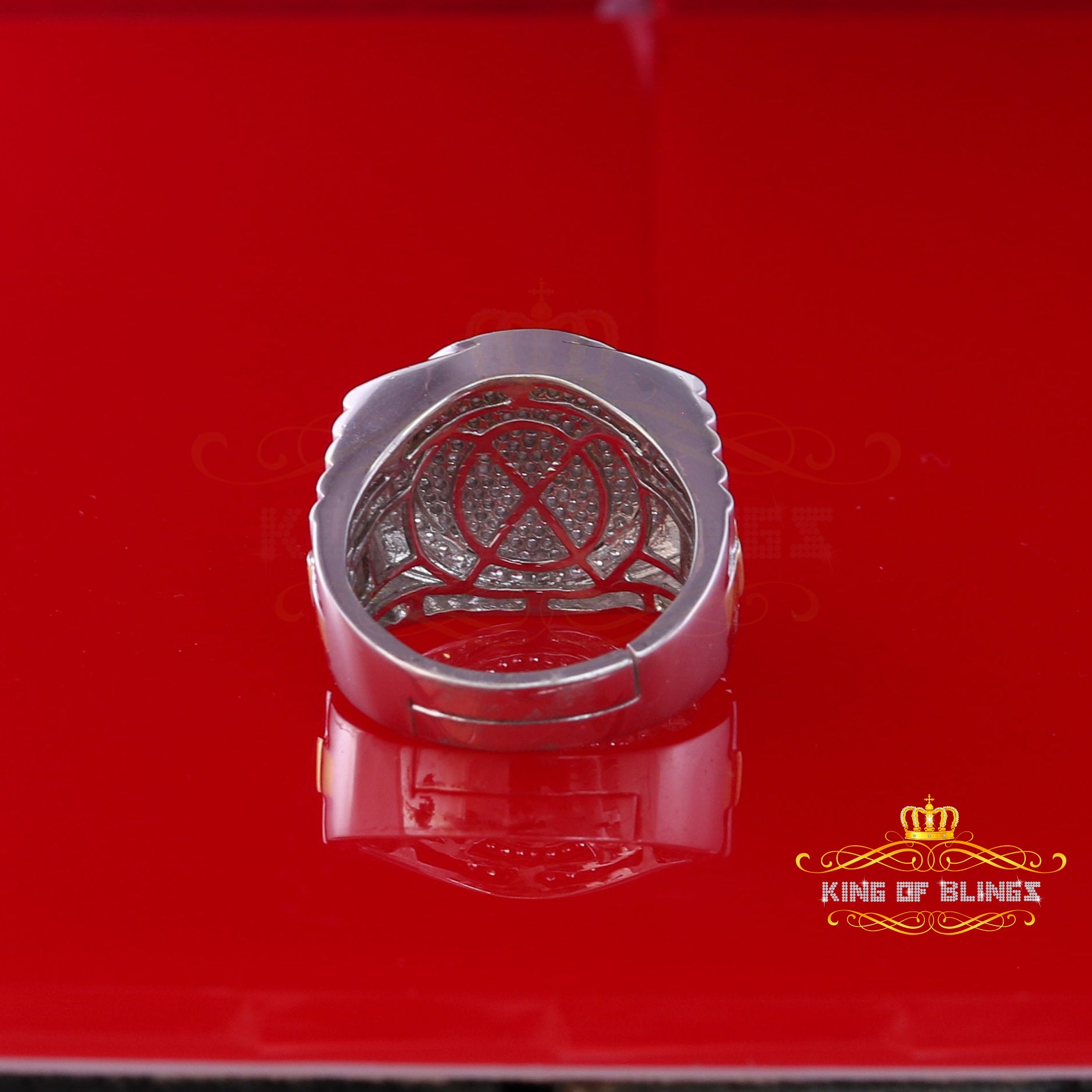 King Of Bling's925 silver Jewelry White 2.50CT CZ Wide Round Mens Adjustable Ring Size 11 to 13