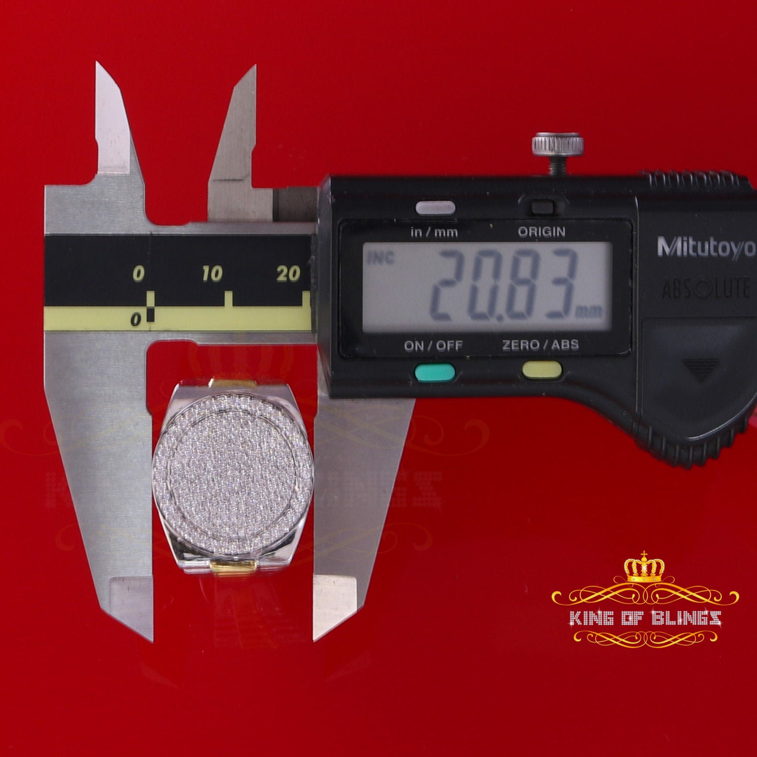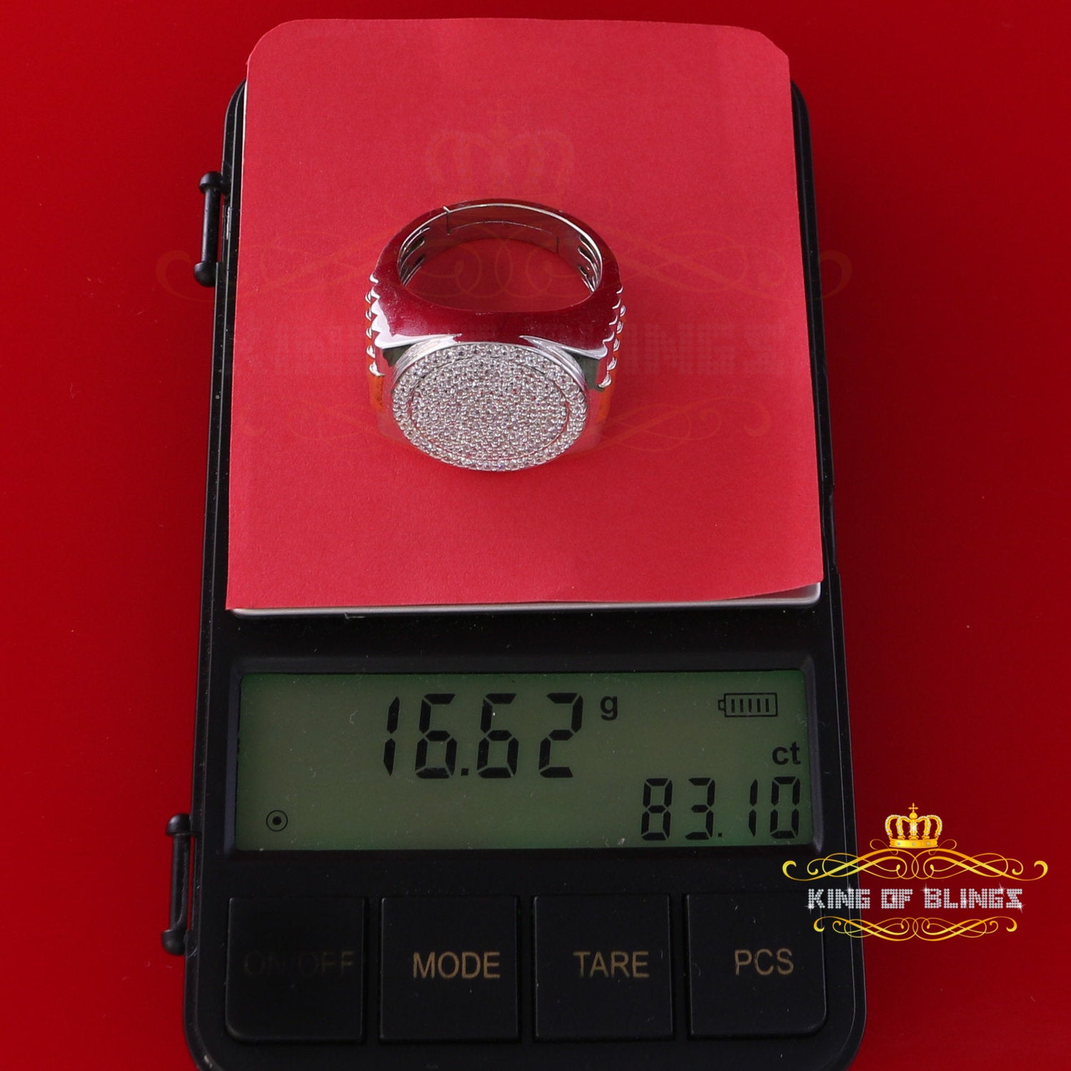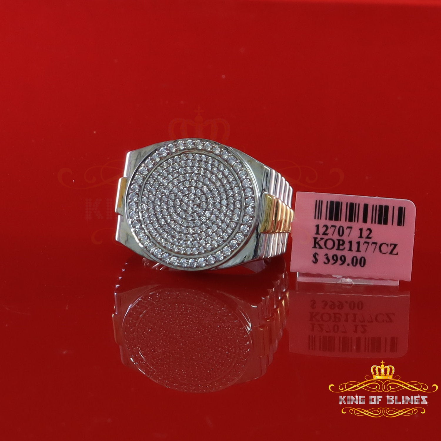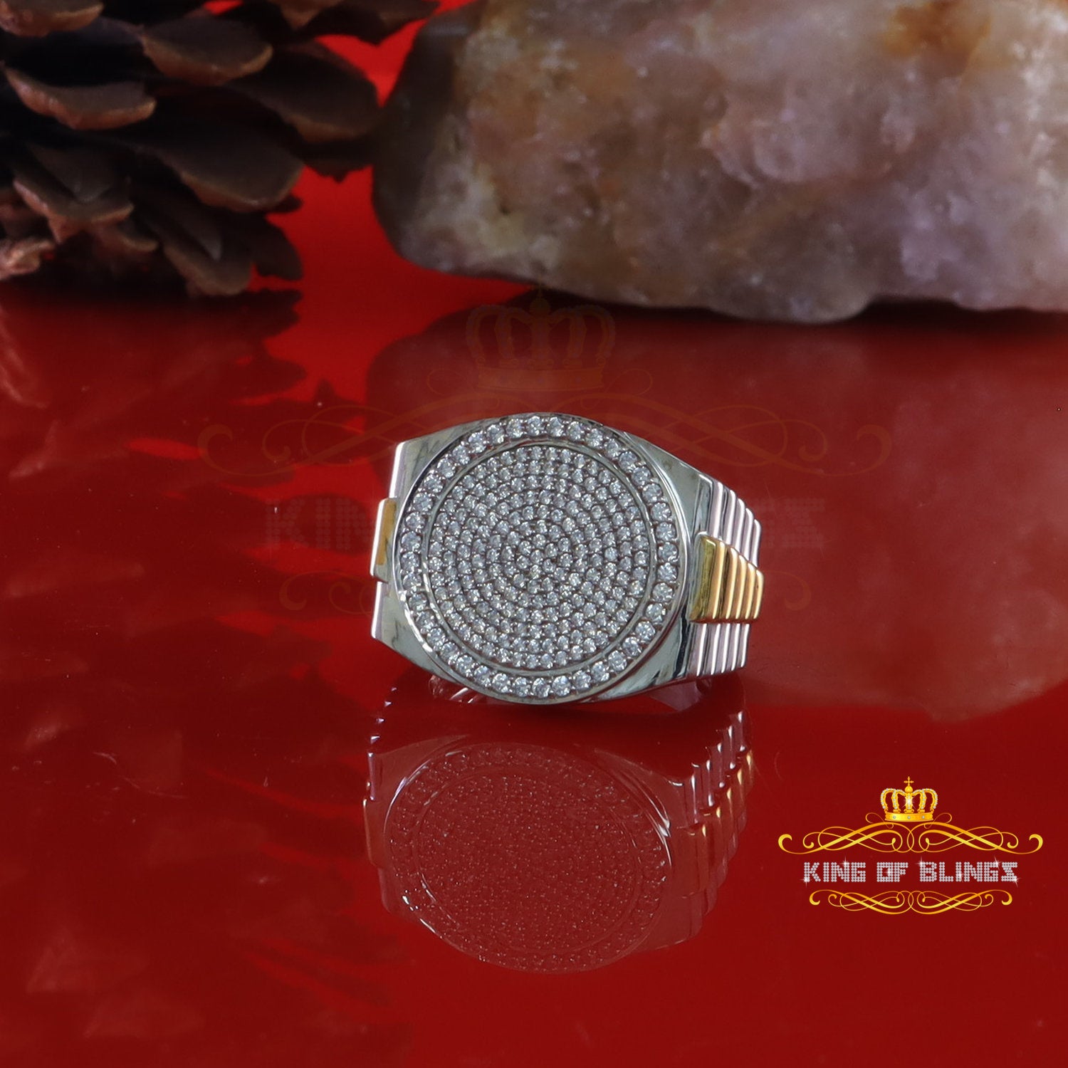 King Of Bling's925 silver Jewelry White 2.50CT CZ Wide Round Mens Adjustable Ring Size 11 to 13