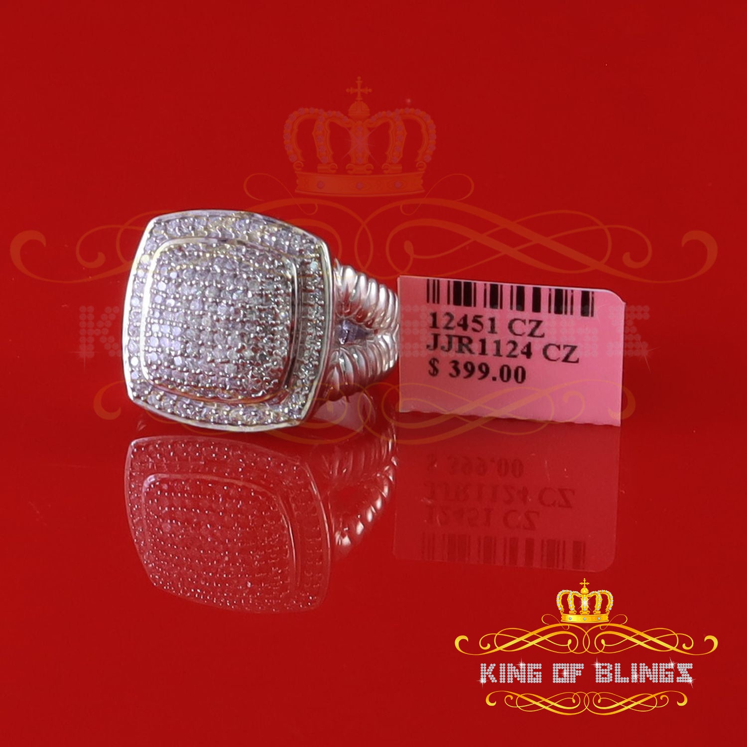 King Of Bling's925 Silver White 2.00ct CZ Wide Square Women's Adjustable Ring Size 8 to 10