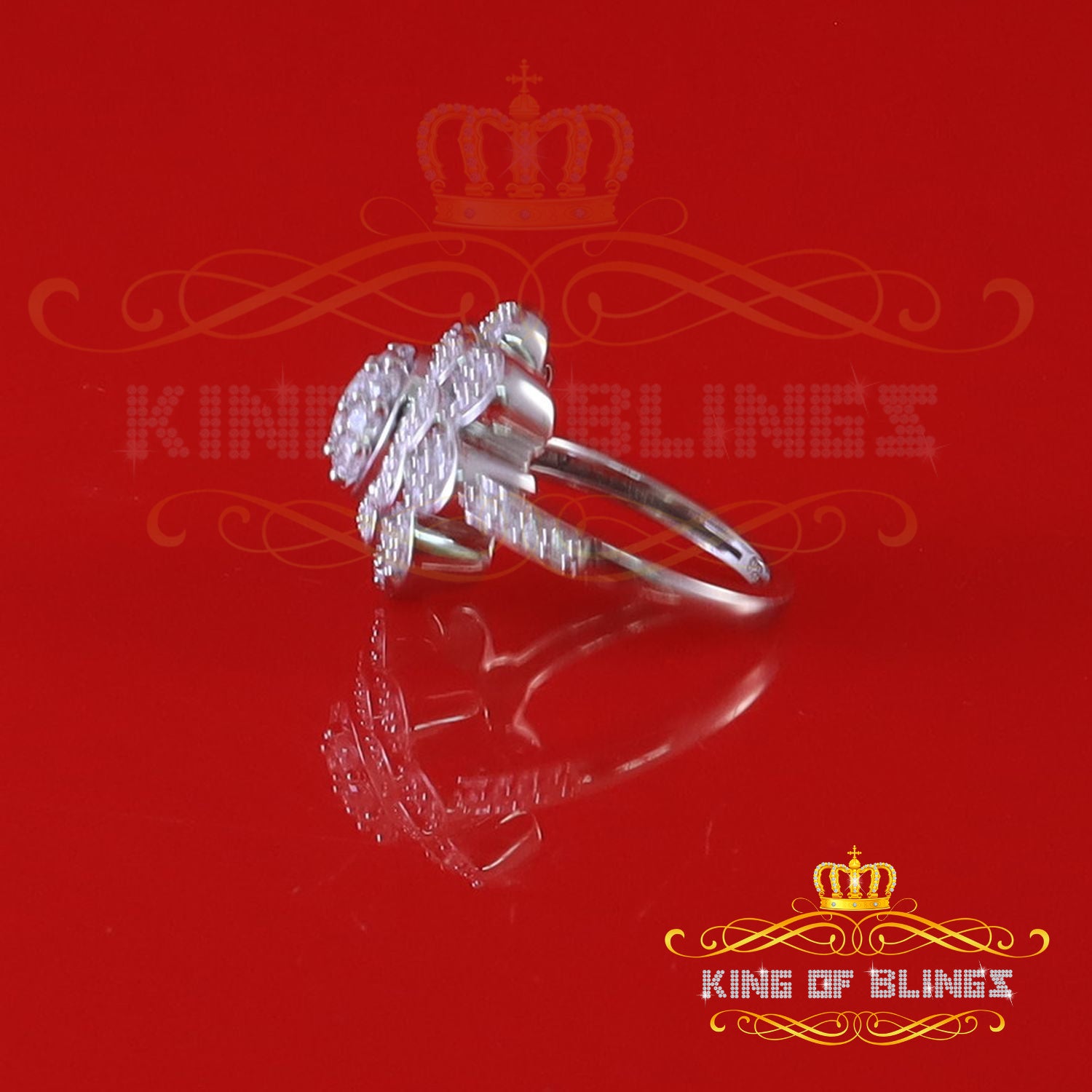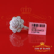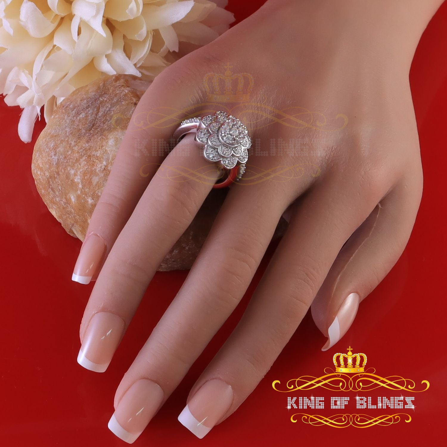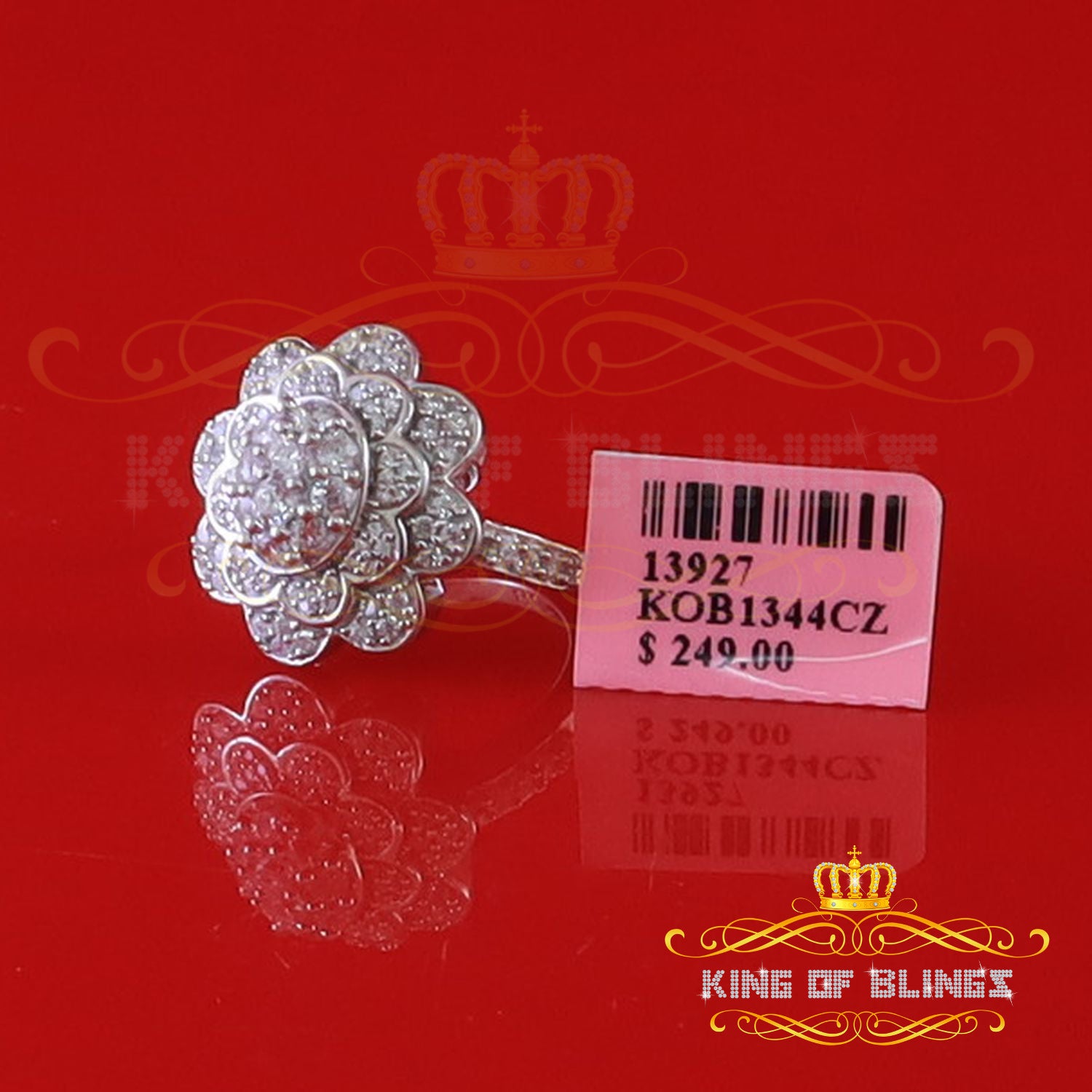 King Of Bling's925 Sterling Silver White 2.10ct Cubic ZirconiaWide Flower Womens Ring Size7.5