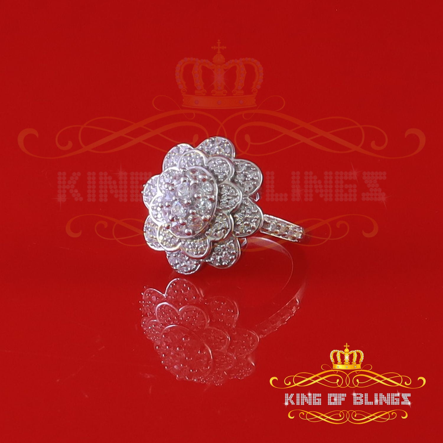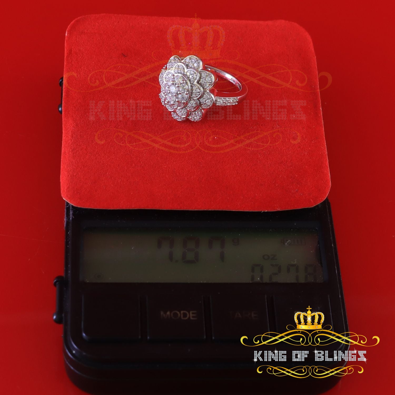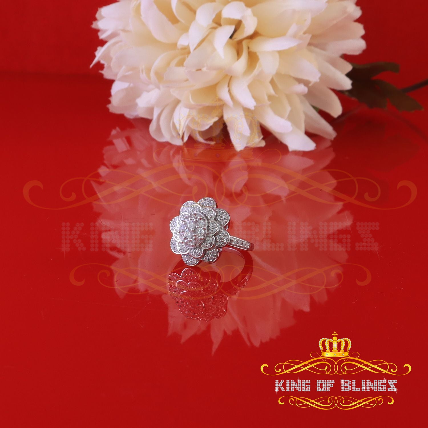 King Of Bling's925 Sterling Silver White 2.10ct Cubic ZirconiaWide Flower Womens Ring Size7.5