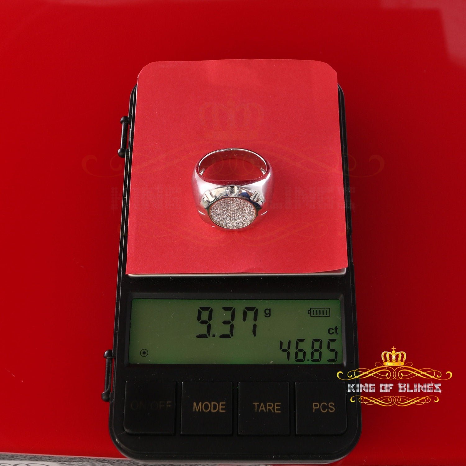King Of Bling's925 Sterling White Silver 1.10ct Cubic Zirconia Round Fashion Men's Ring Size 9