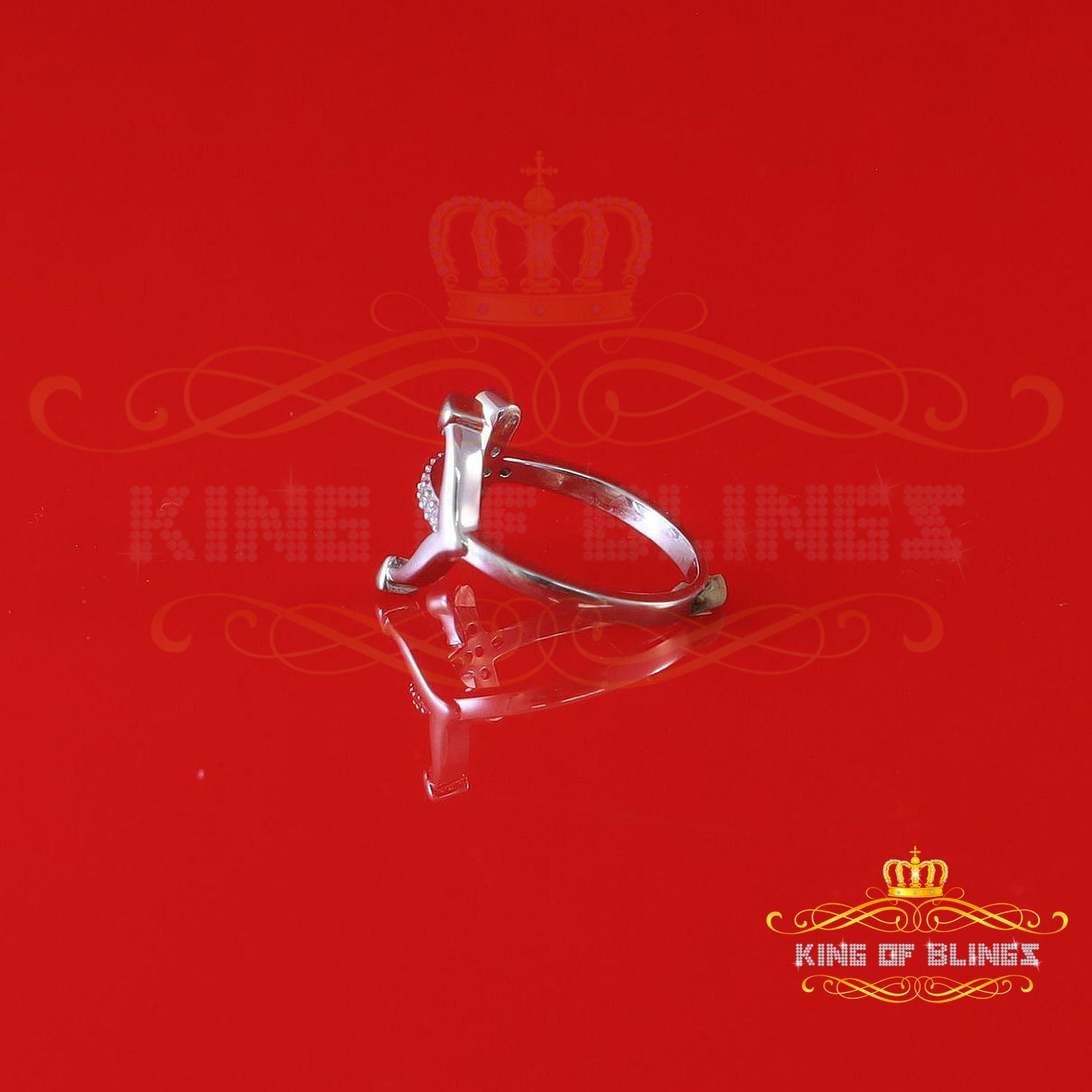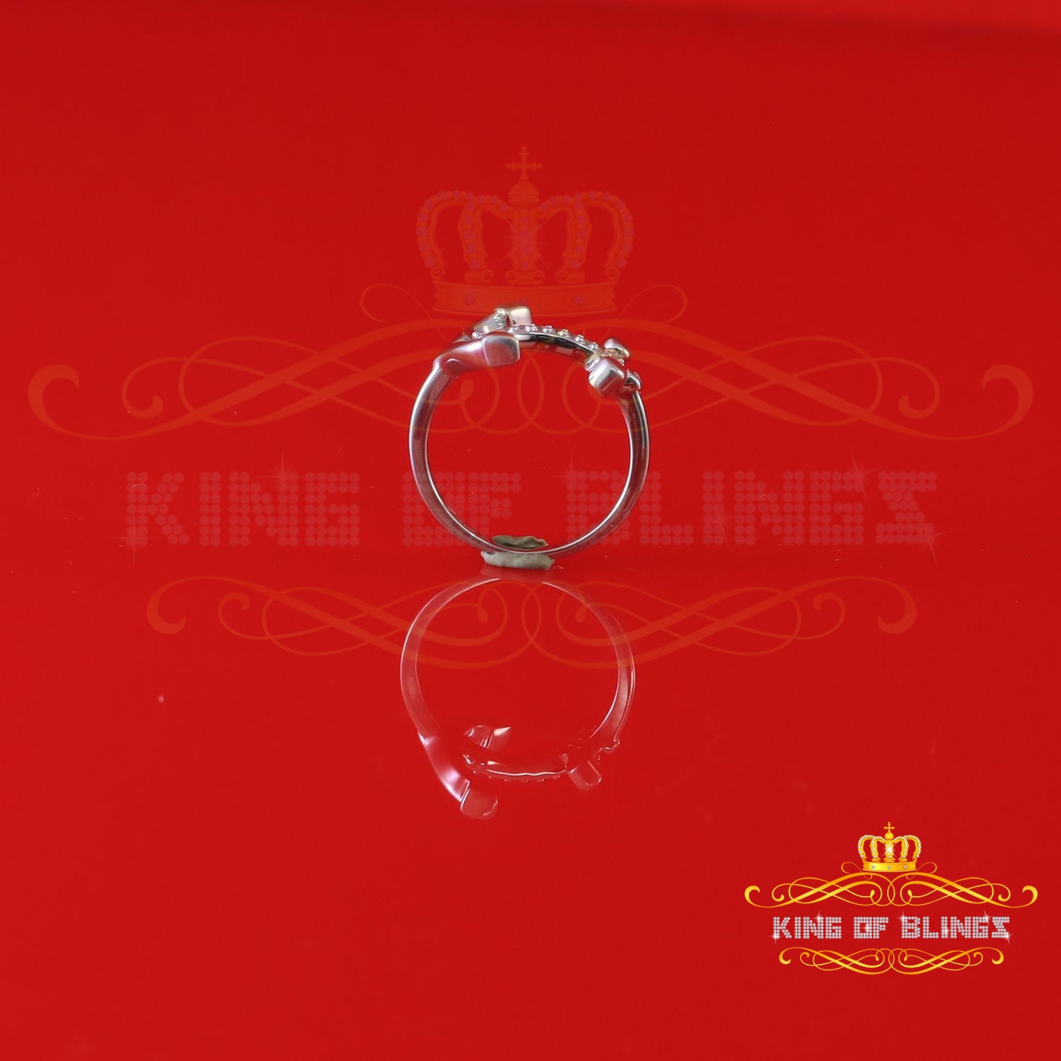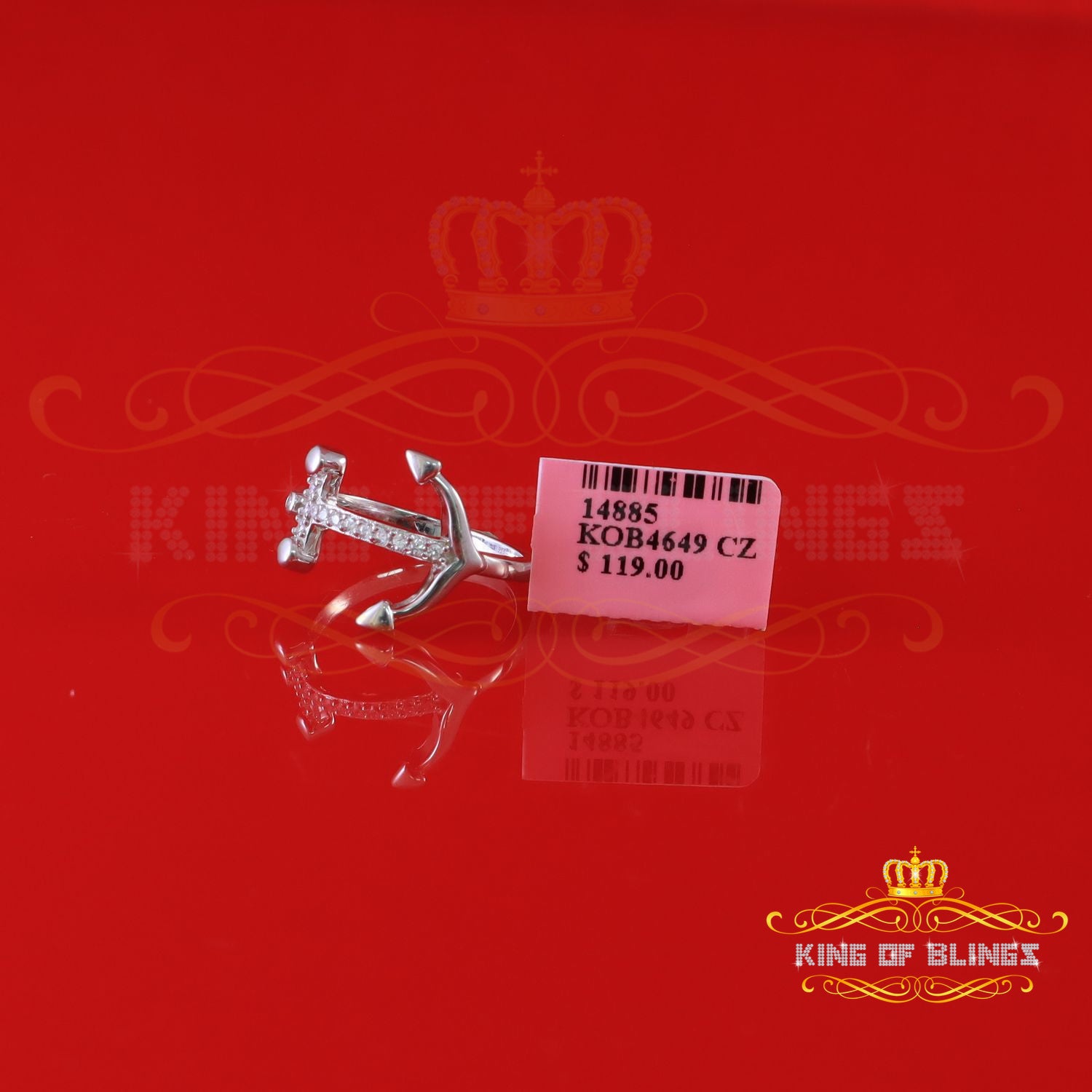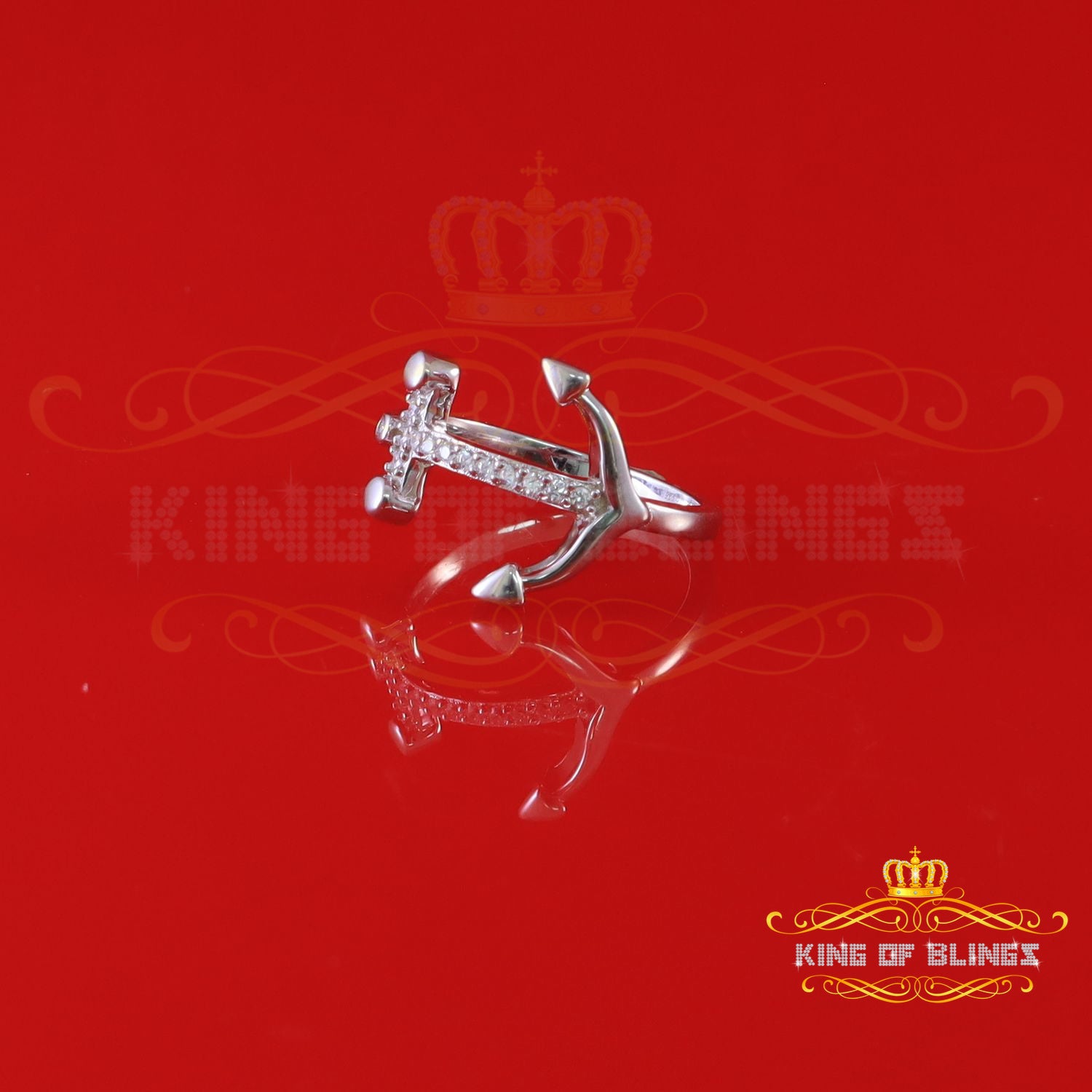 King Of Bling's925 Sterling White Silver Anchor-Shaped 0.15ct Cubic Zirconia Womens Ring Size 7