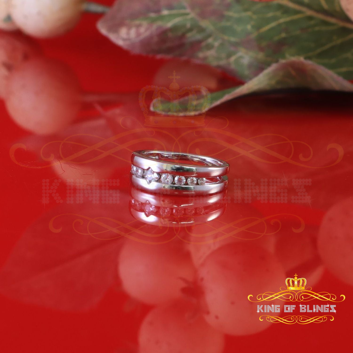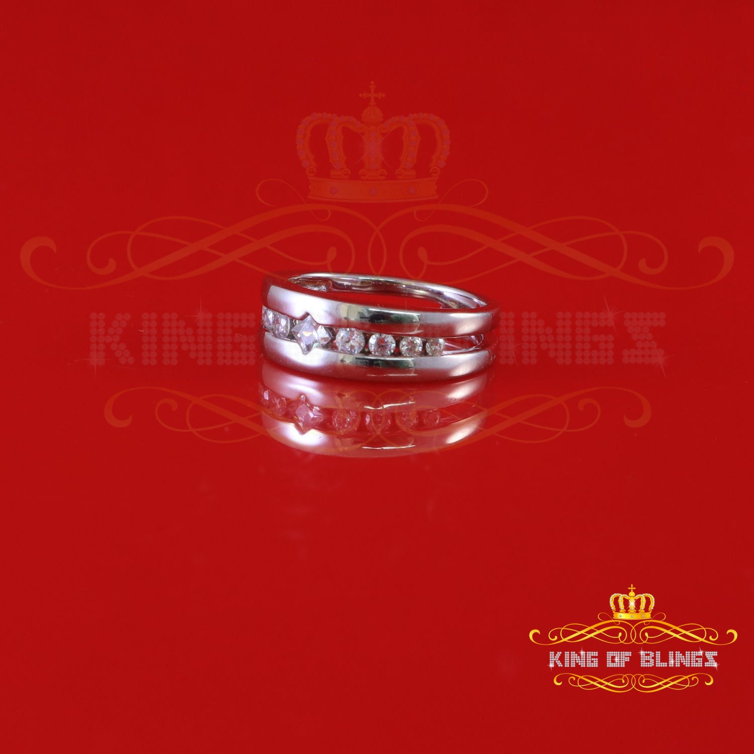 King Of Bling's925 Sterling White Silver Round-Shaped 0.66ct Cubic Zirconia Womens Ring Size 7